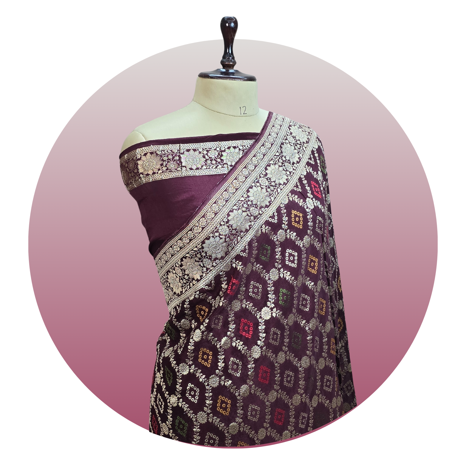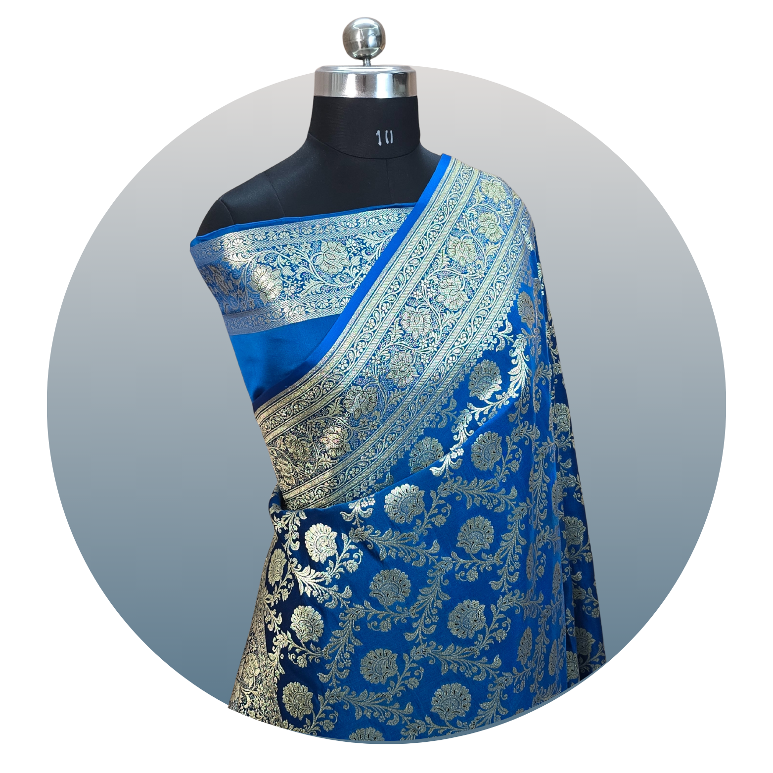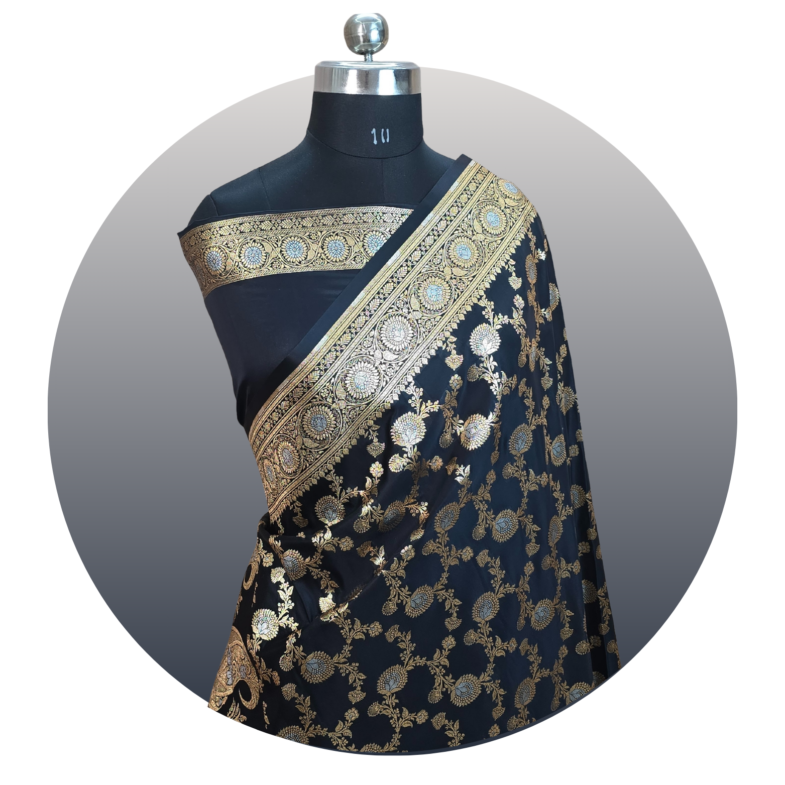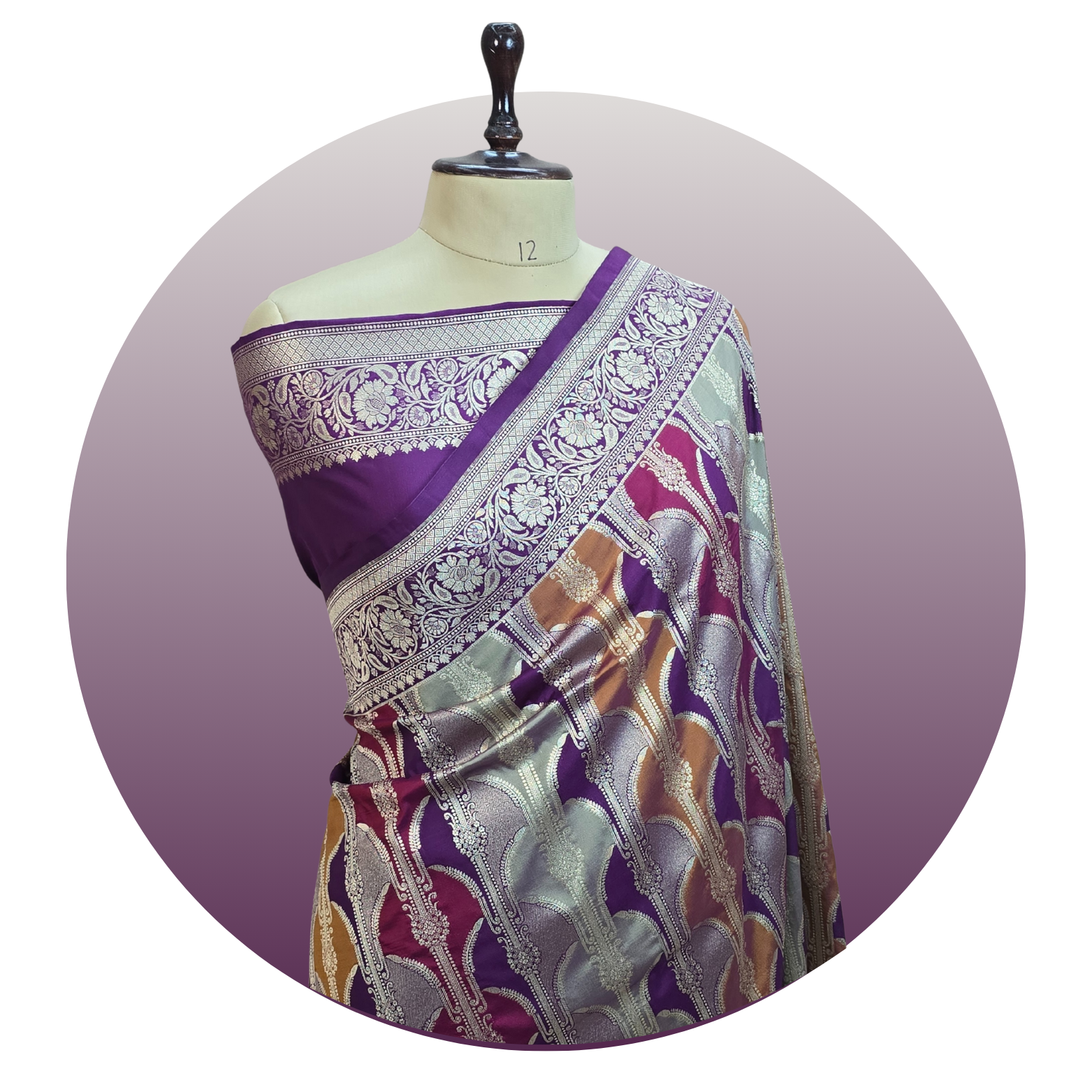 Satin Mashru Silk Tilfi Banarasi Saree with Meenakari Floral Stripe Jaal