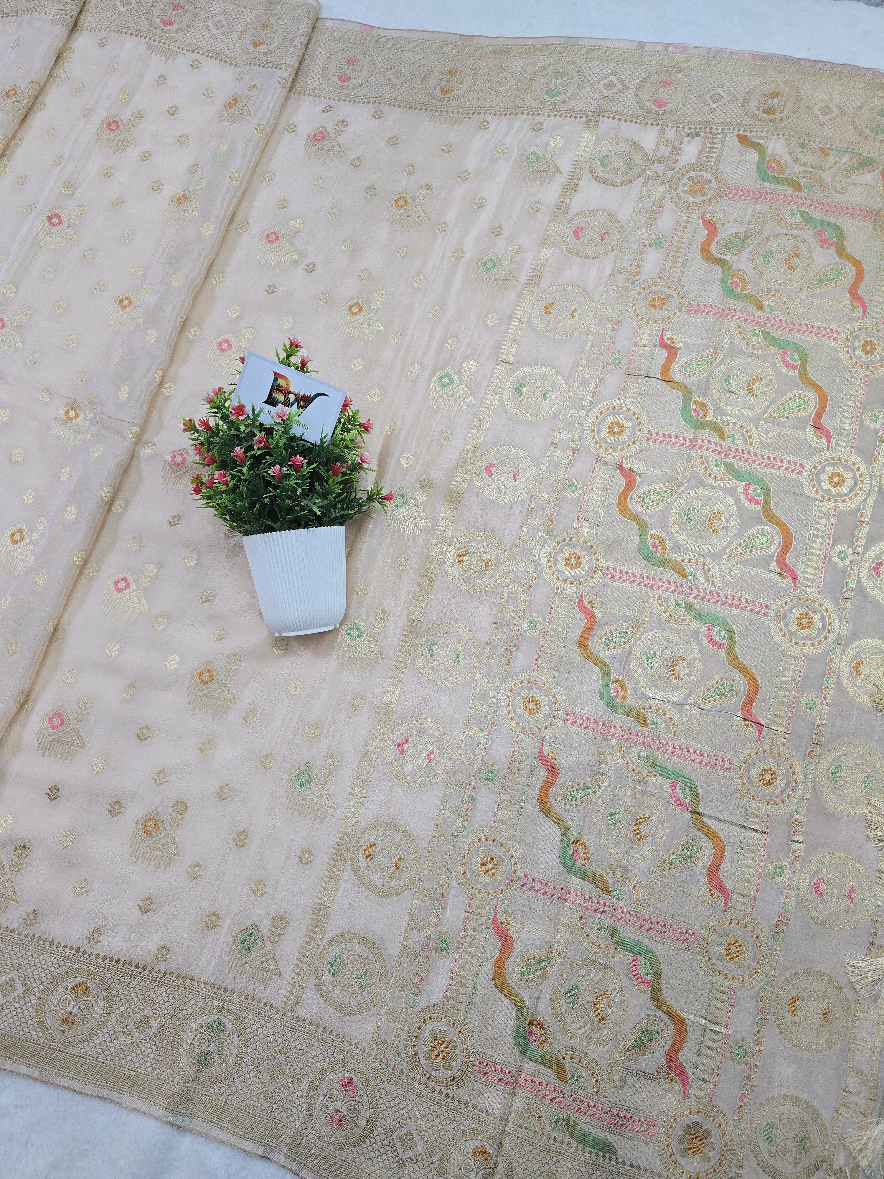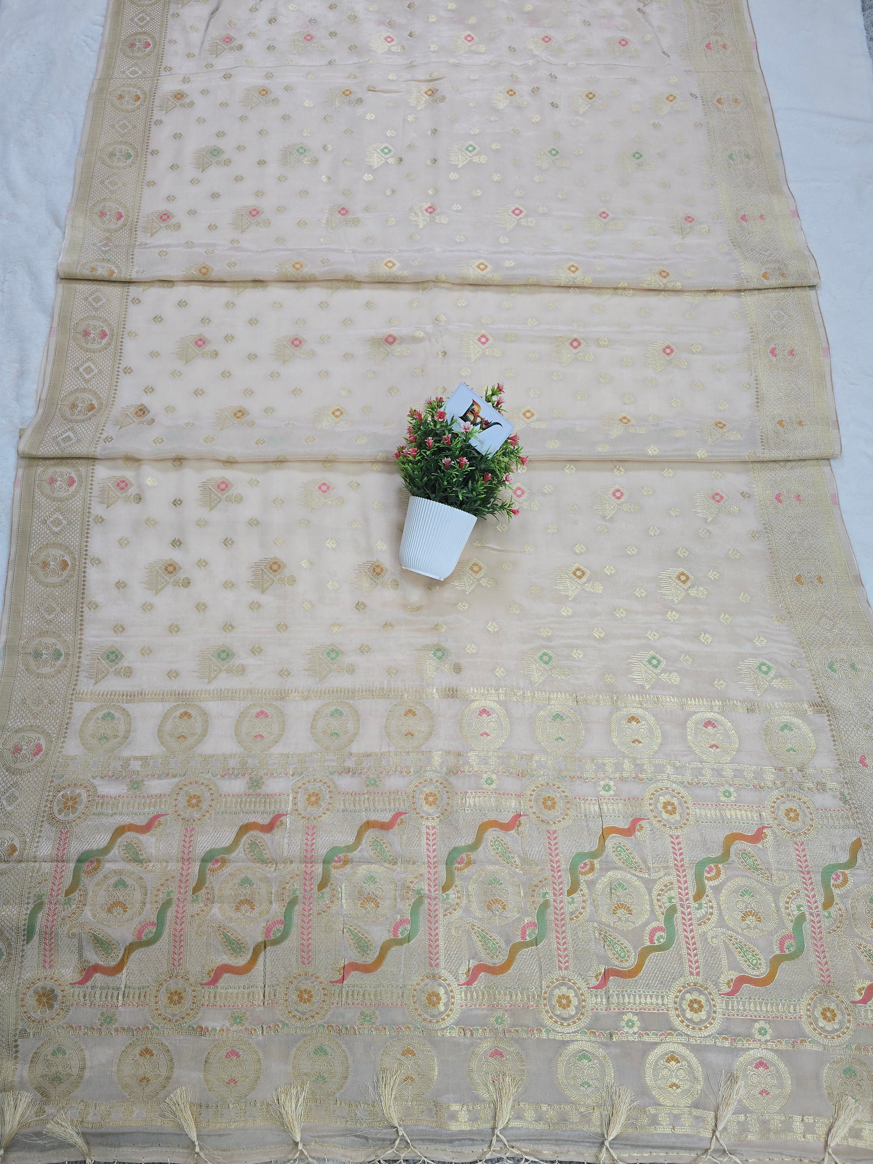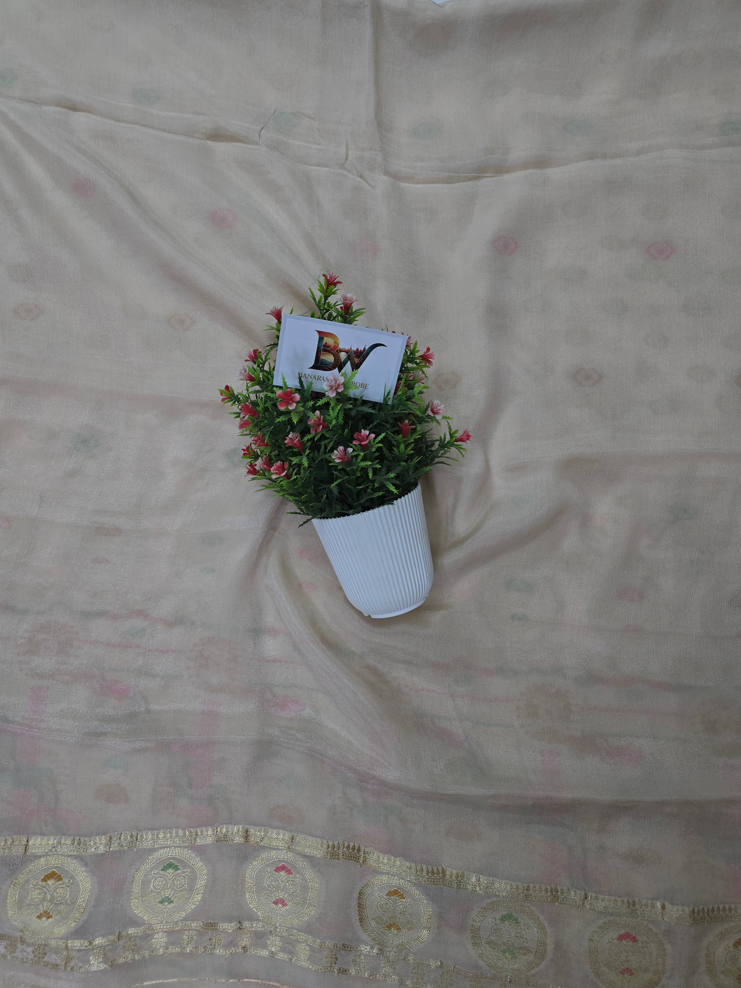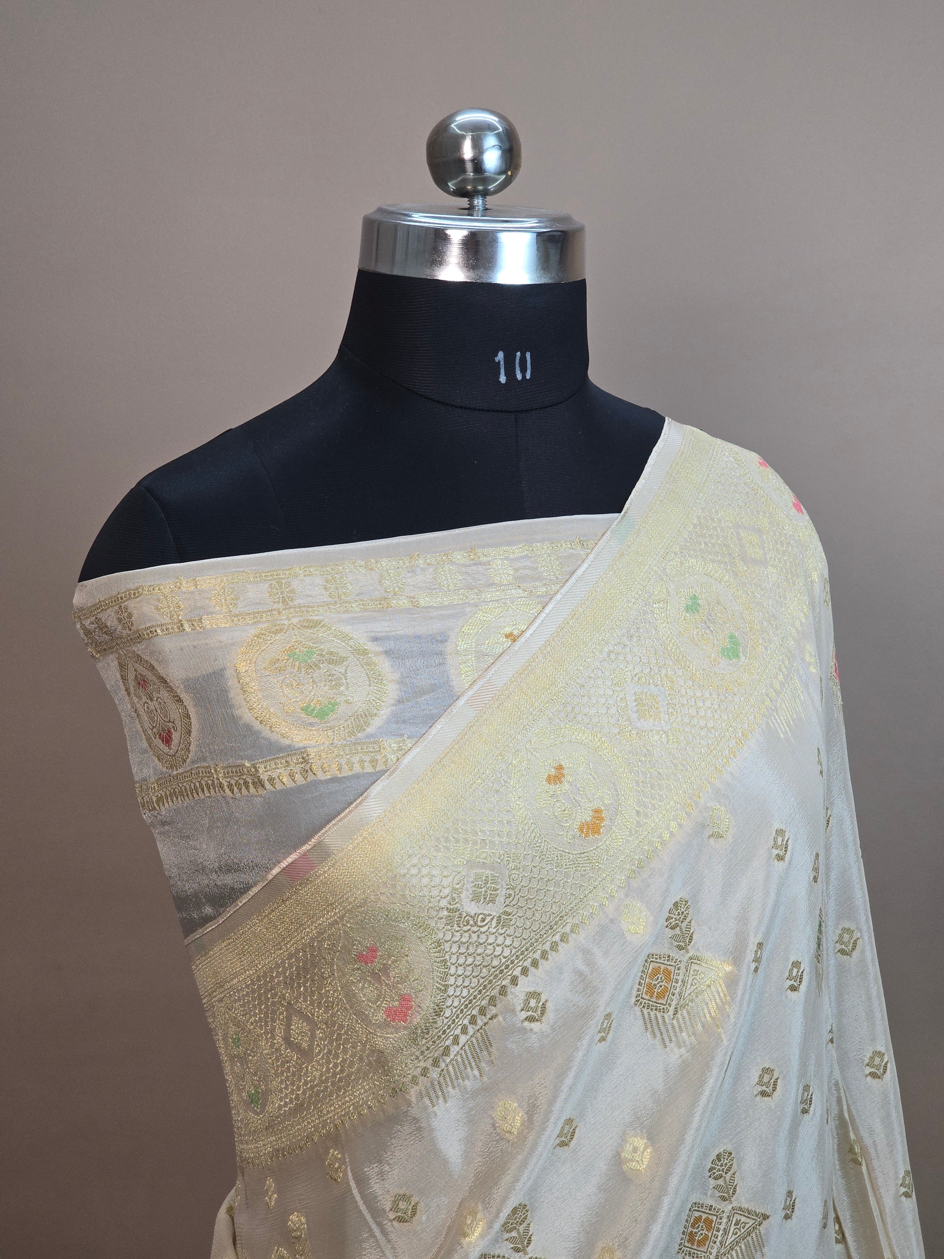 Crush Crepe Banarasi Saree – Off White with Meenakari Bootas