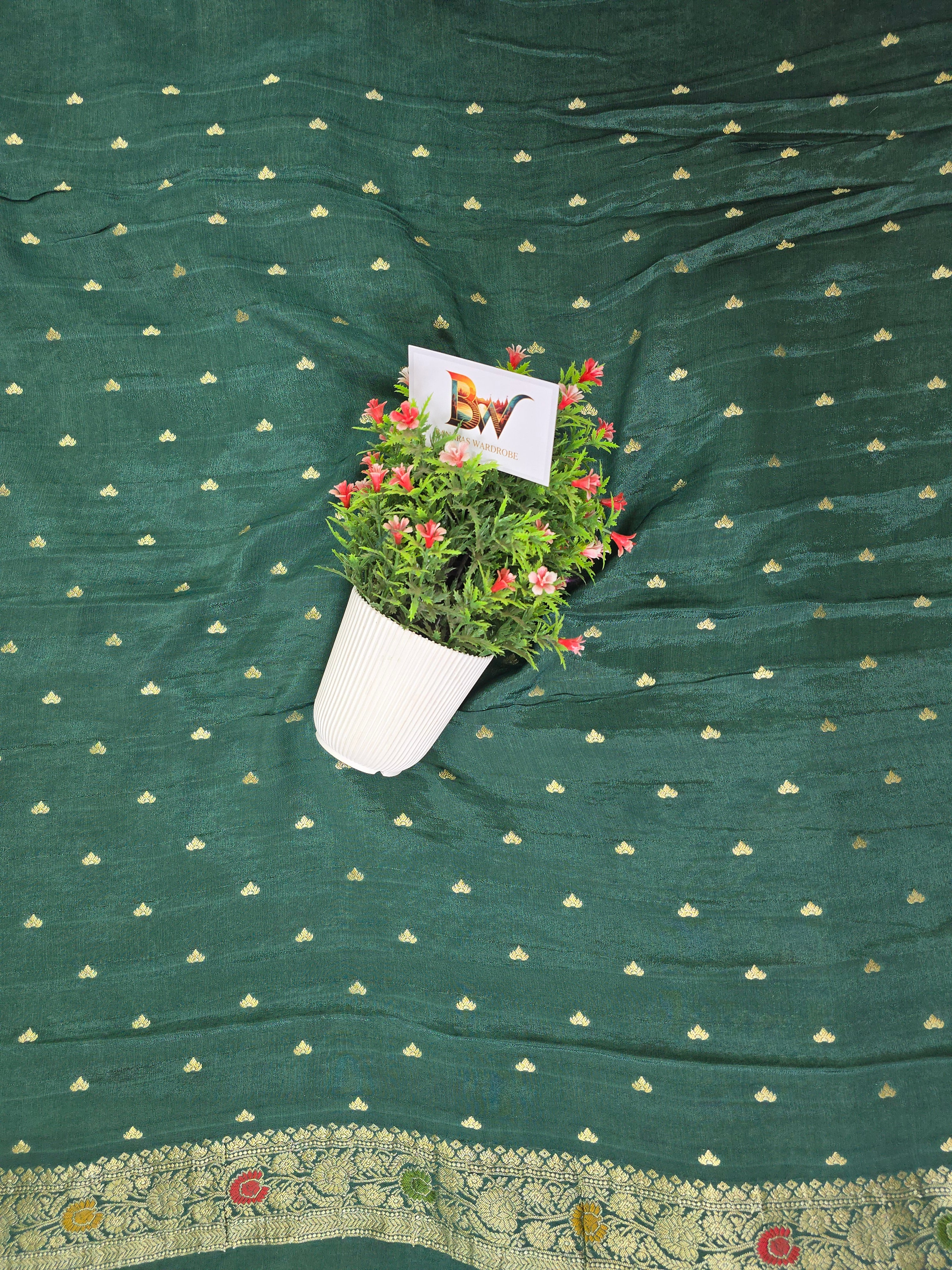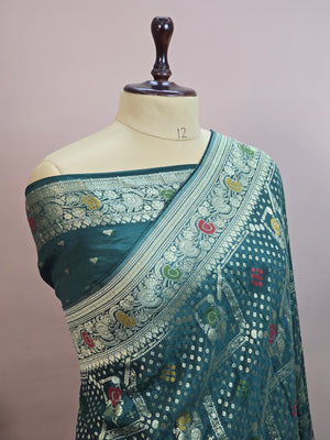 Crush Crepe Alfi Bandhej Saree – Sea Green with Meenakari Flower Bootas