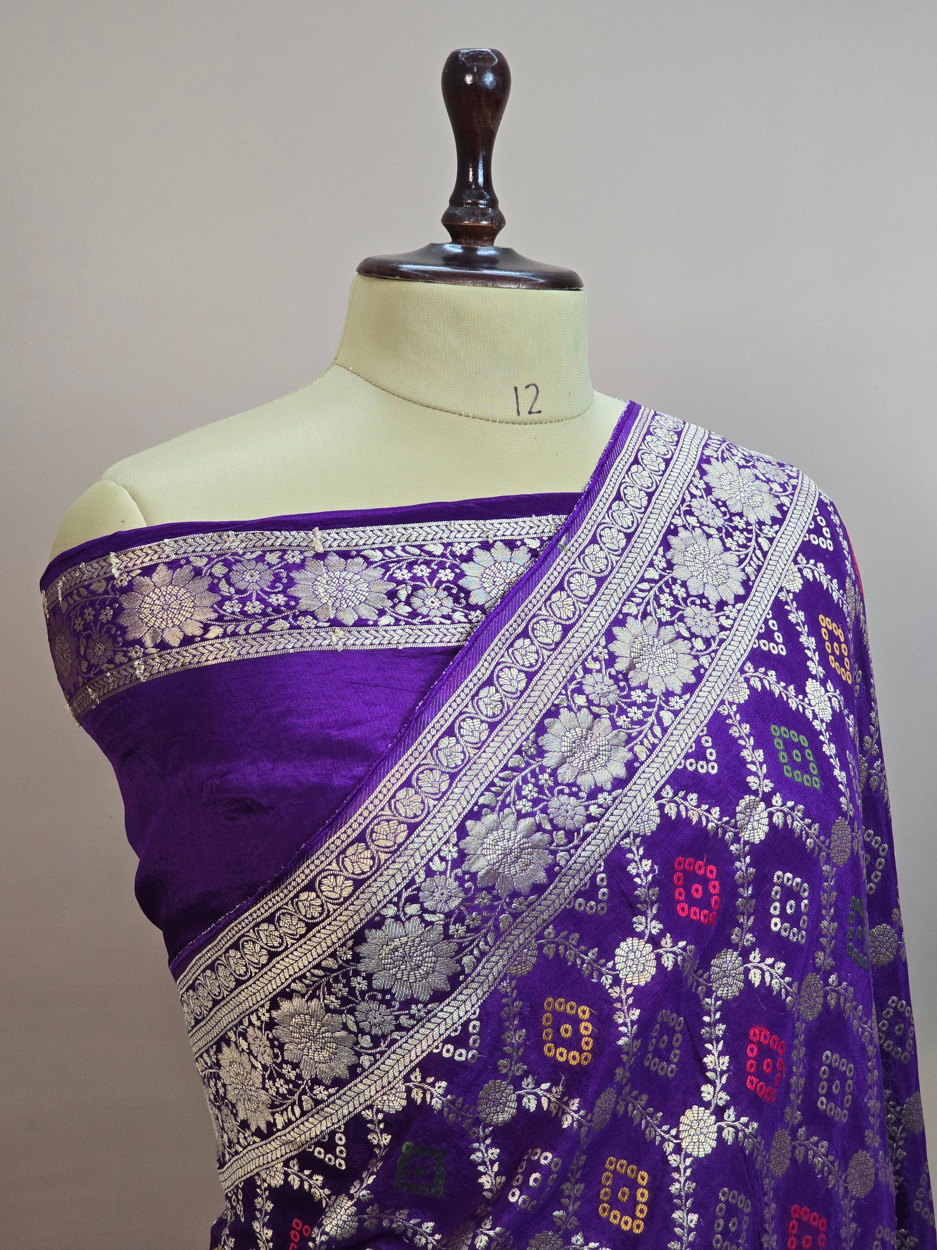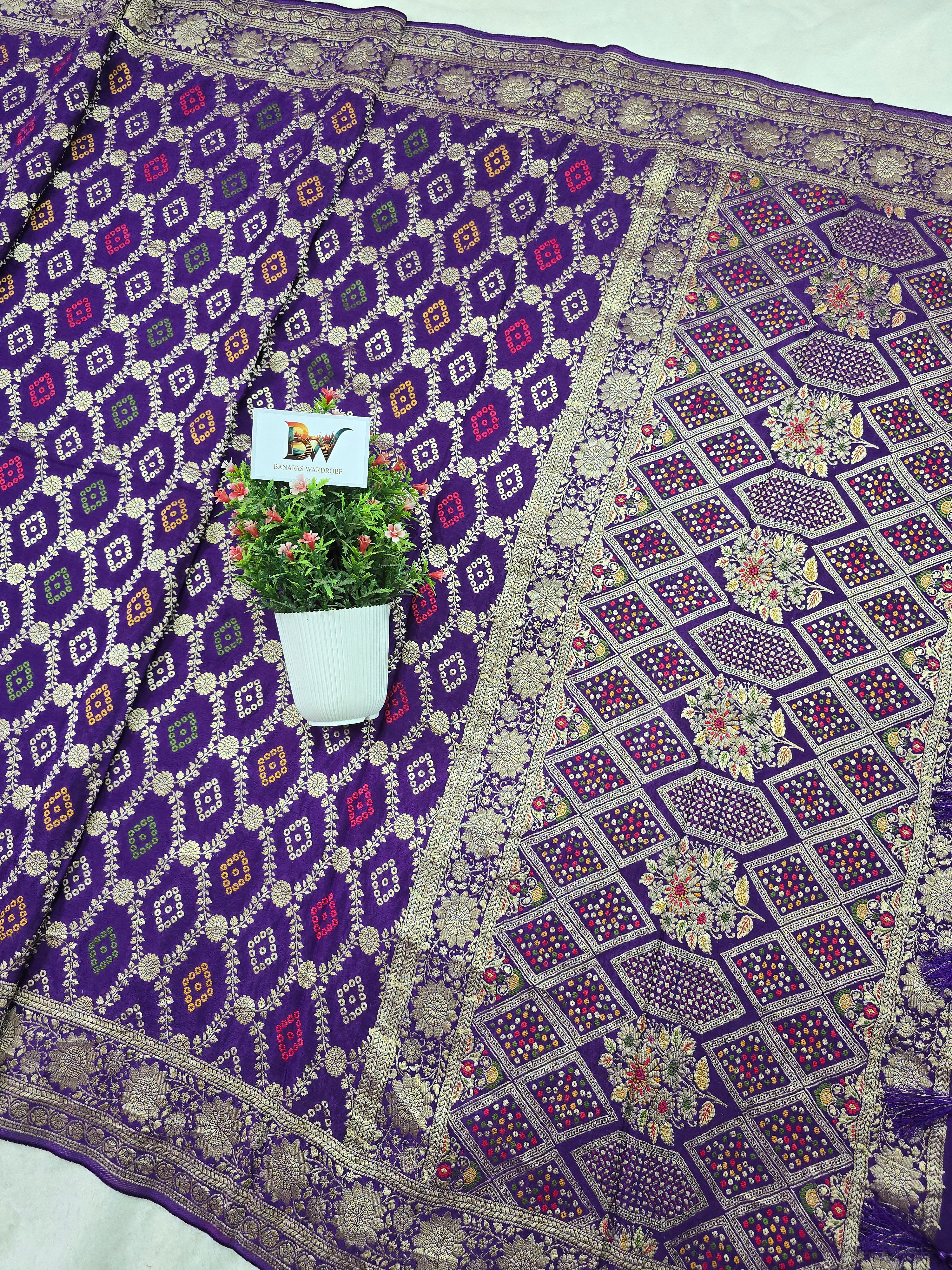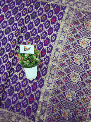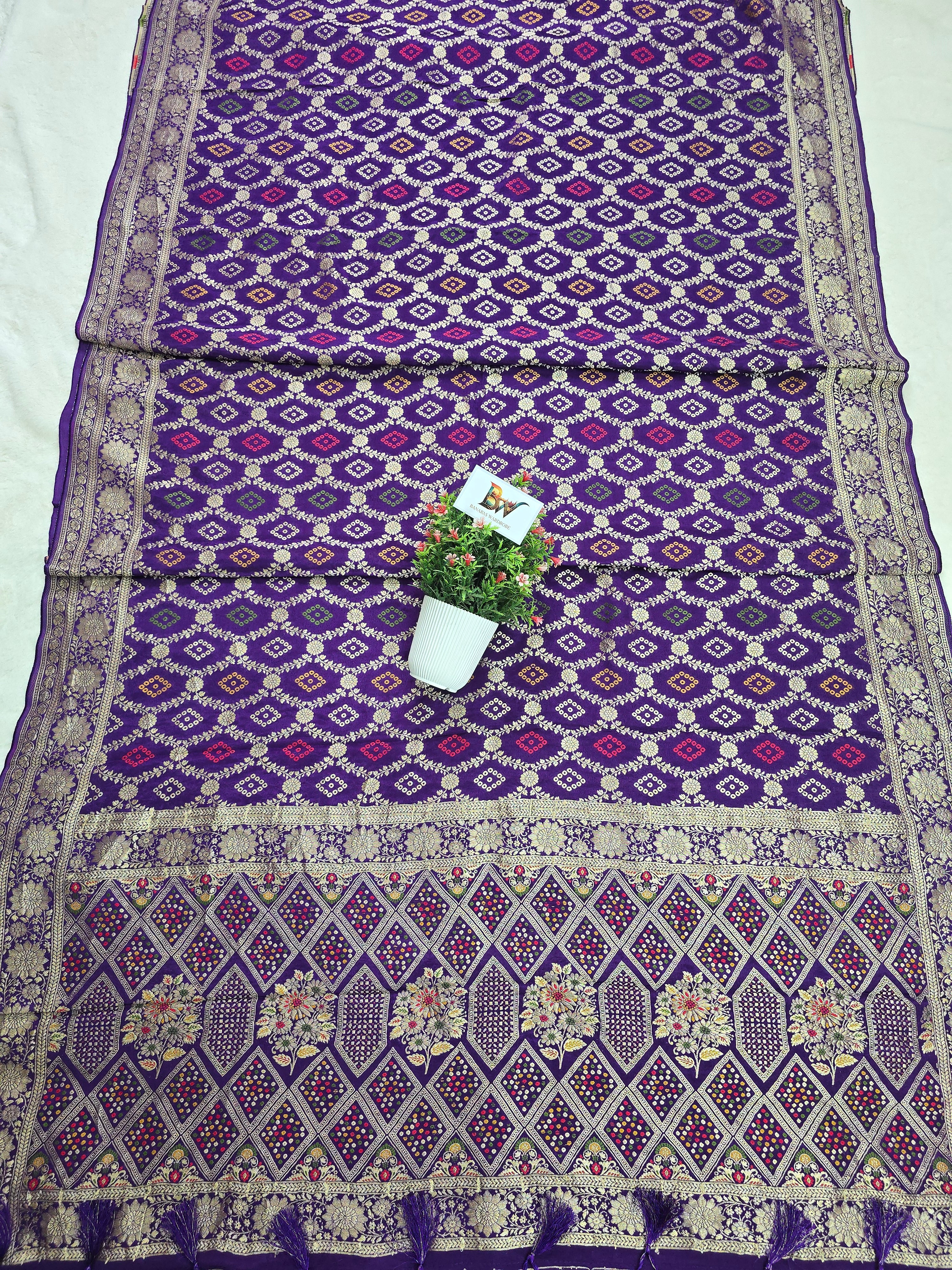 Crush Crepe Alfi Bandhej Saree – Royal Purple with Multicolour Meenakari Boota