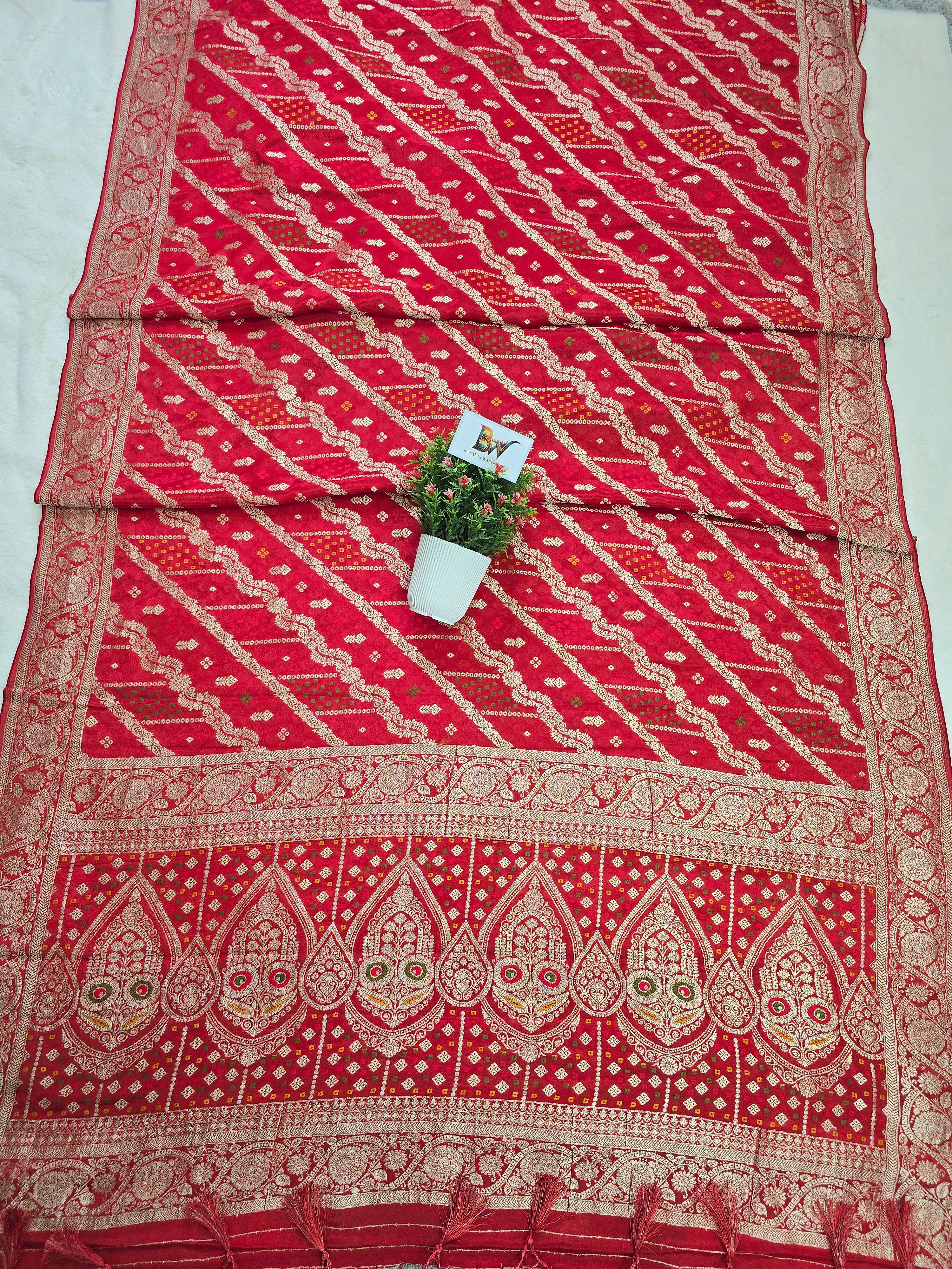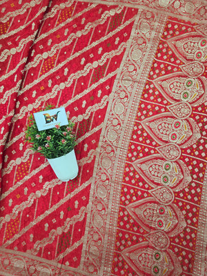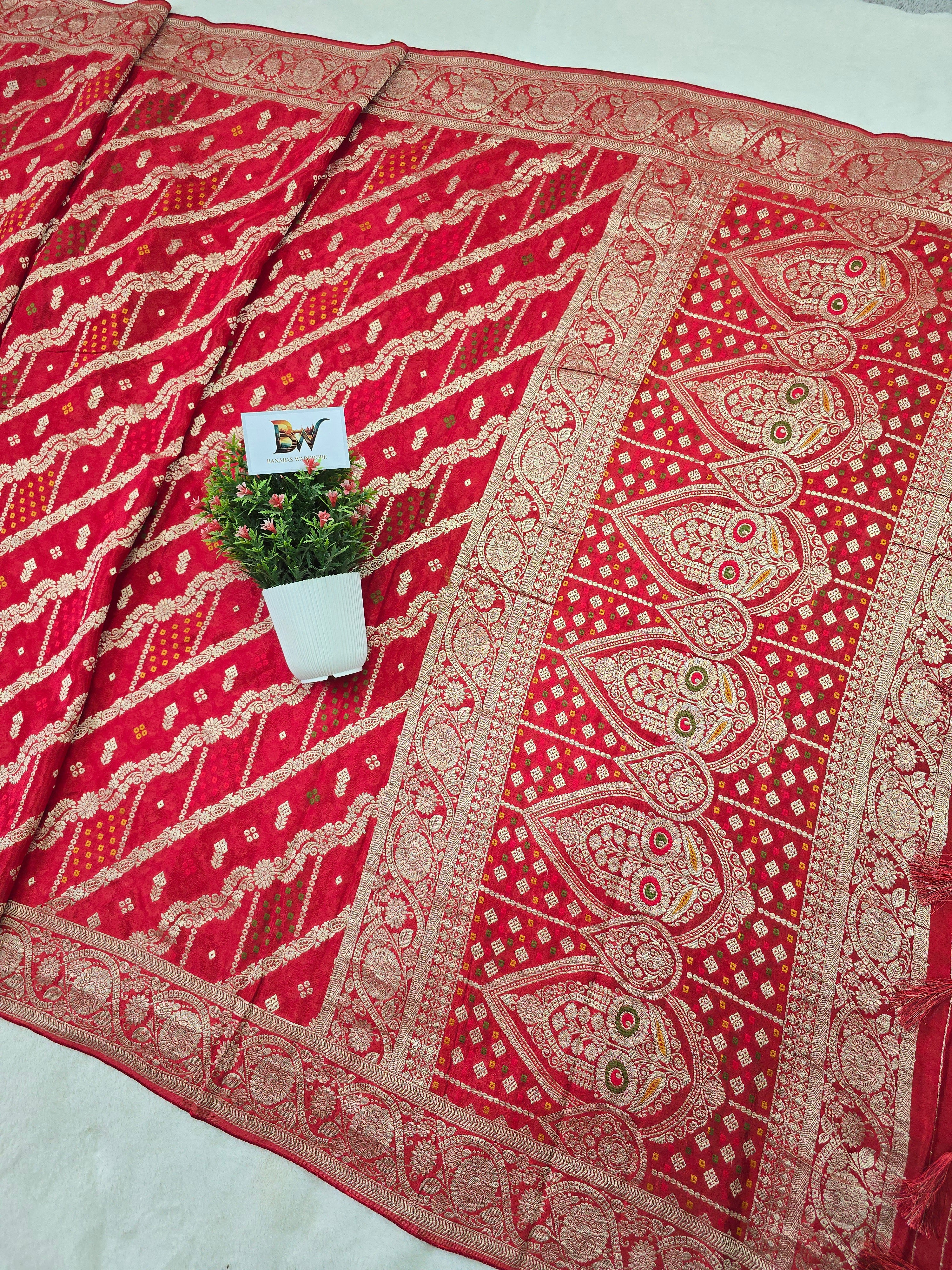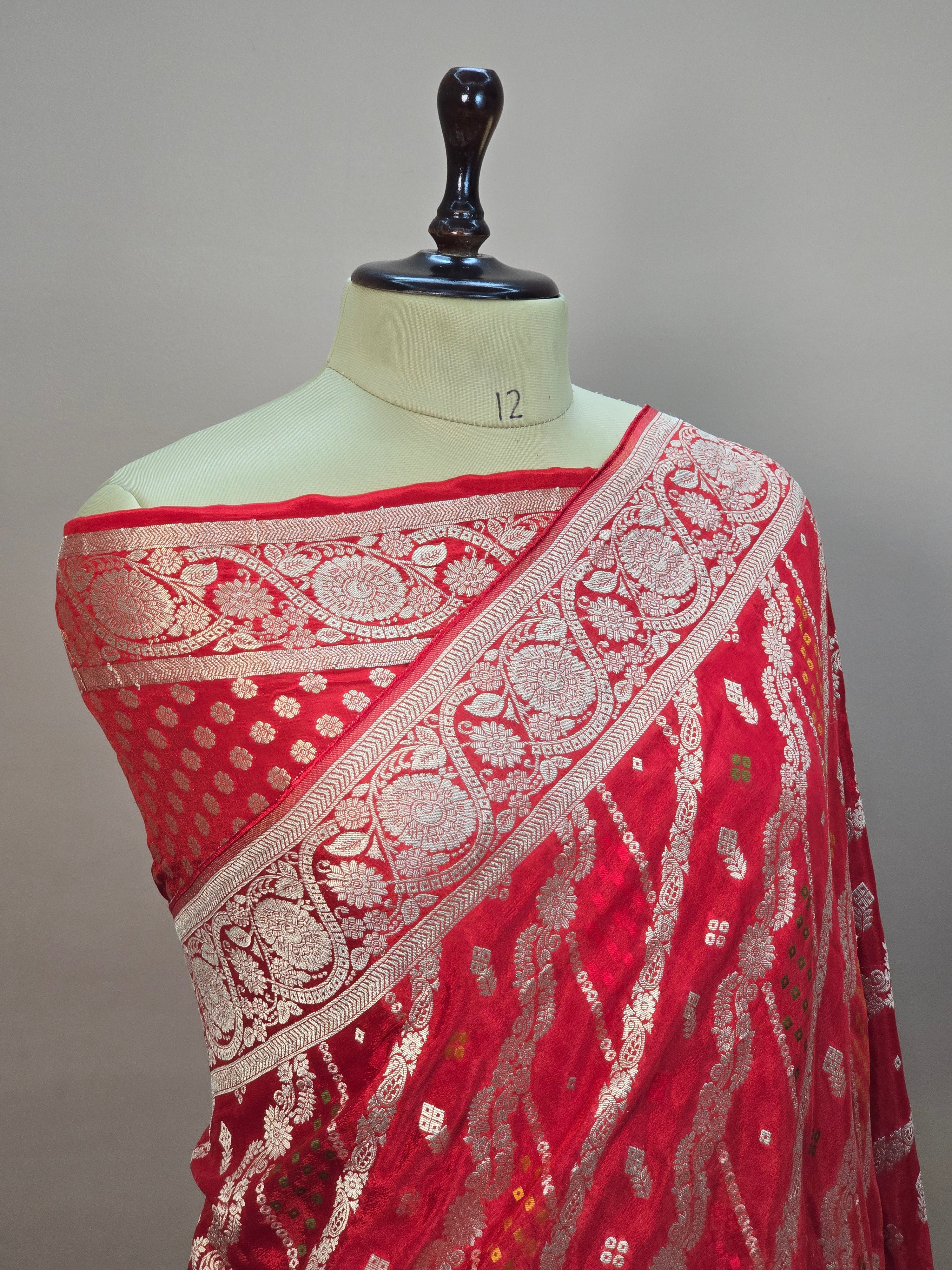 Crush Crepe Banarasi Bandhej Saree – Red with Alfi Meenakari Jaal