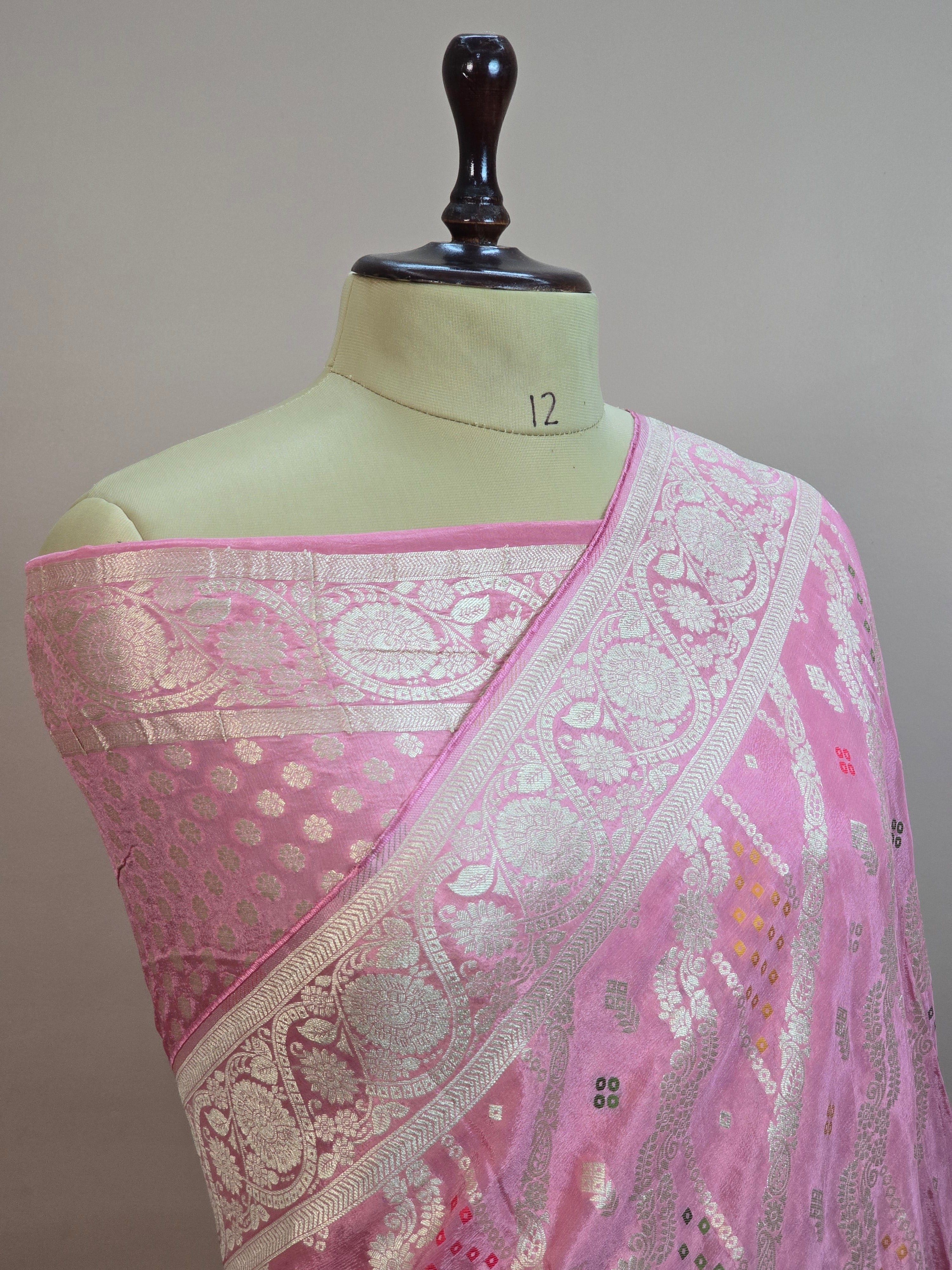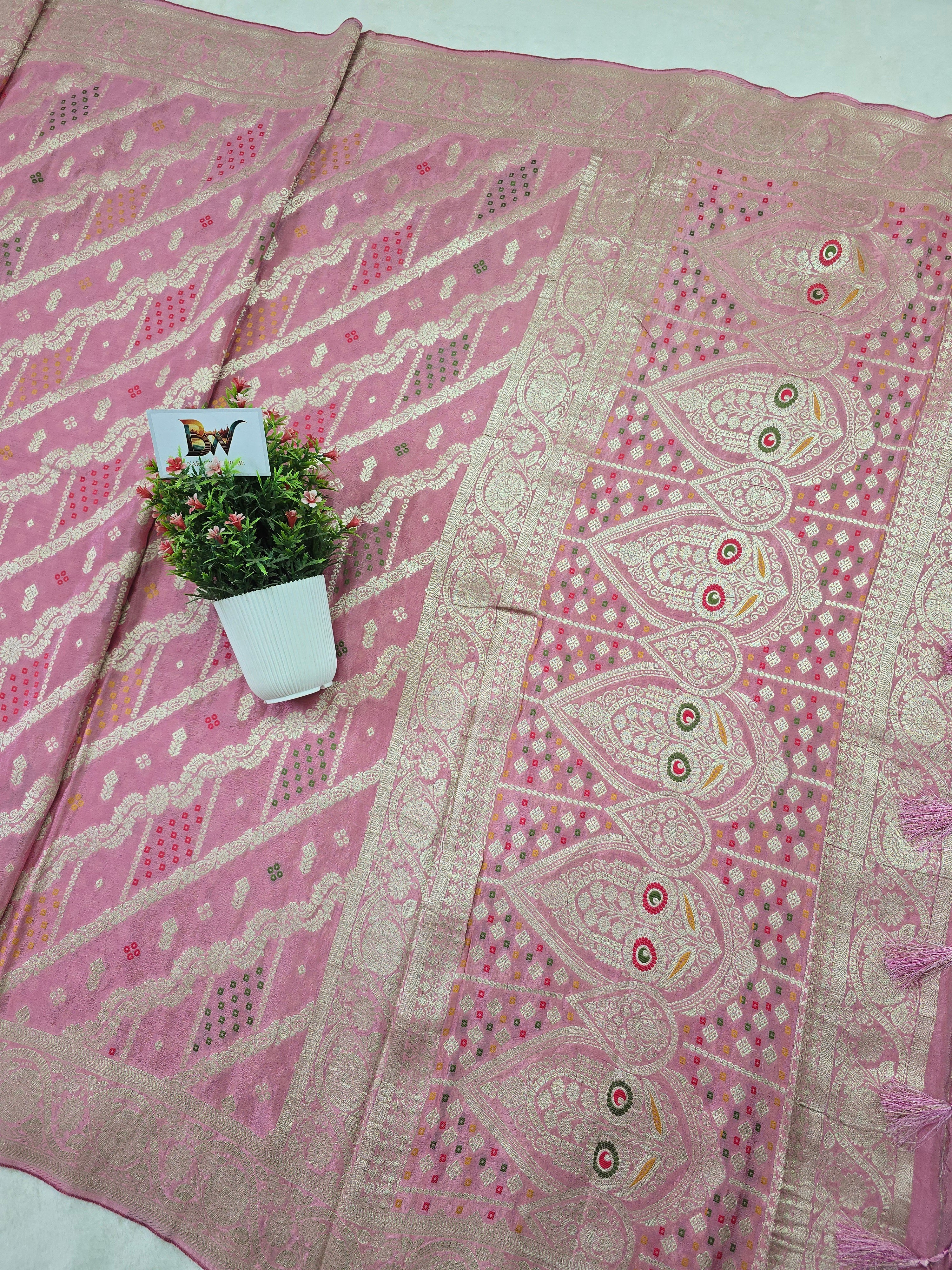 Design: Meenakari Jaal Bandhej Design with Floral Jaal Zari Border