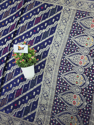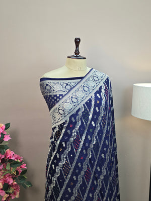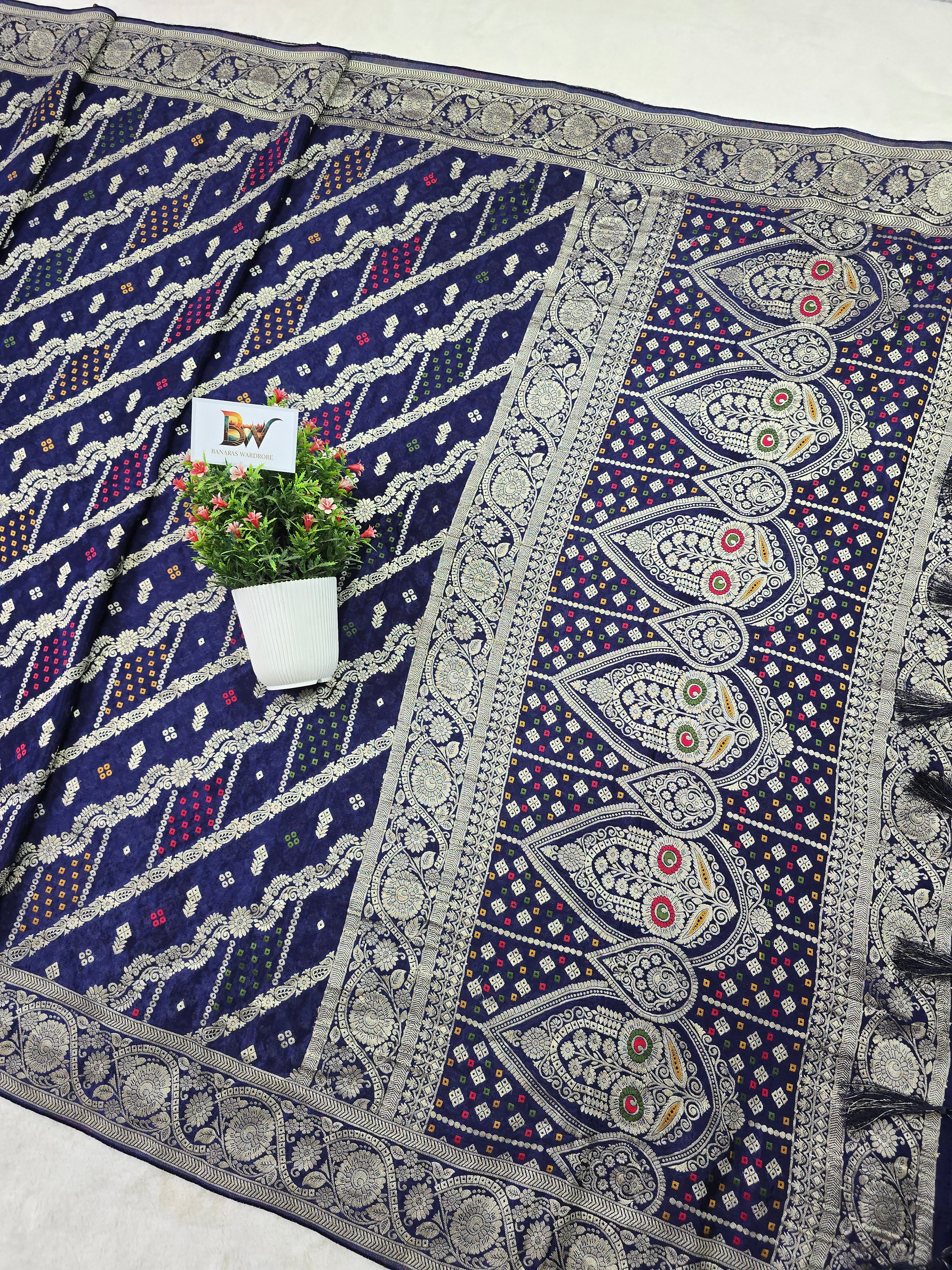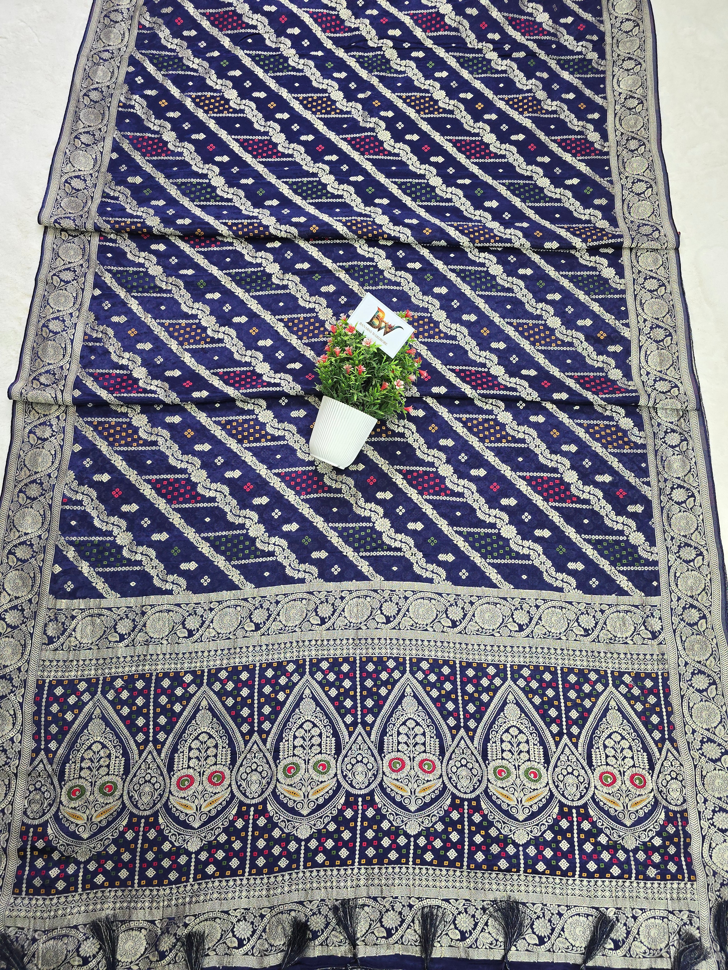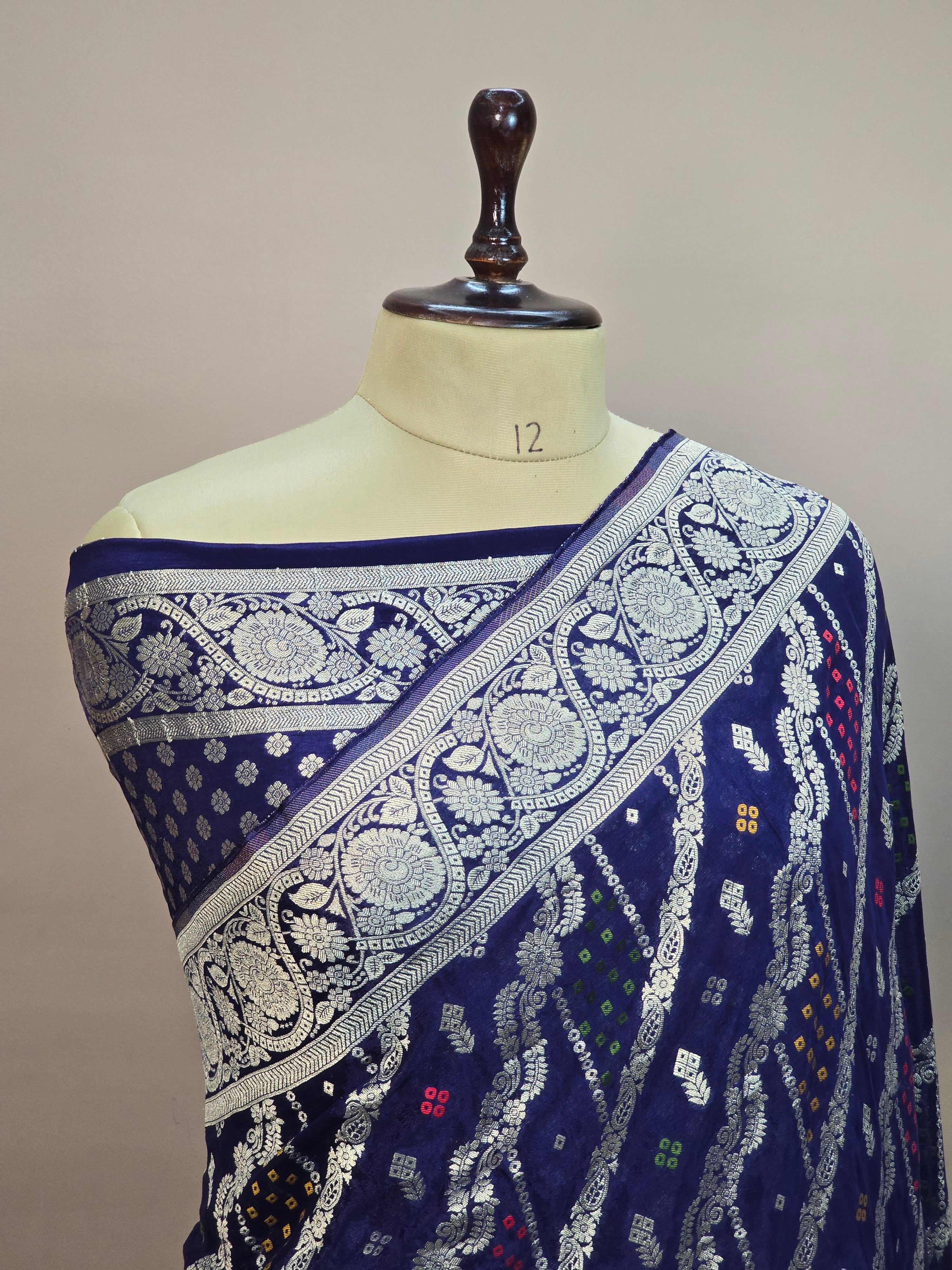 Crush Crepe Banarasi Bandhej Saree – Navy Blue with Alfi Meenakari Jaal