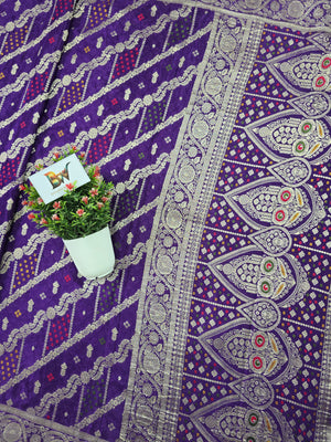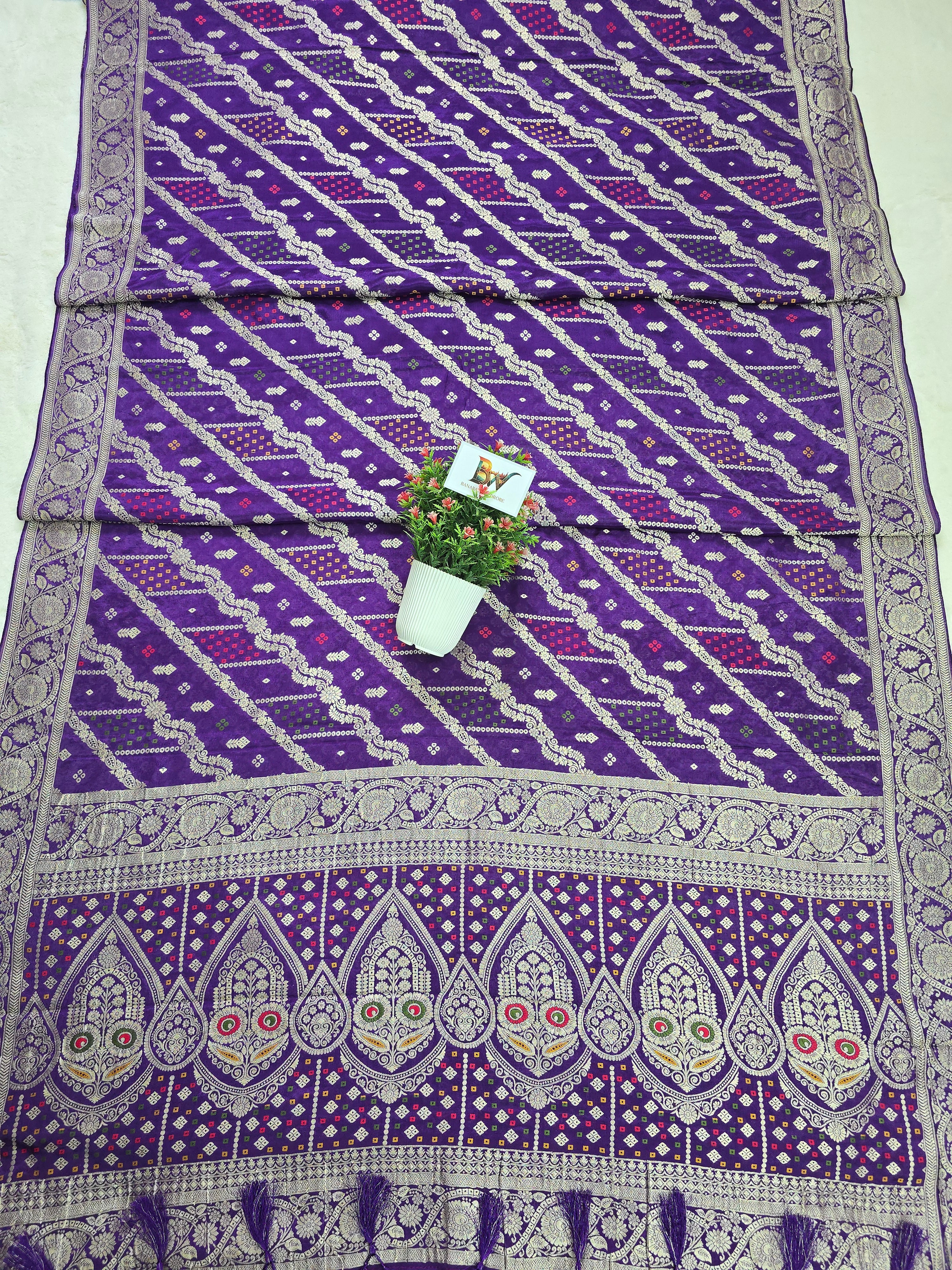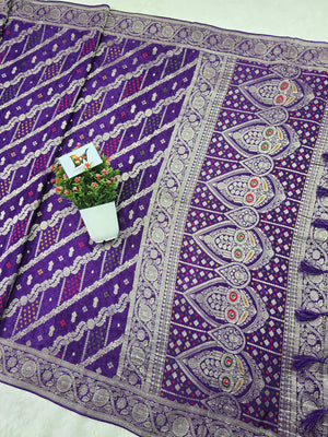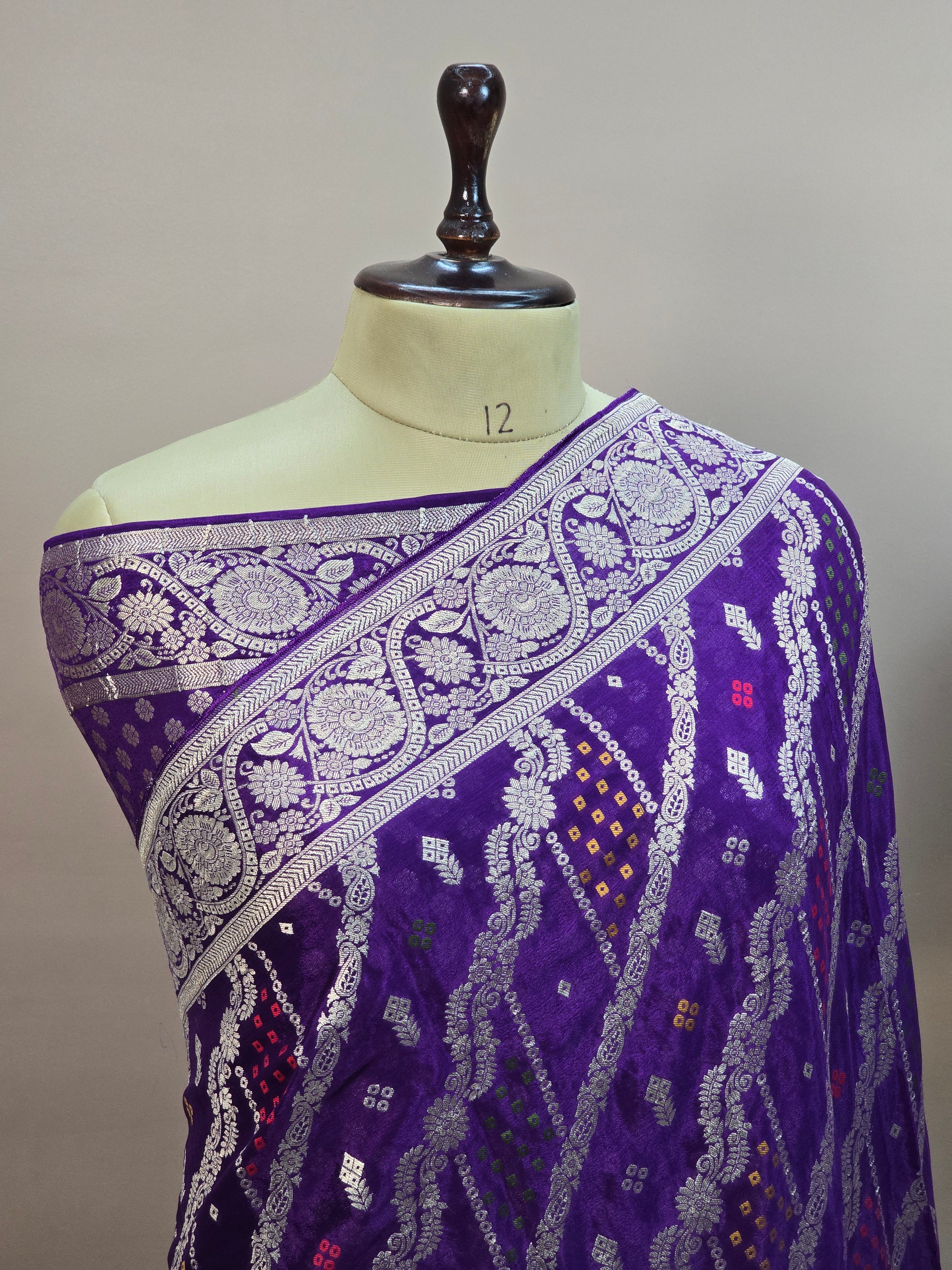 Crush Crepe Banarasi Bandhej Saree – Royal Purple with Alfi Meenakari Jaal