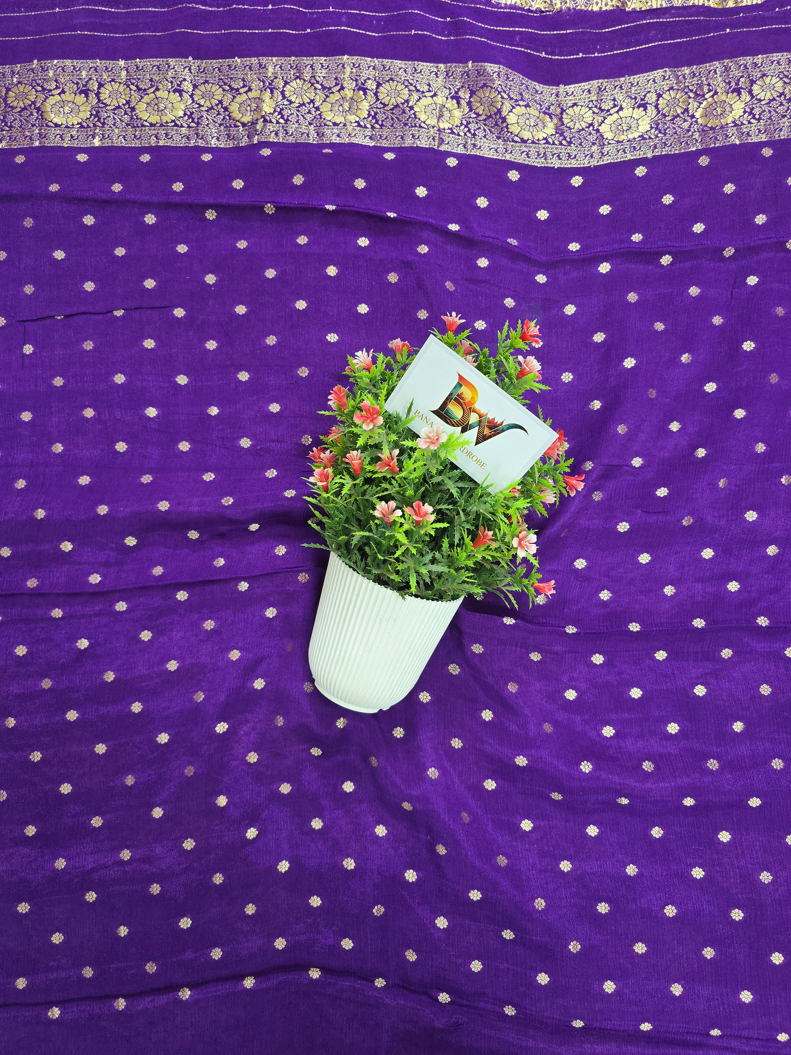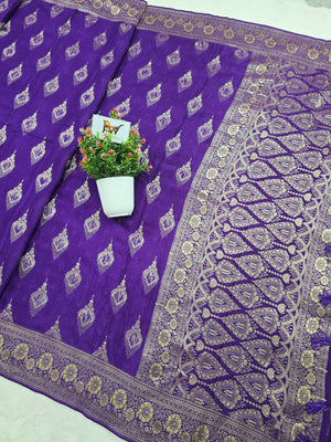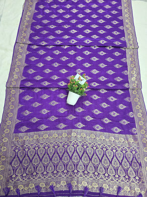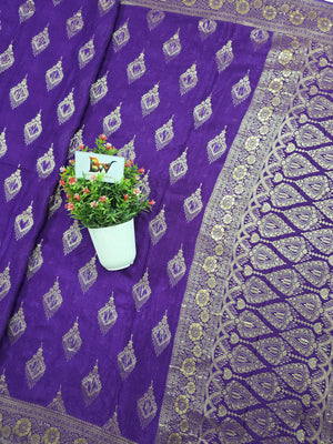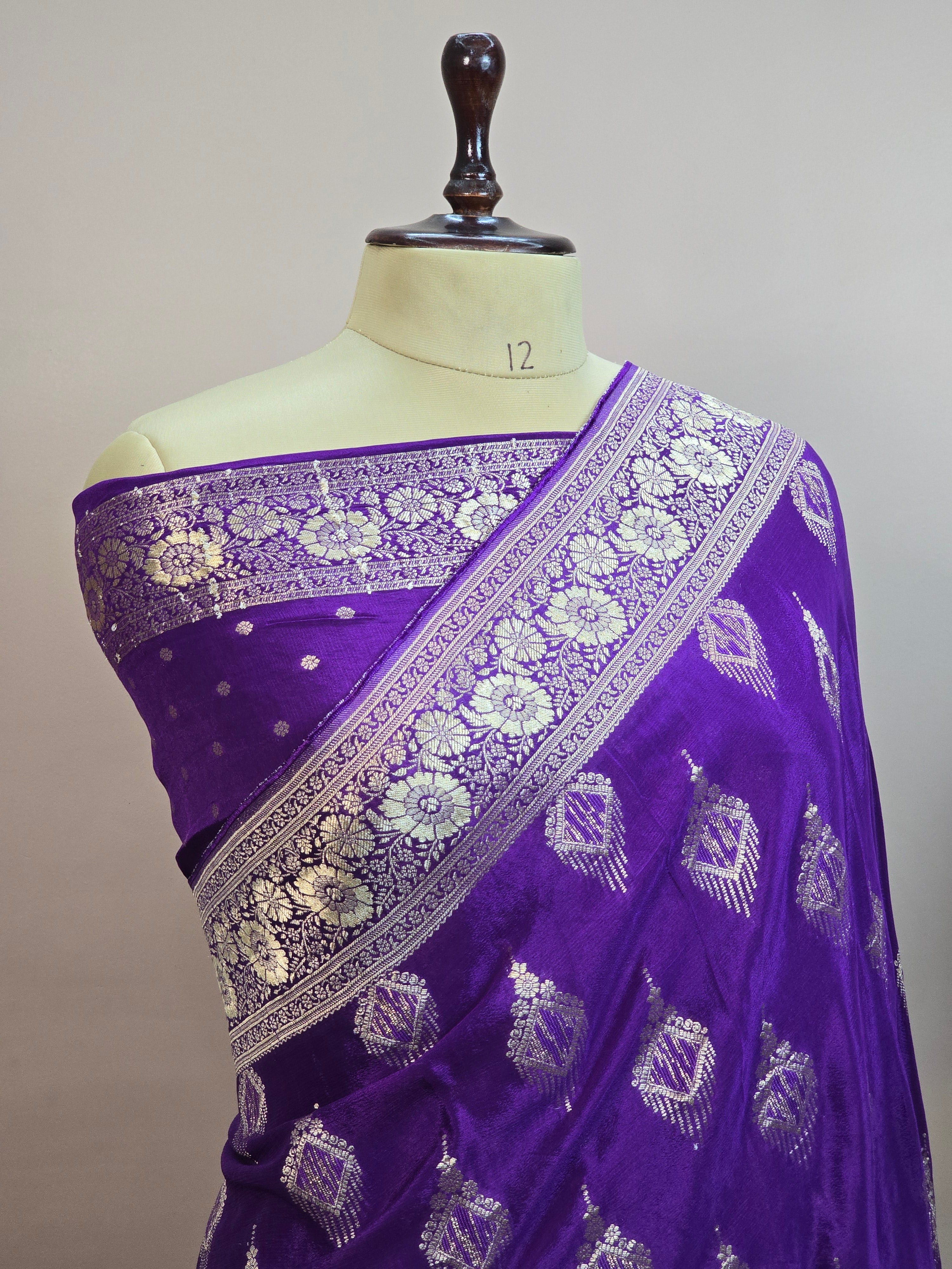 Crush Crepe Banarasi Saree – Royal Purple Body with Geometric Zari Boota