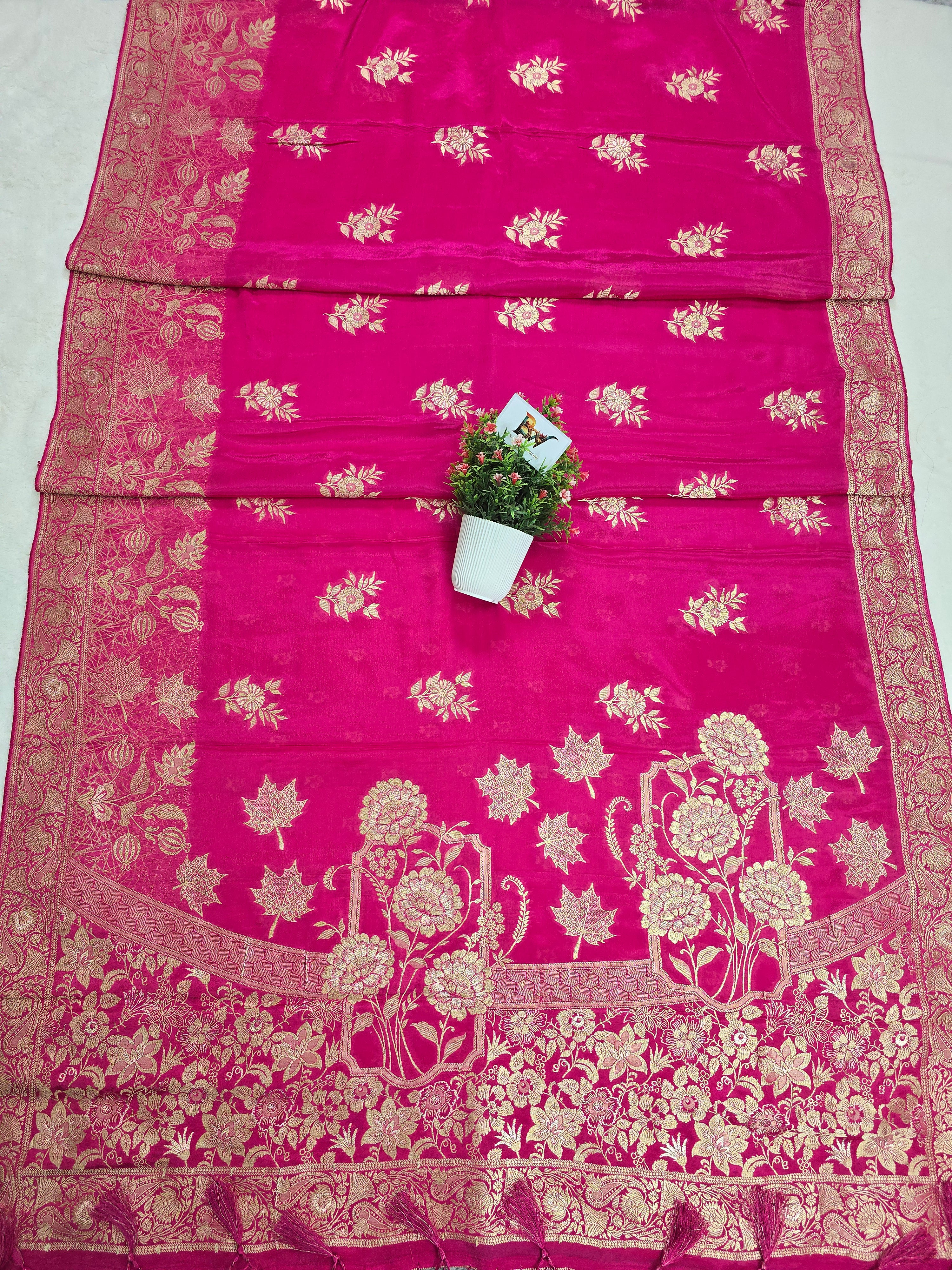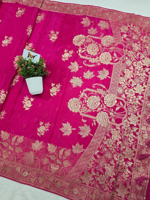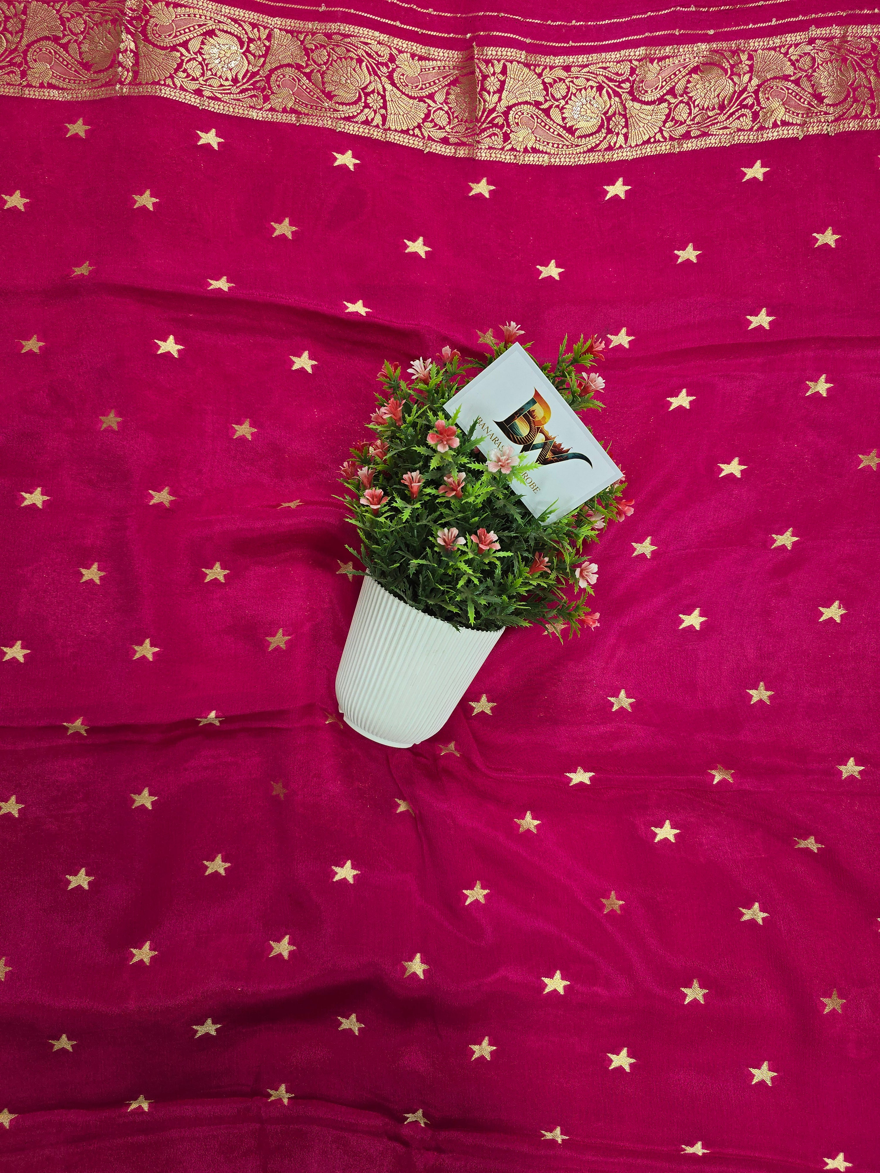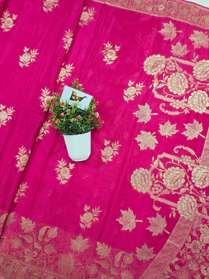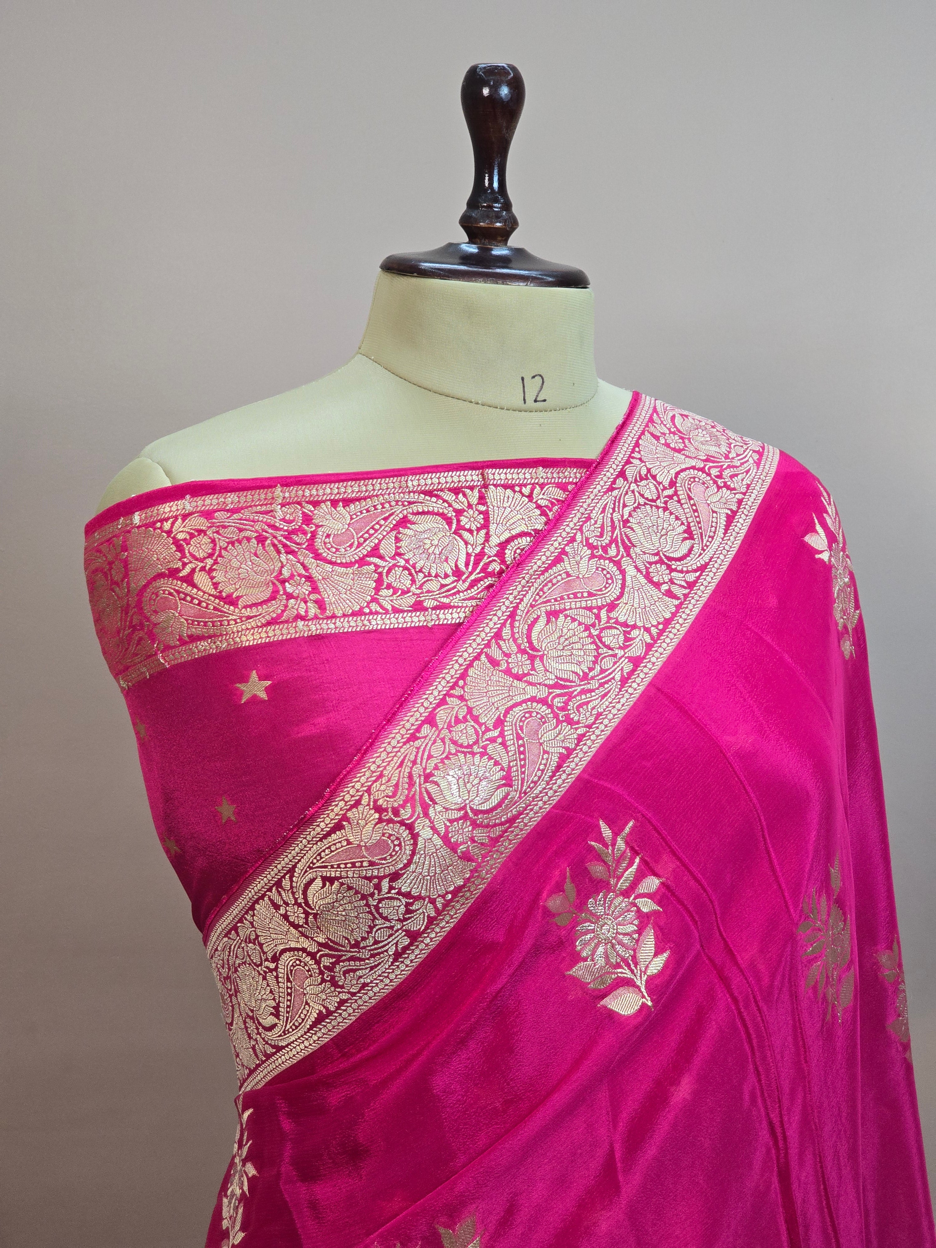 Crush Crepe Banarasi Saree – Rani Pink Body with Flower Boota