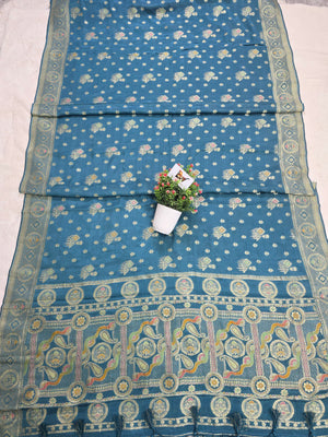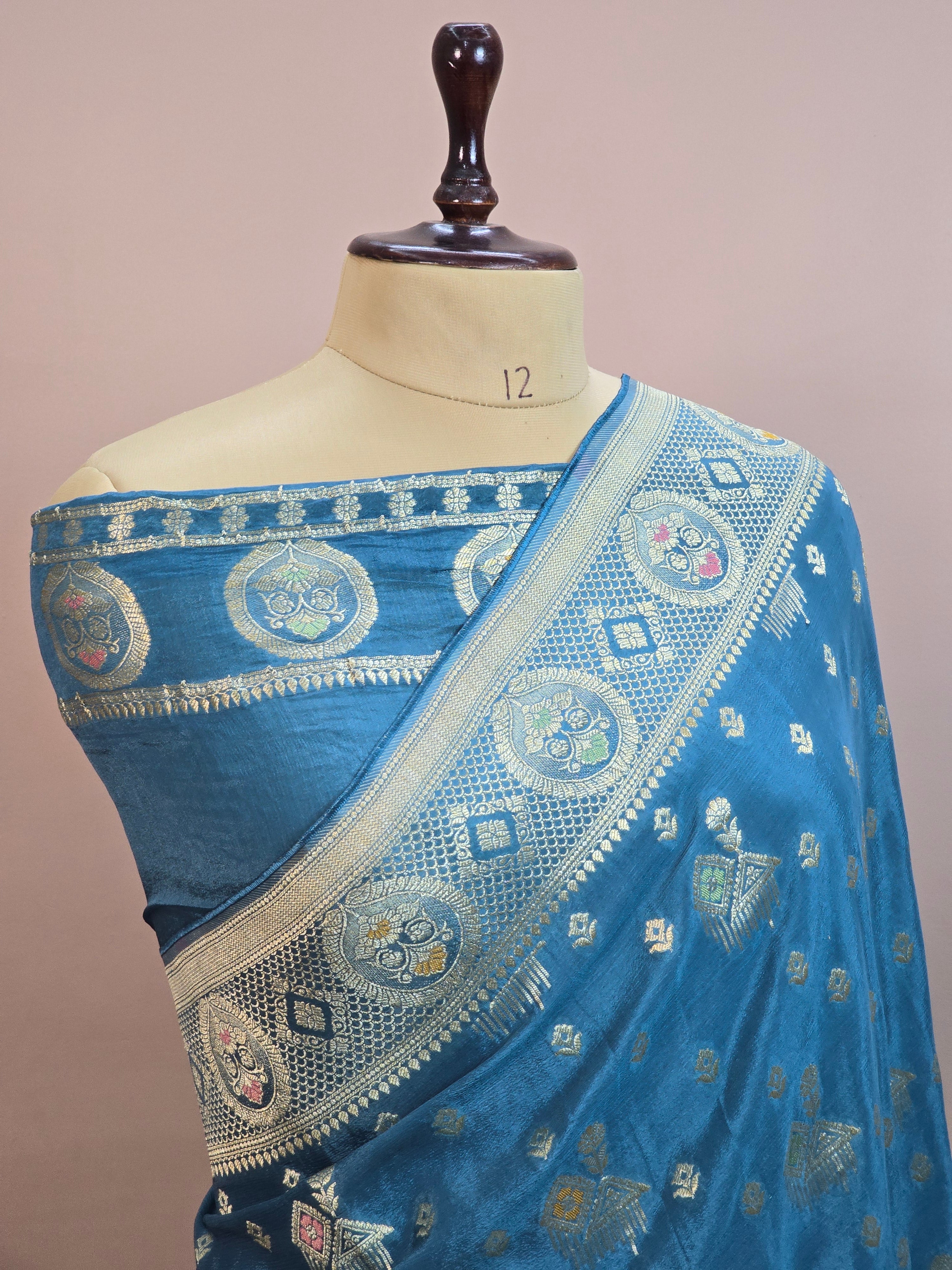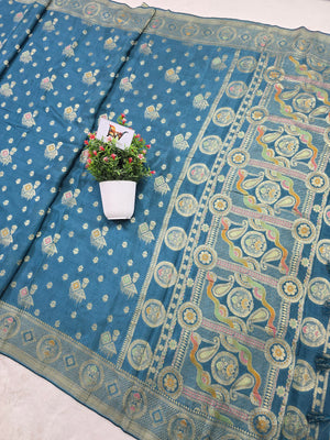 Crush Crepe Banarasi Saree – Firozi Blue with Meenakari Bootas