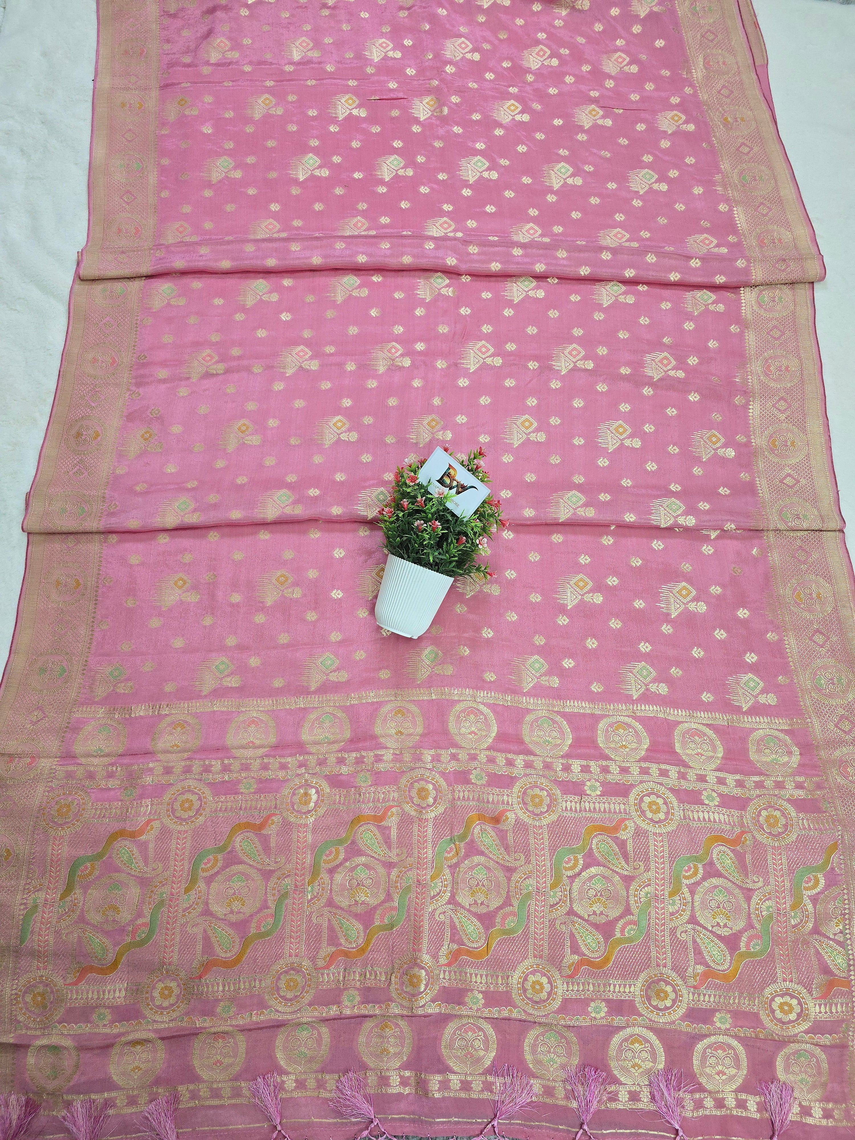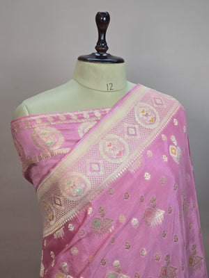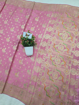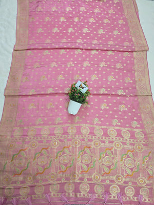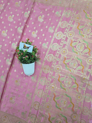Crush Crepe Banarasi Saree – Baby Pink with Meenakari Bootas