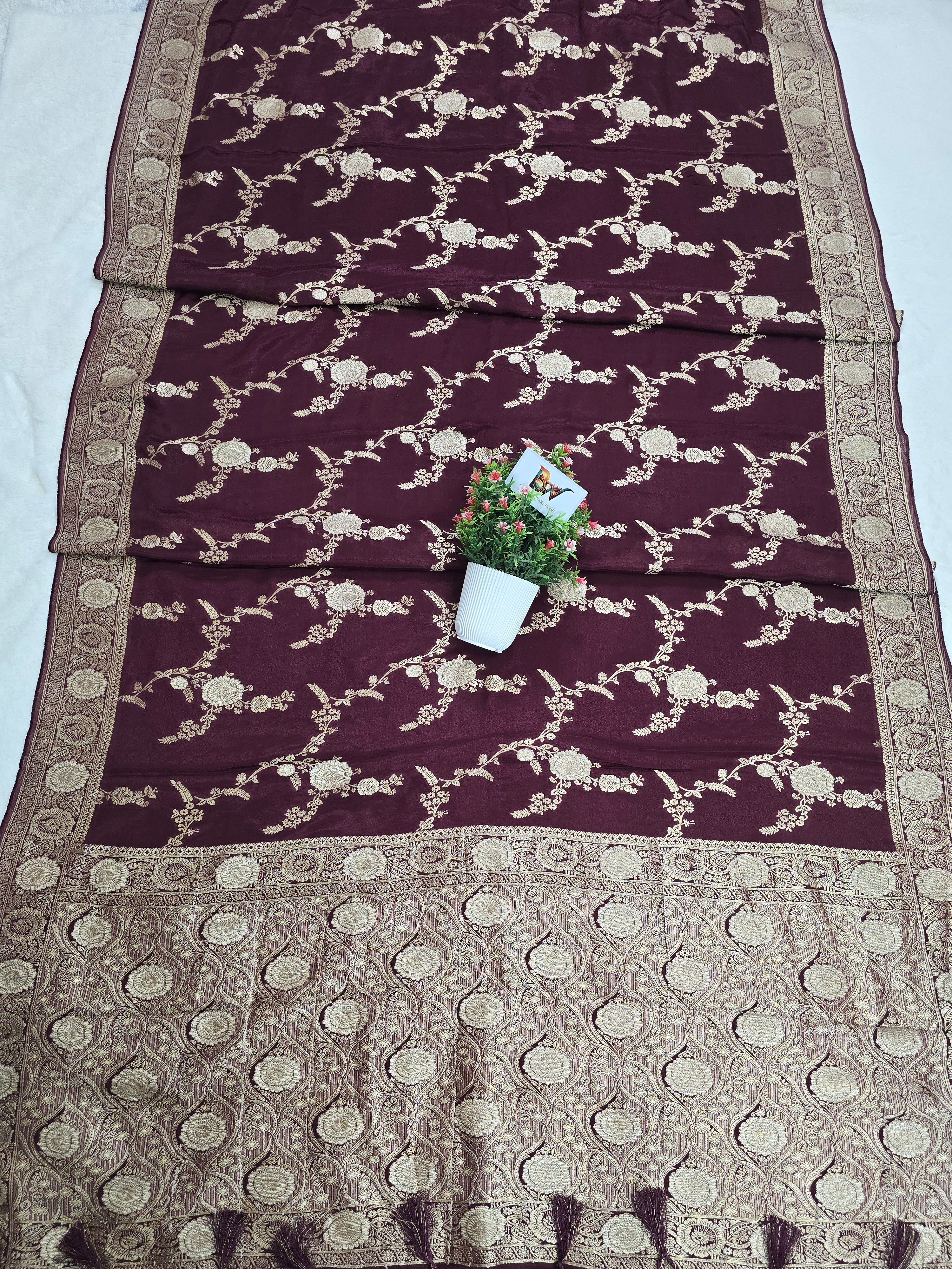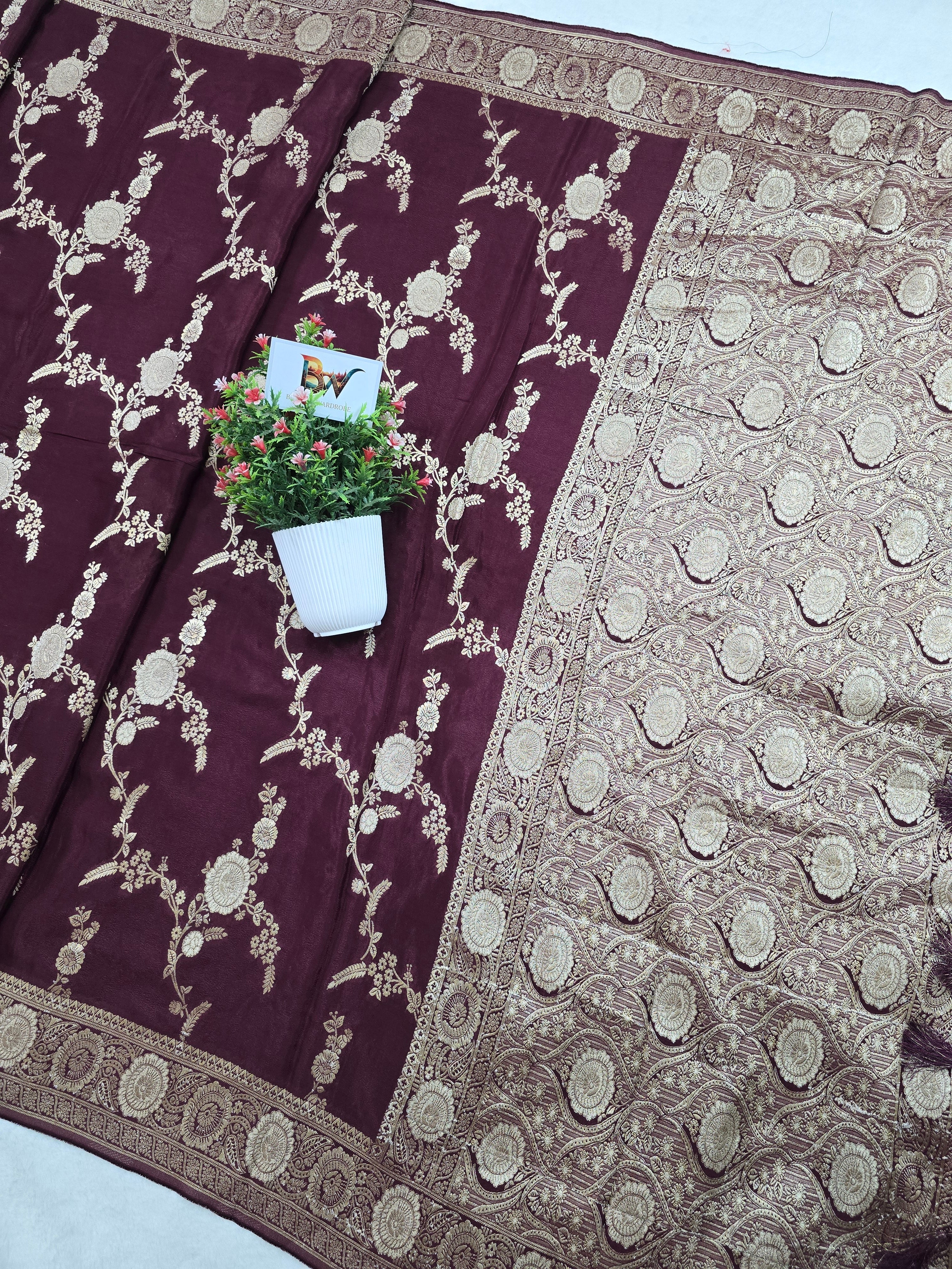 Crush Crepe Banarasi Saree – Brown Body with All Over Boota Jaal
