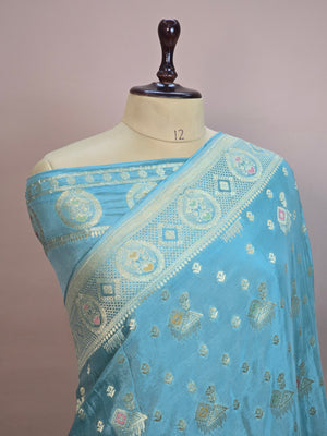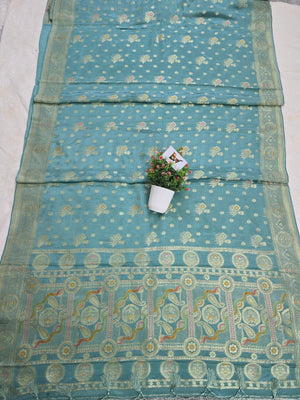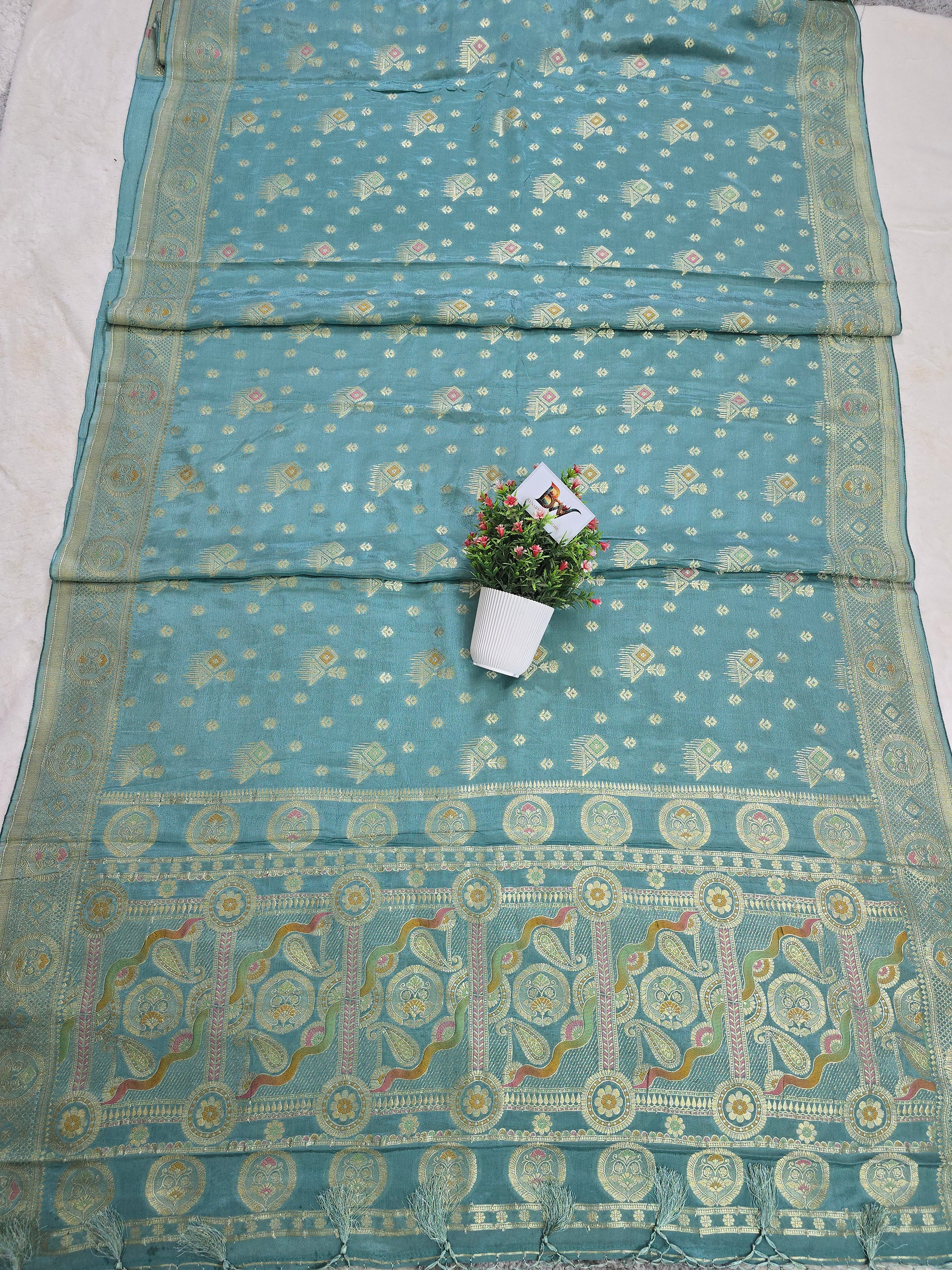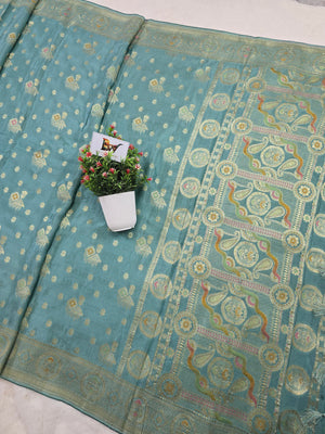 Crush Crepe Banarasi Saree – Sea Green with Meenakari Bootas