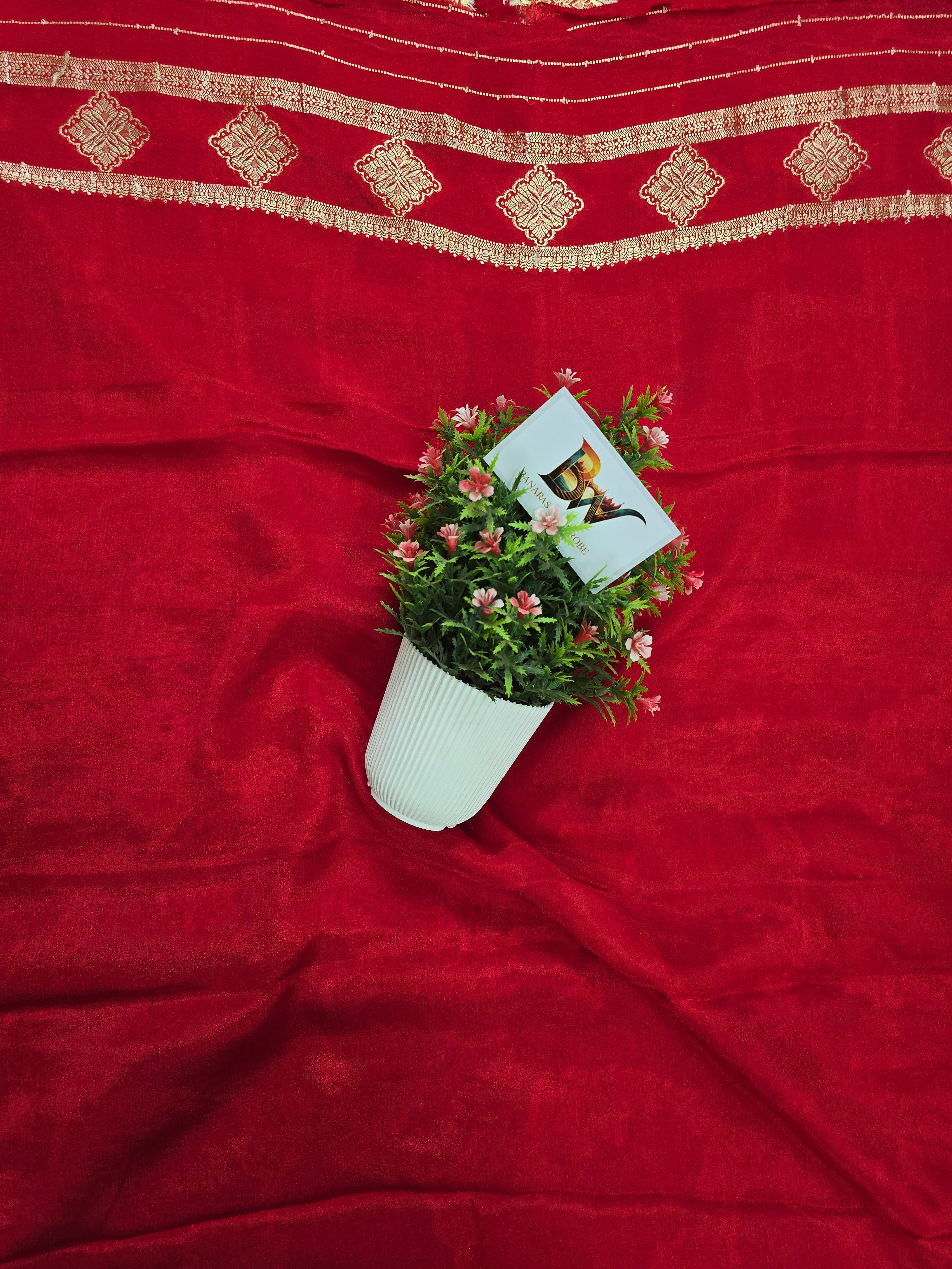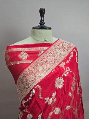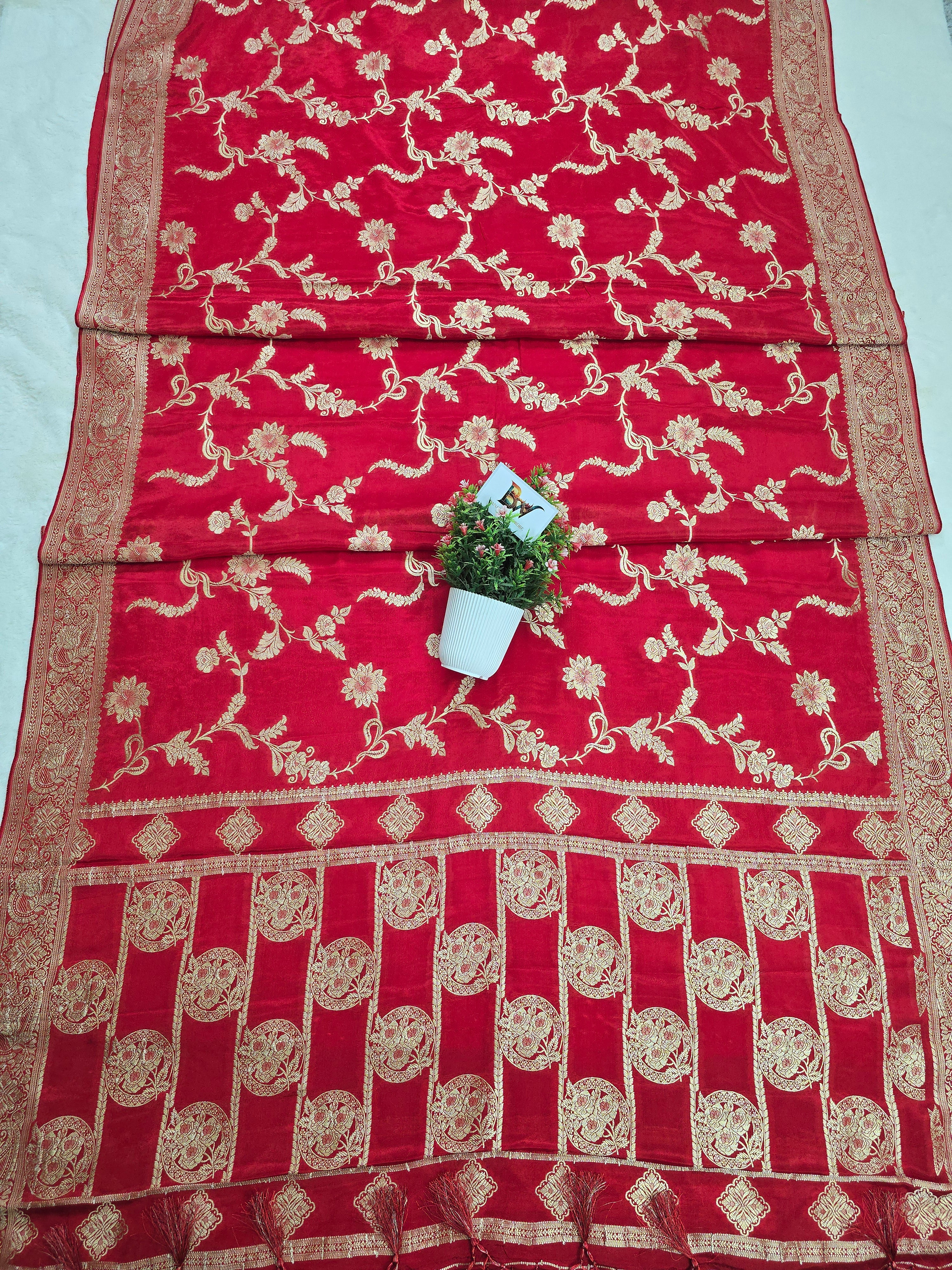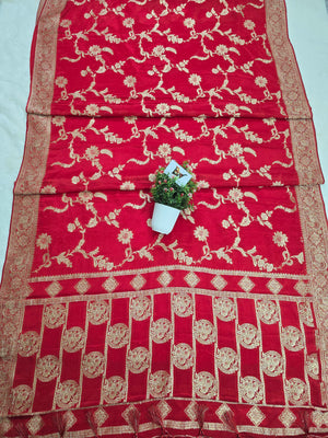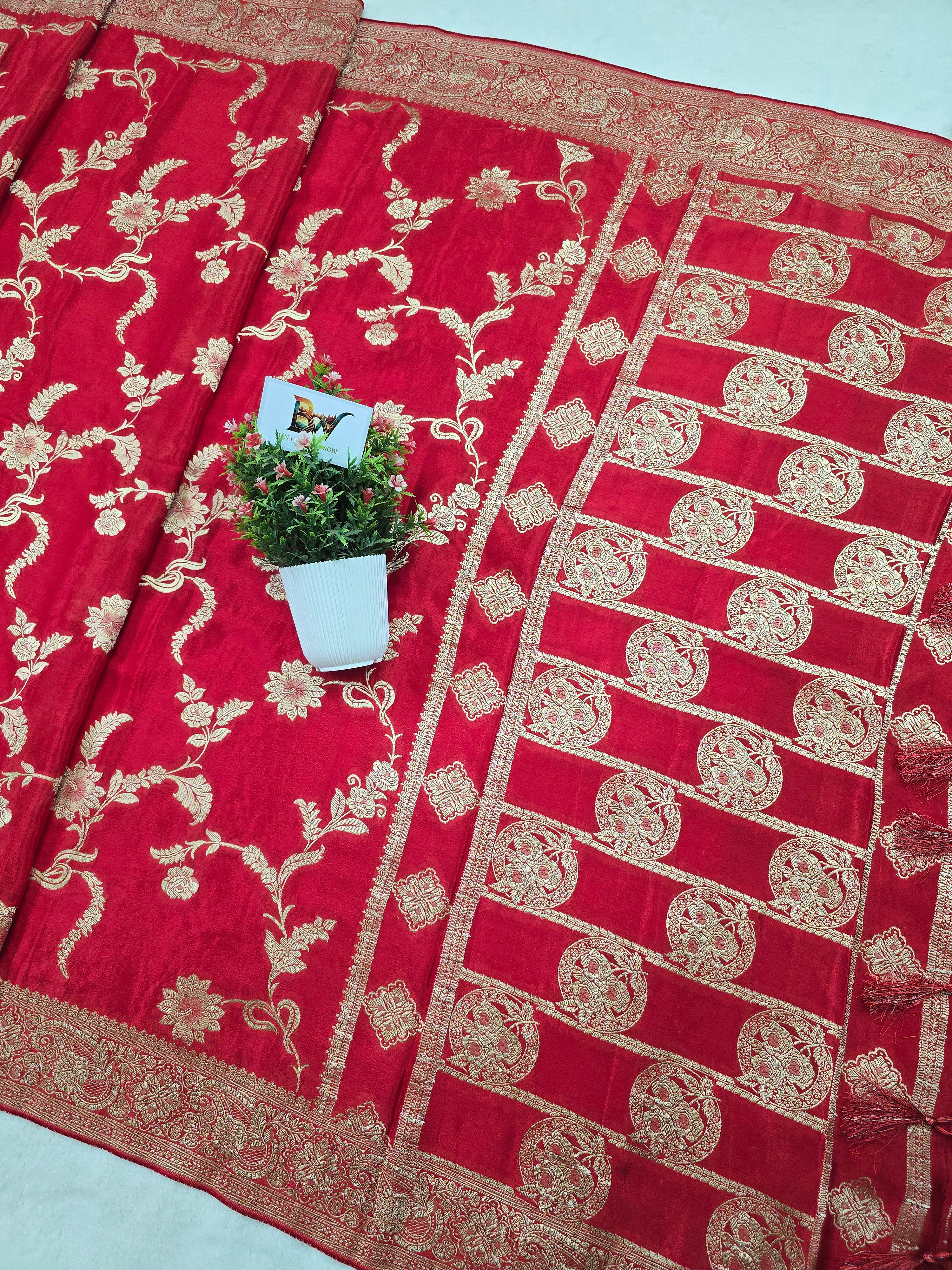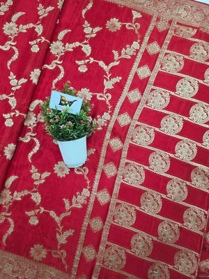 Crush Crepe Banarasi Saree – Red Body with All Over Jaal
