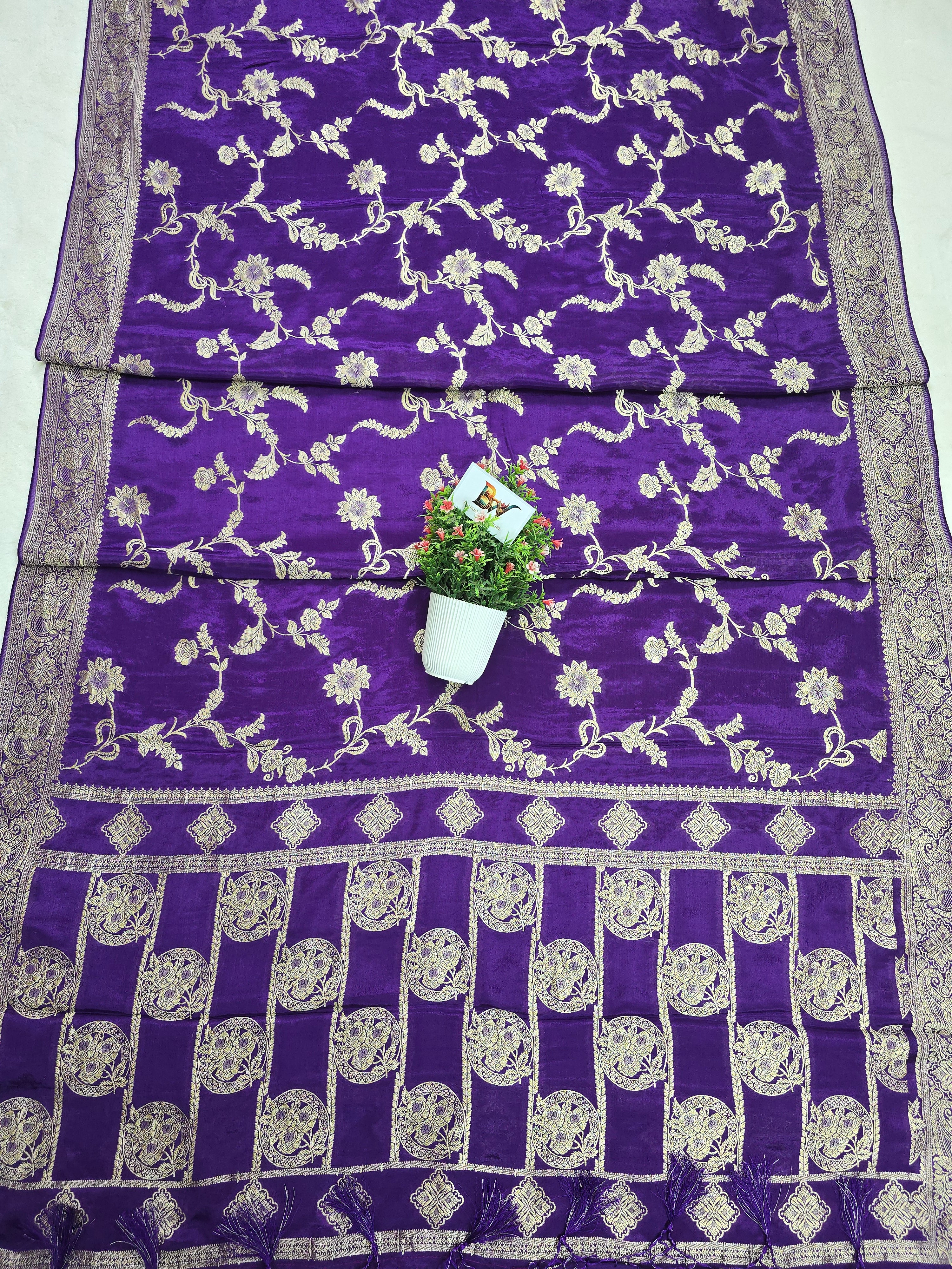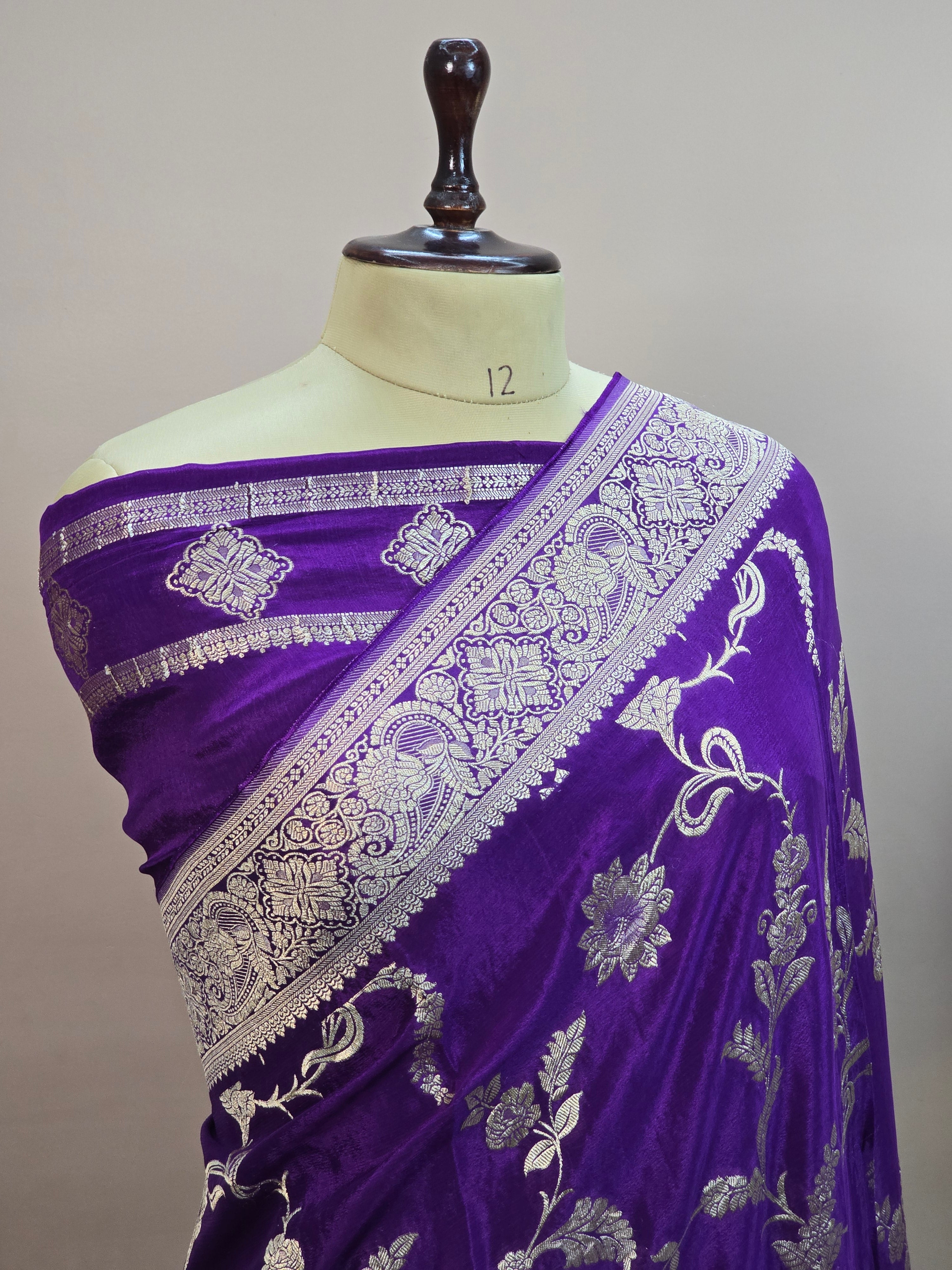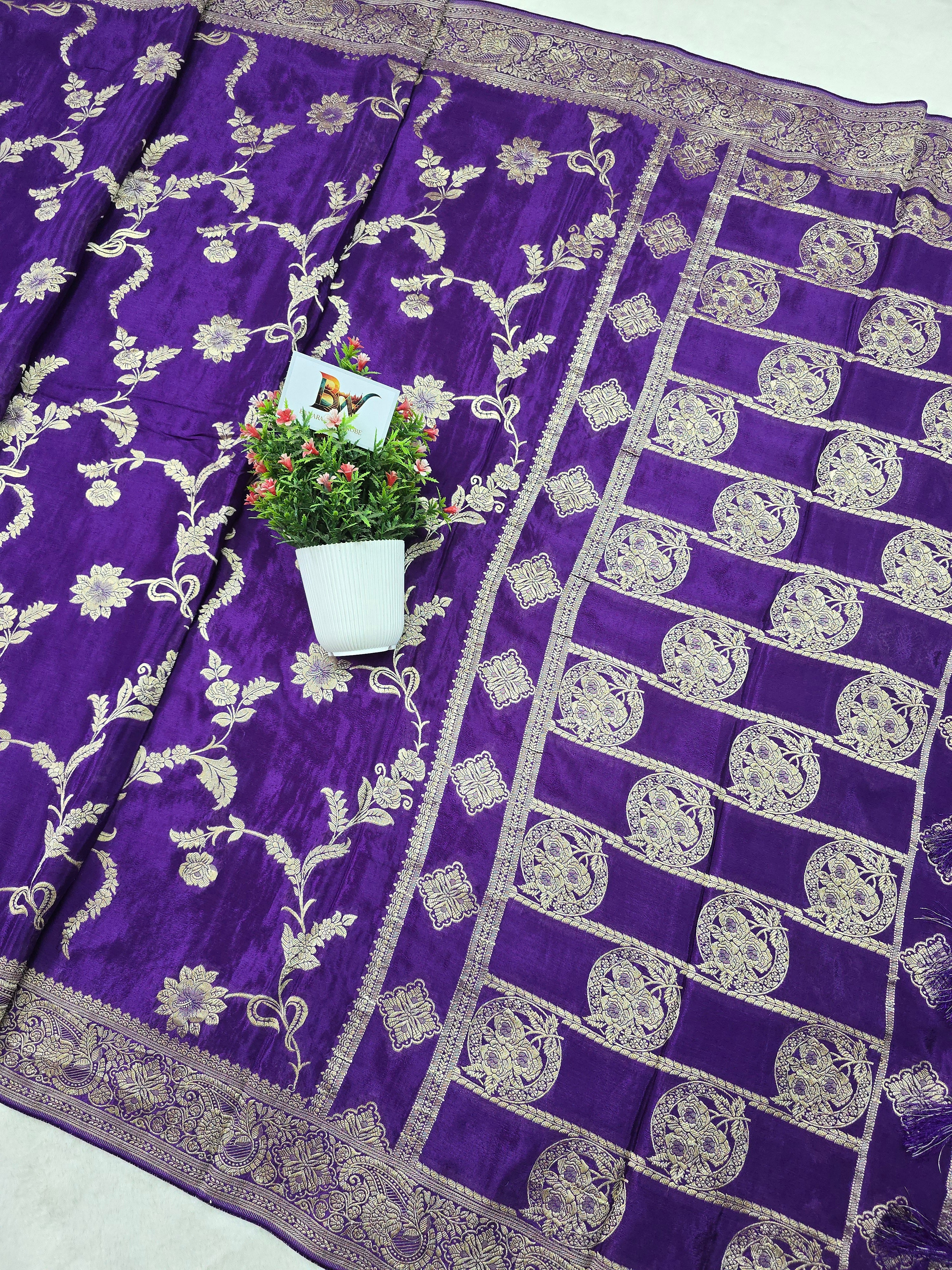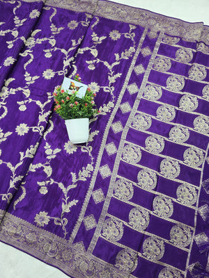 Crush Crepe Banarasi Saree – Royal Purple Body with All Over Jaal