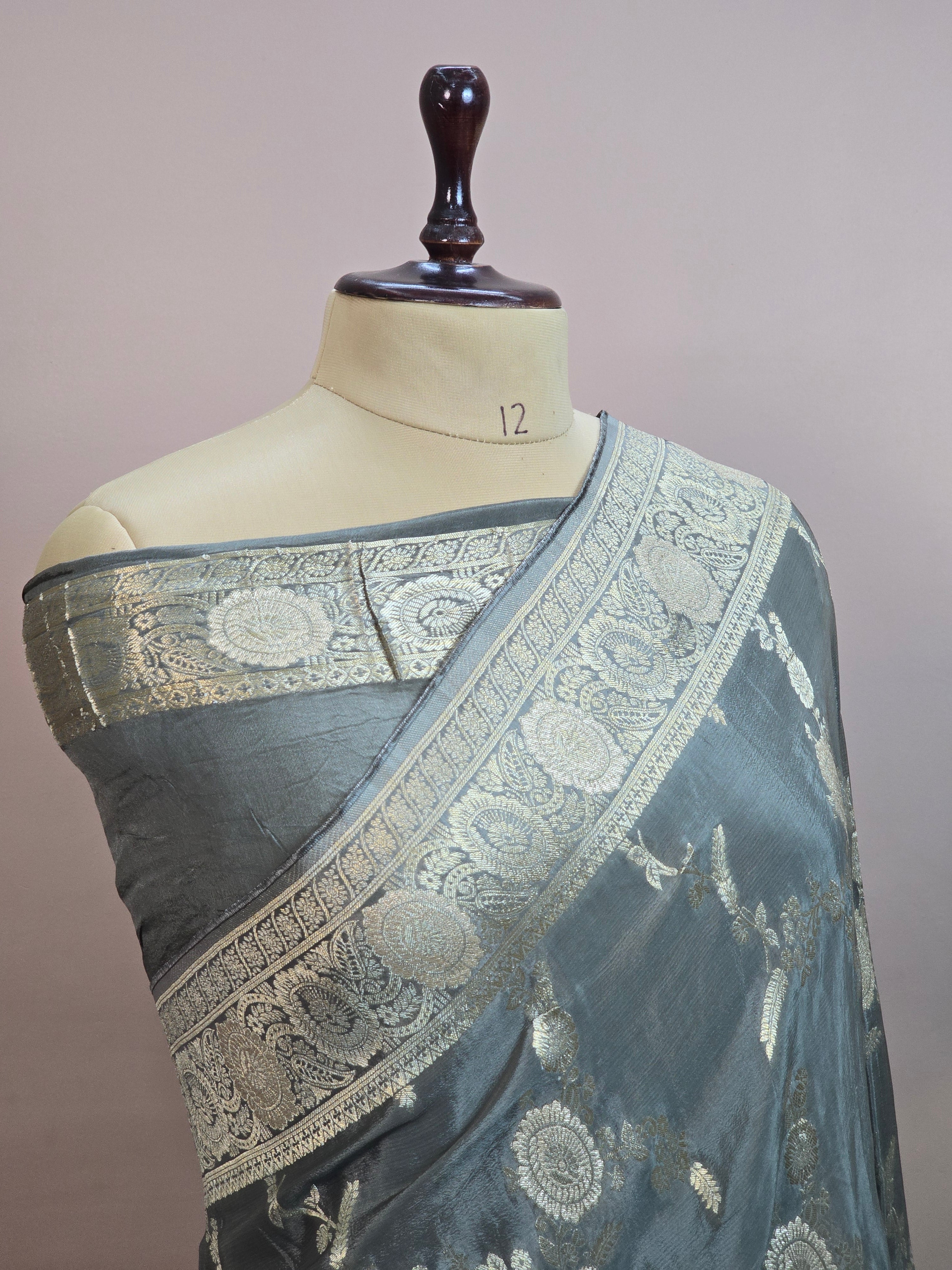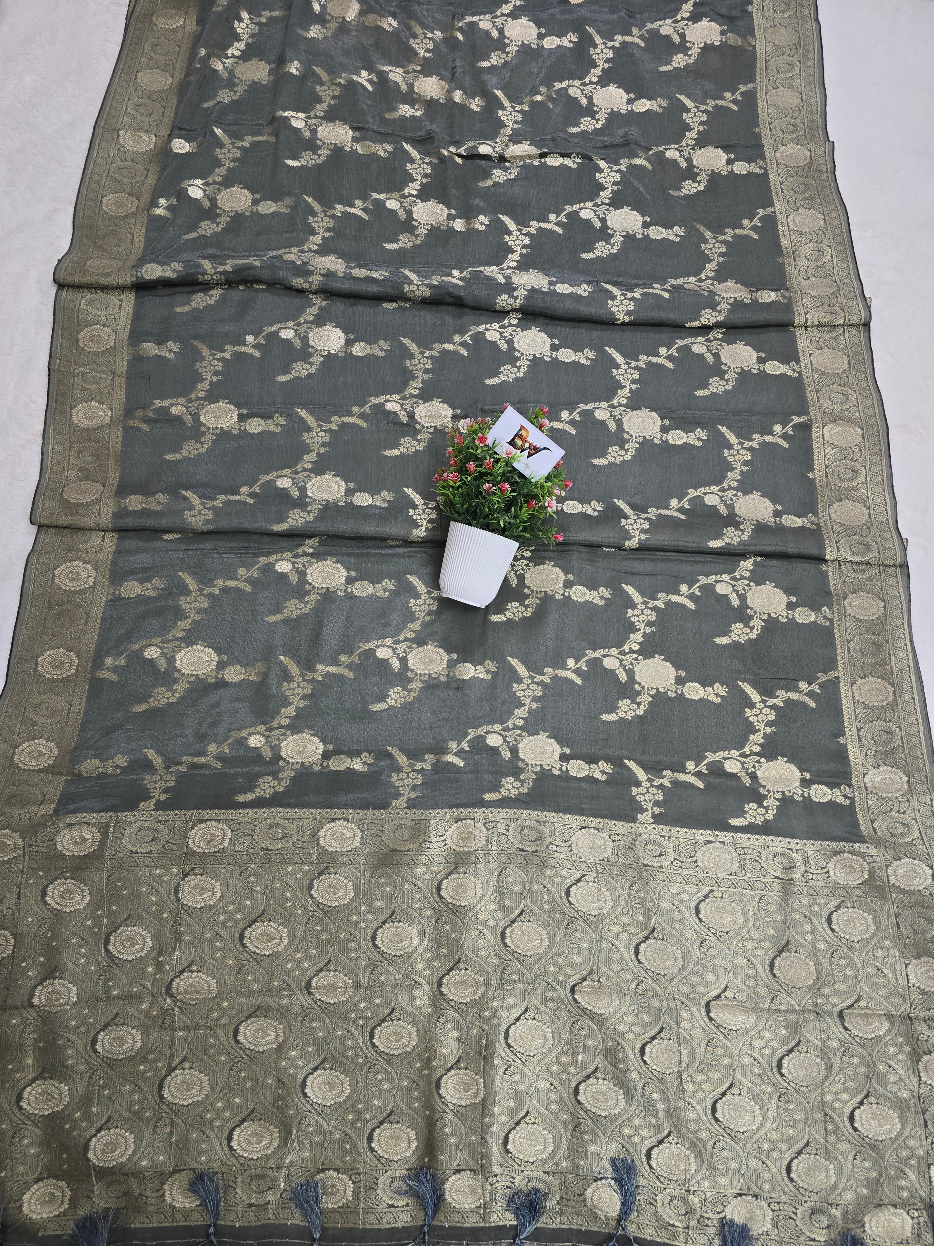 Crush Crepe Banarasi Saree – Grey with All Over Boota Jaal