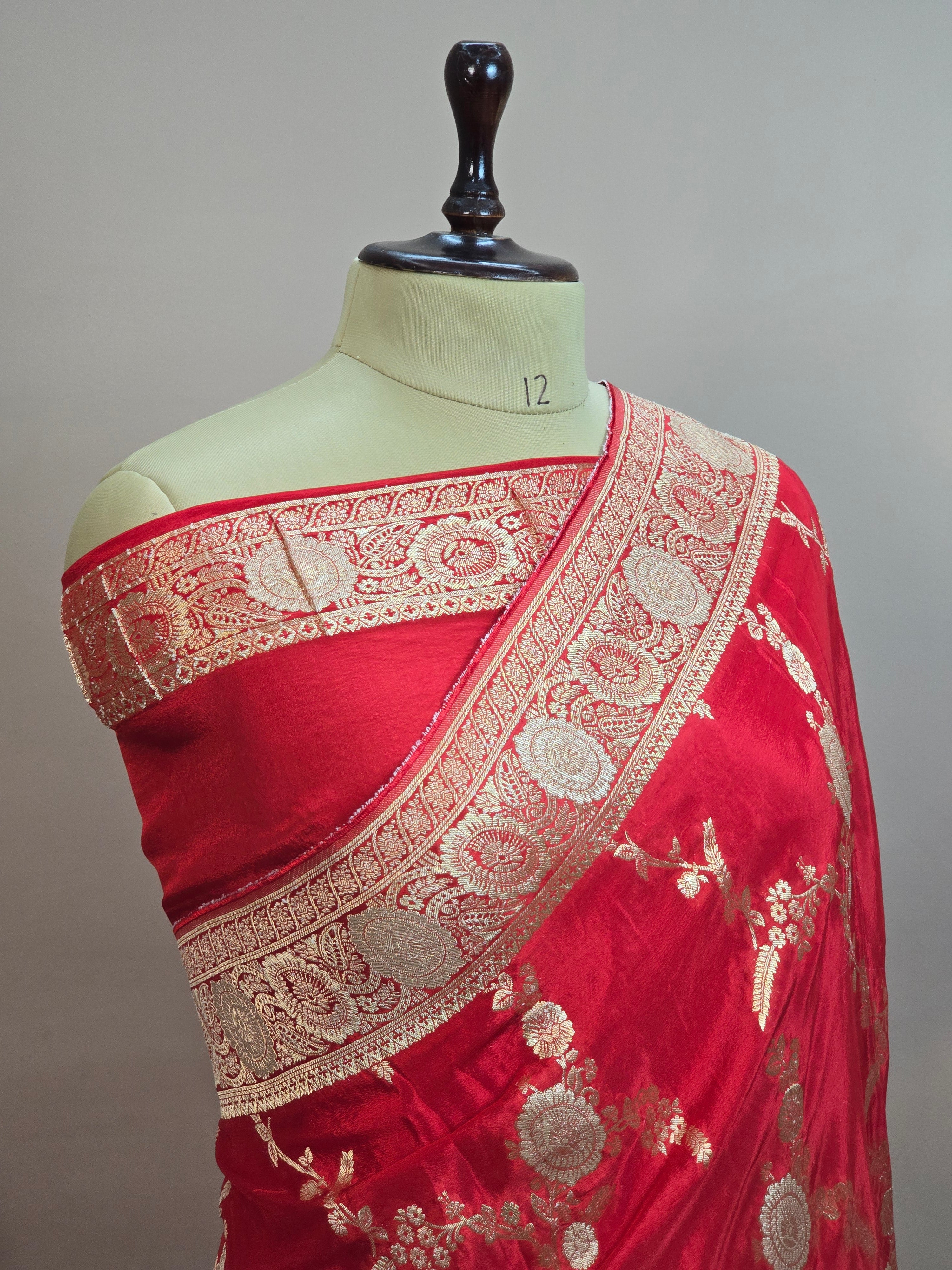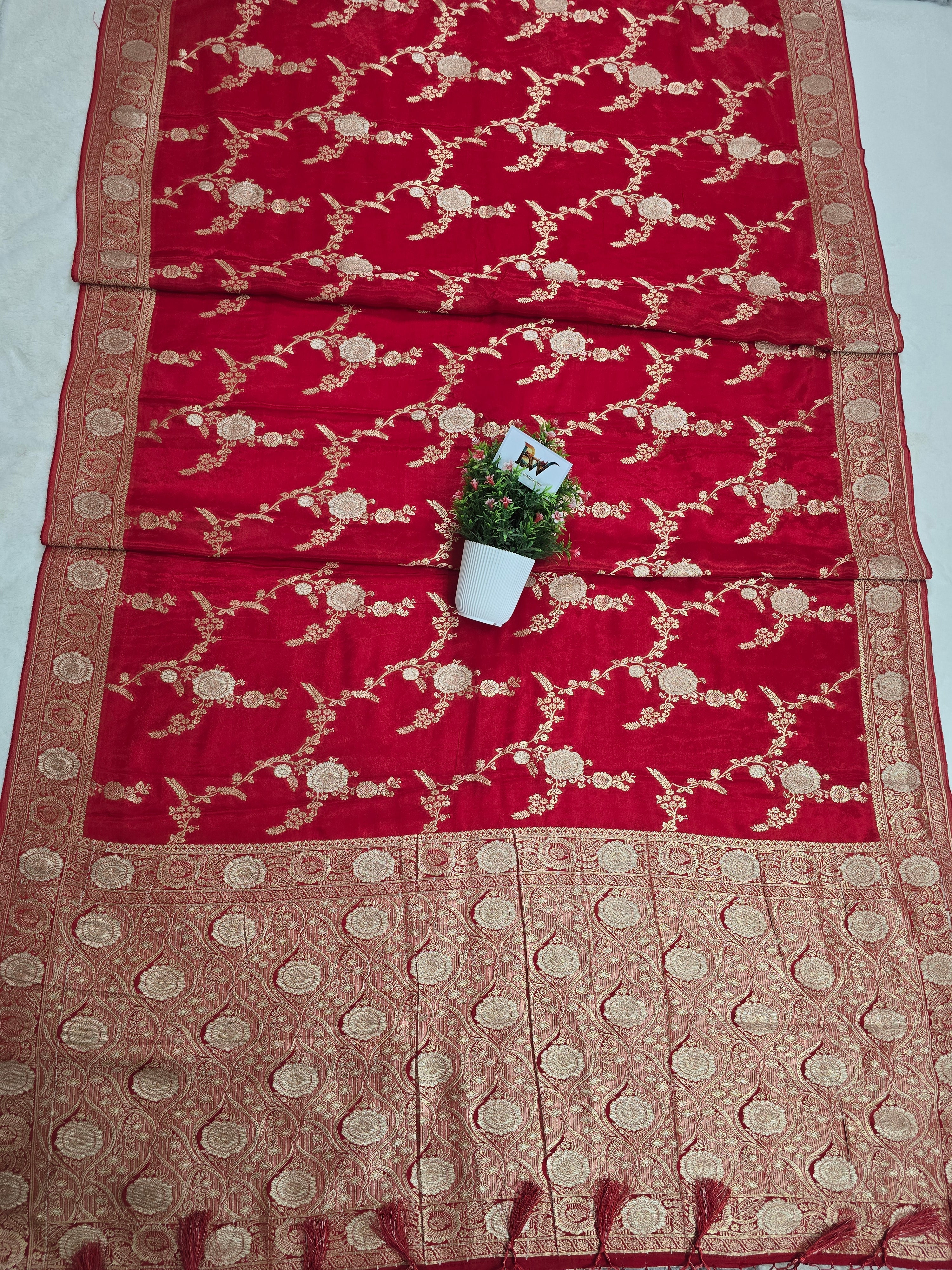 Crush Crepe Banarasi Saree – Red with All Over Boota Jaal