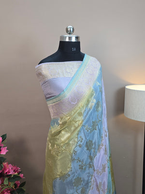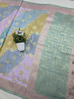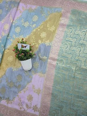 Crush Crepe Light MultiColor Rangkaat Jaal Banarasi Saree