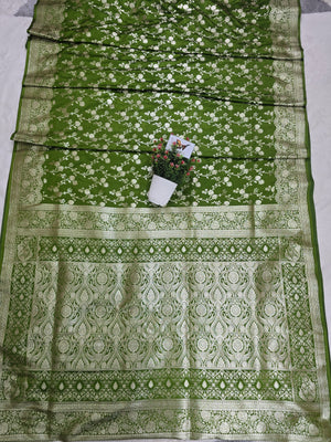 Upgrade your ethnic wardrobe with this elegant Malai Katan Silk Jaal Saree, crafted for women who love traditional beauty with a luxurious finish. The saree features an all-over woven floral jaal, giving it a rich, heritage-inspired appeal. Its floral jaal pattern border enhances the Banarasi charm, adding a beautifully detailed and premium touch.