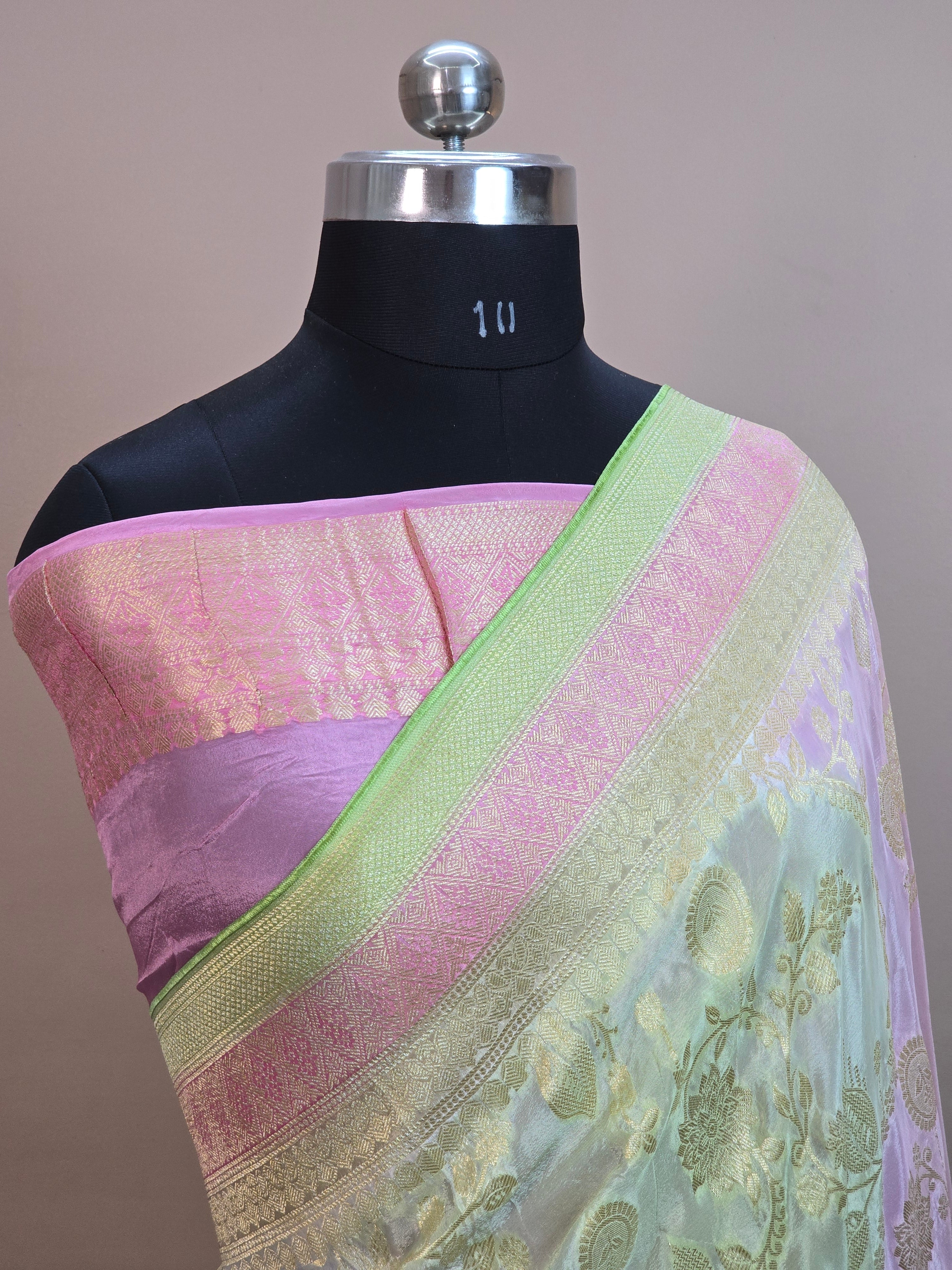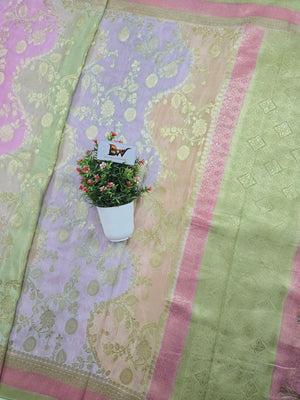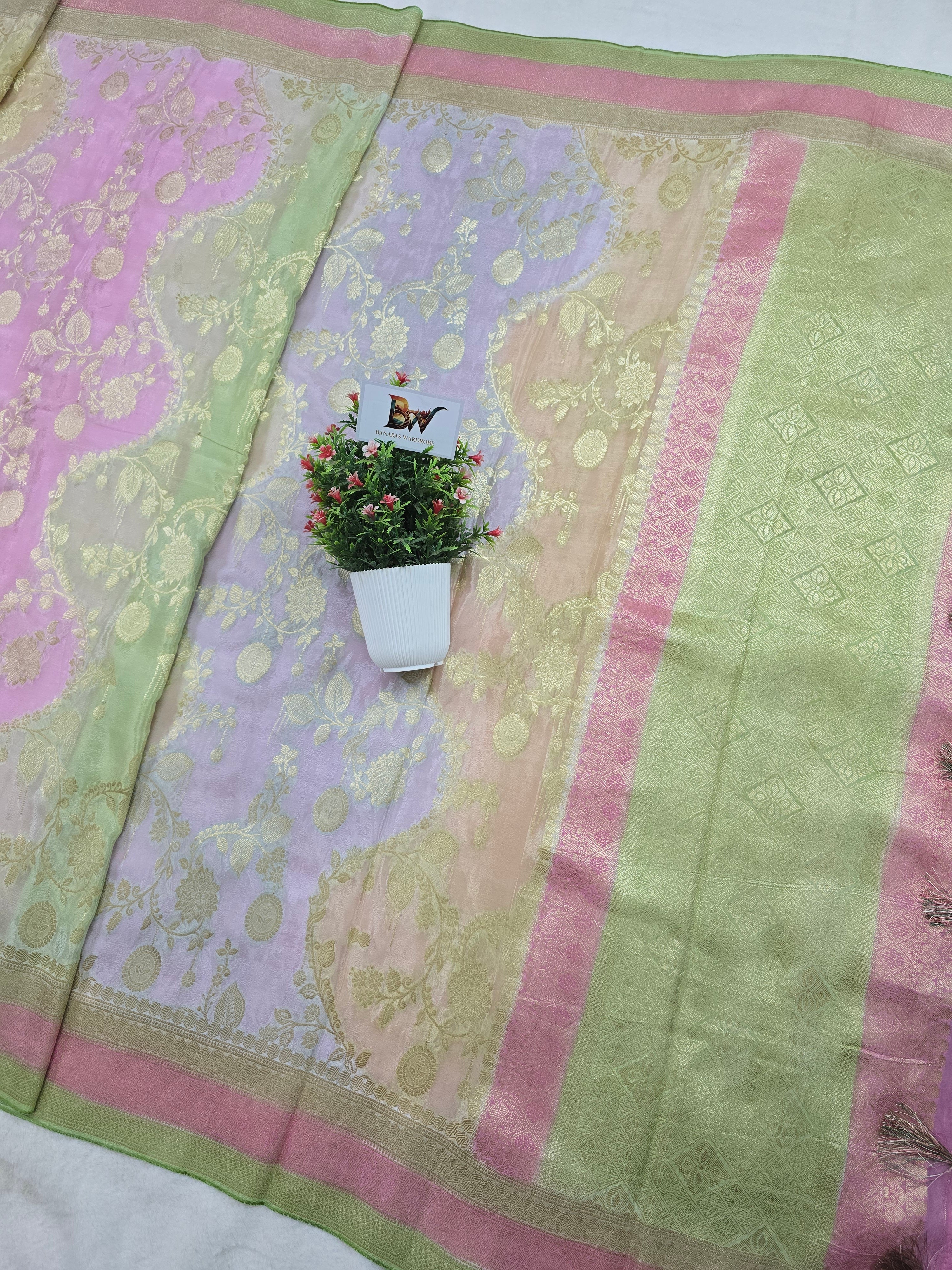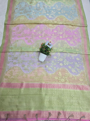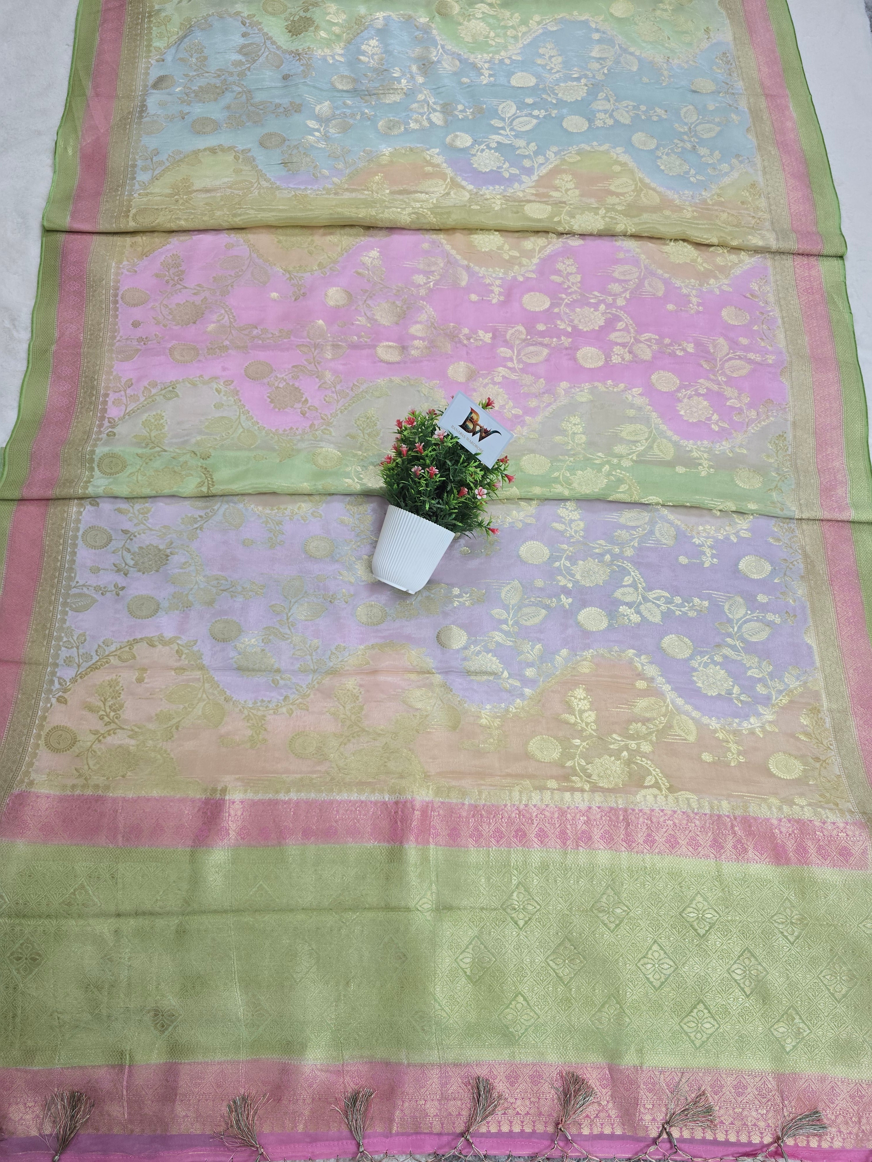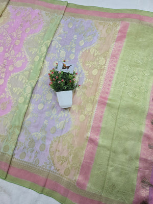 Crush Crepe Light MultiColor Rangkaat Jaal Banarasi Saree with Boota & Tricolour Border