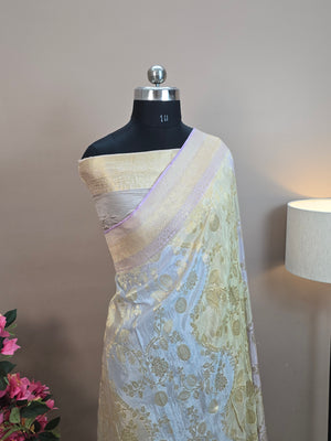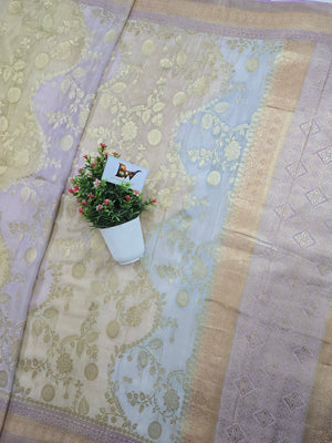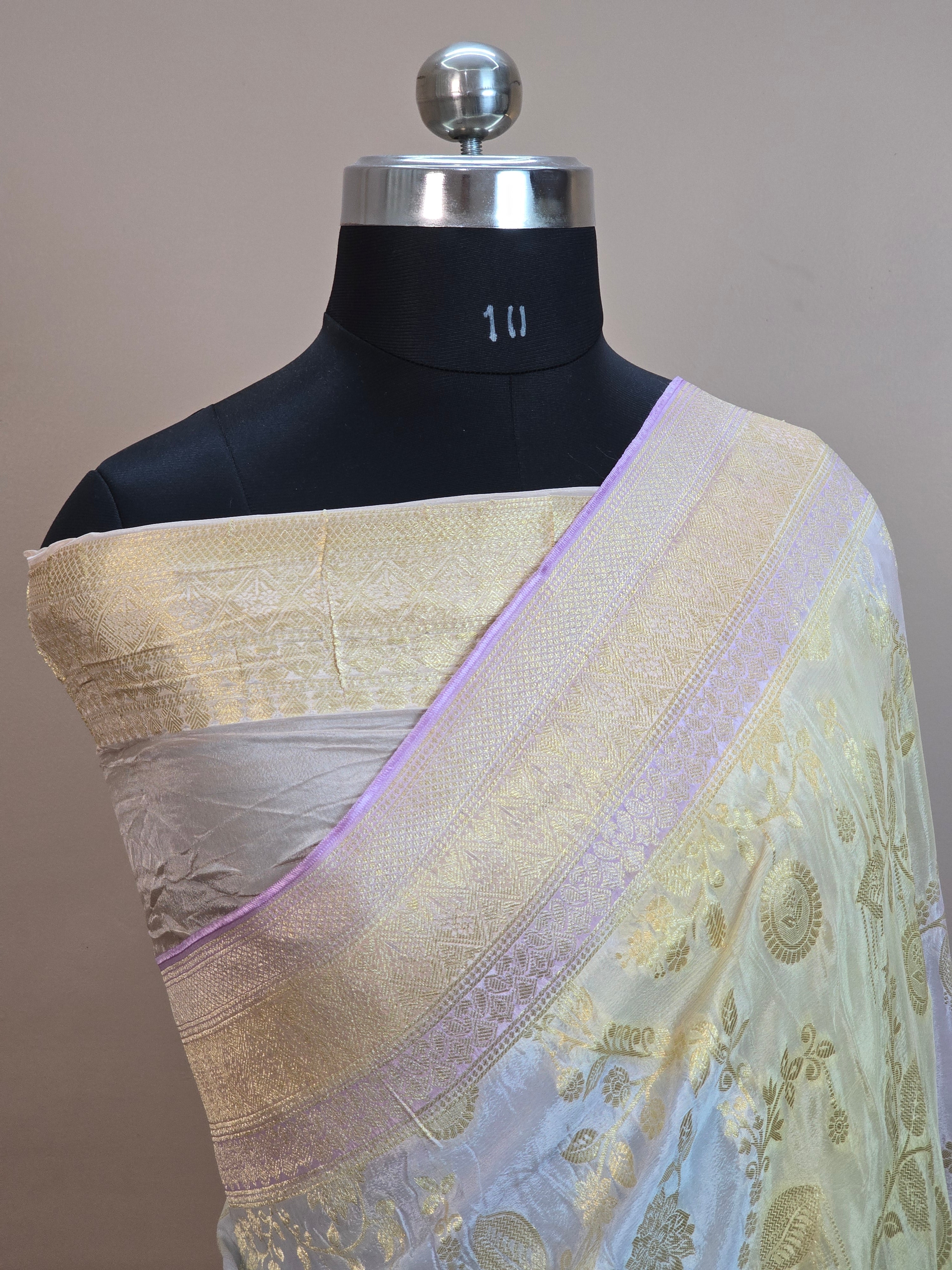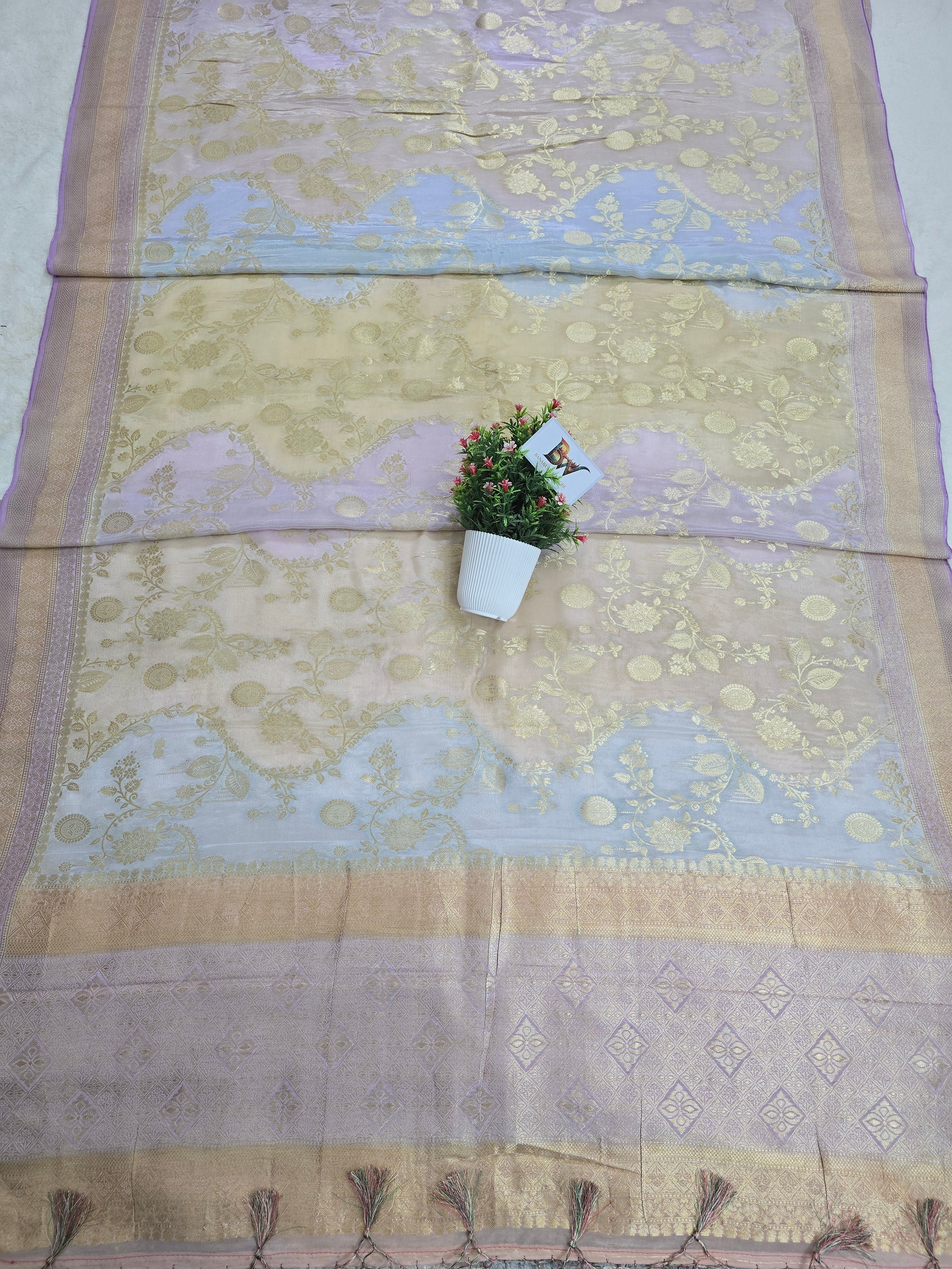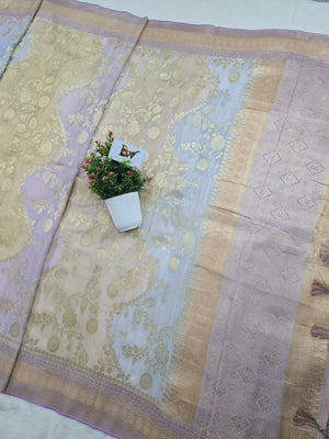 Crush Crepe Light MultiColor Rangkaat Jaal Banarasi Saree with Boota & Tricolour Border
