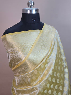 Glass Tissue Silk Banarasi Saree - All Over Flower Booti