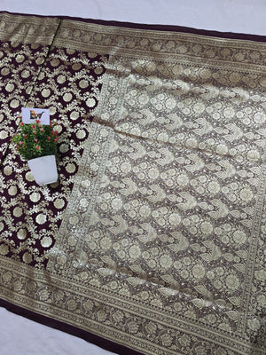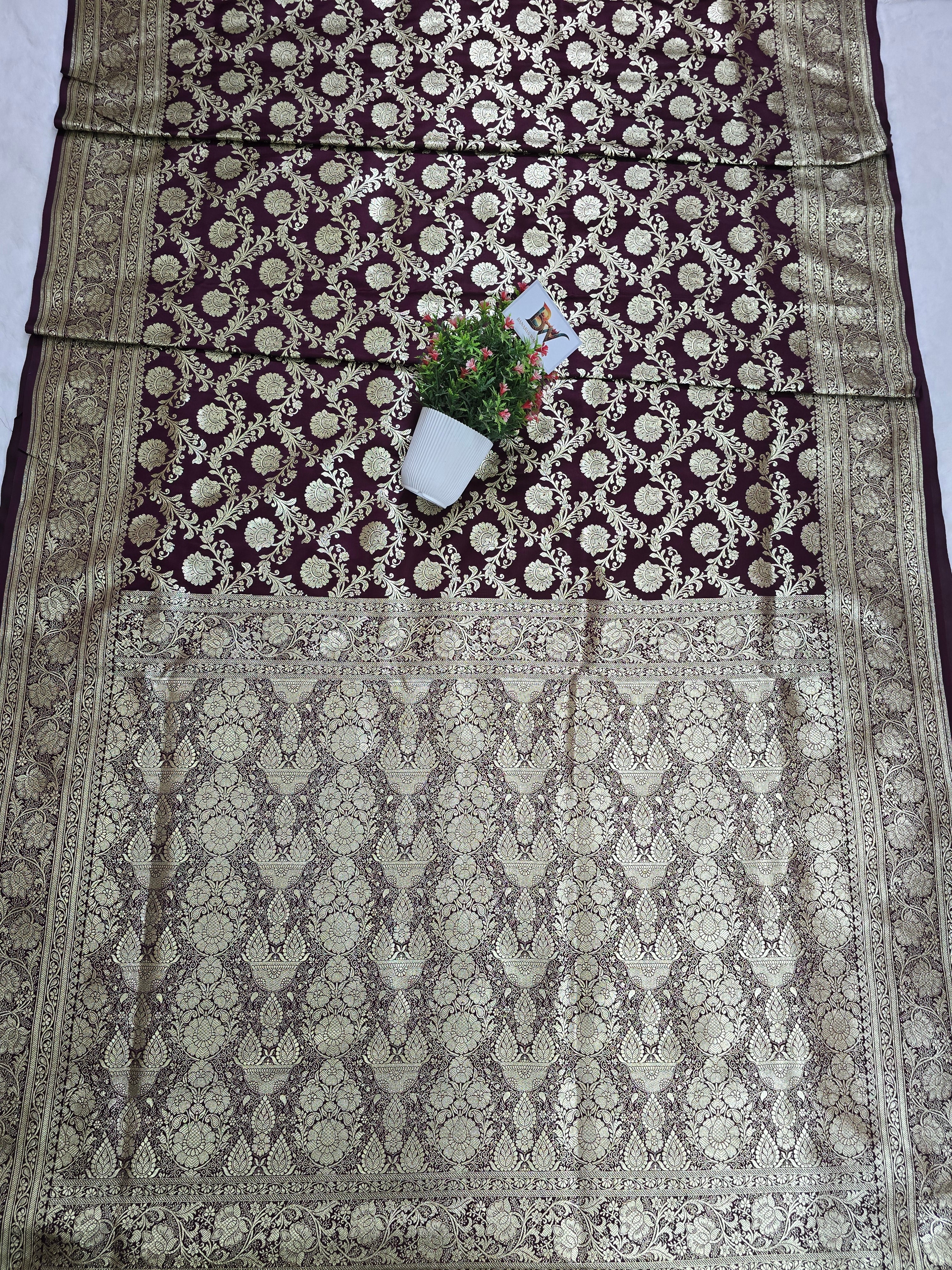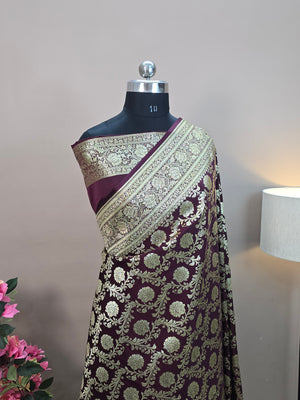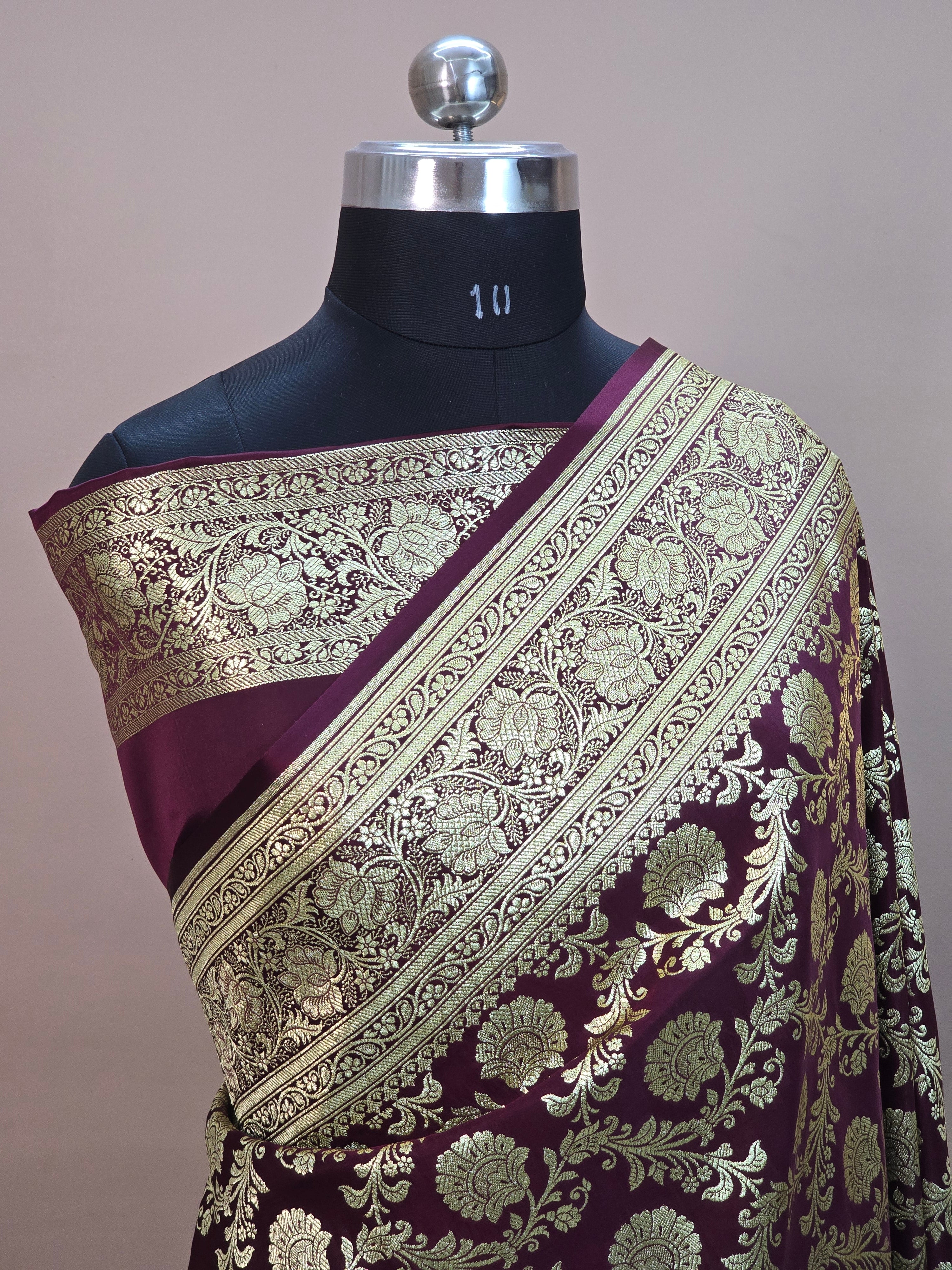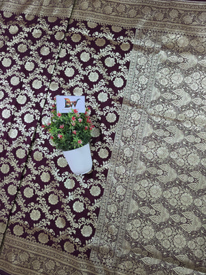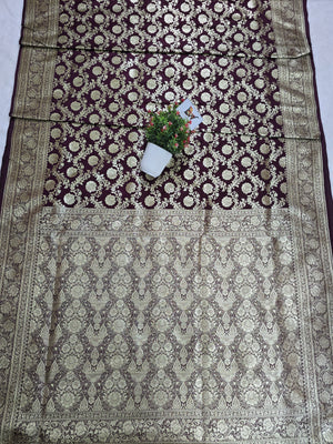 Satin Katan Silk Jaal Banarasi Saree – Deep Maroon with Gold Zari Jaal