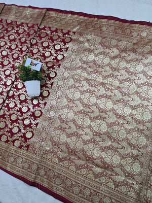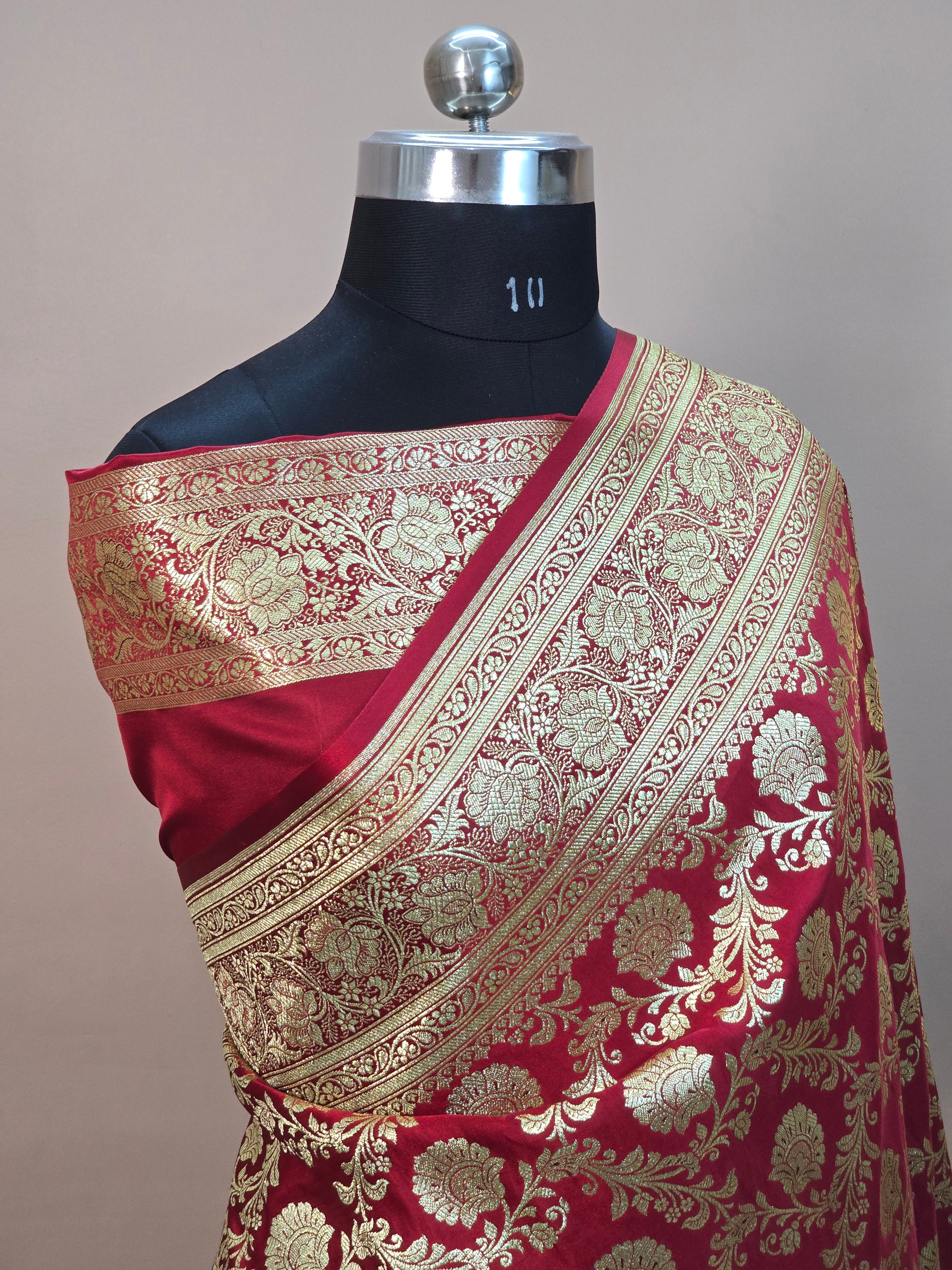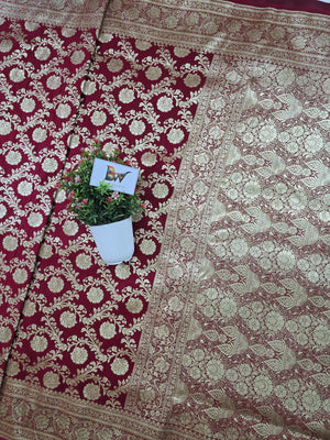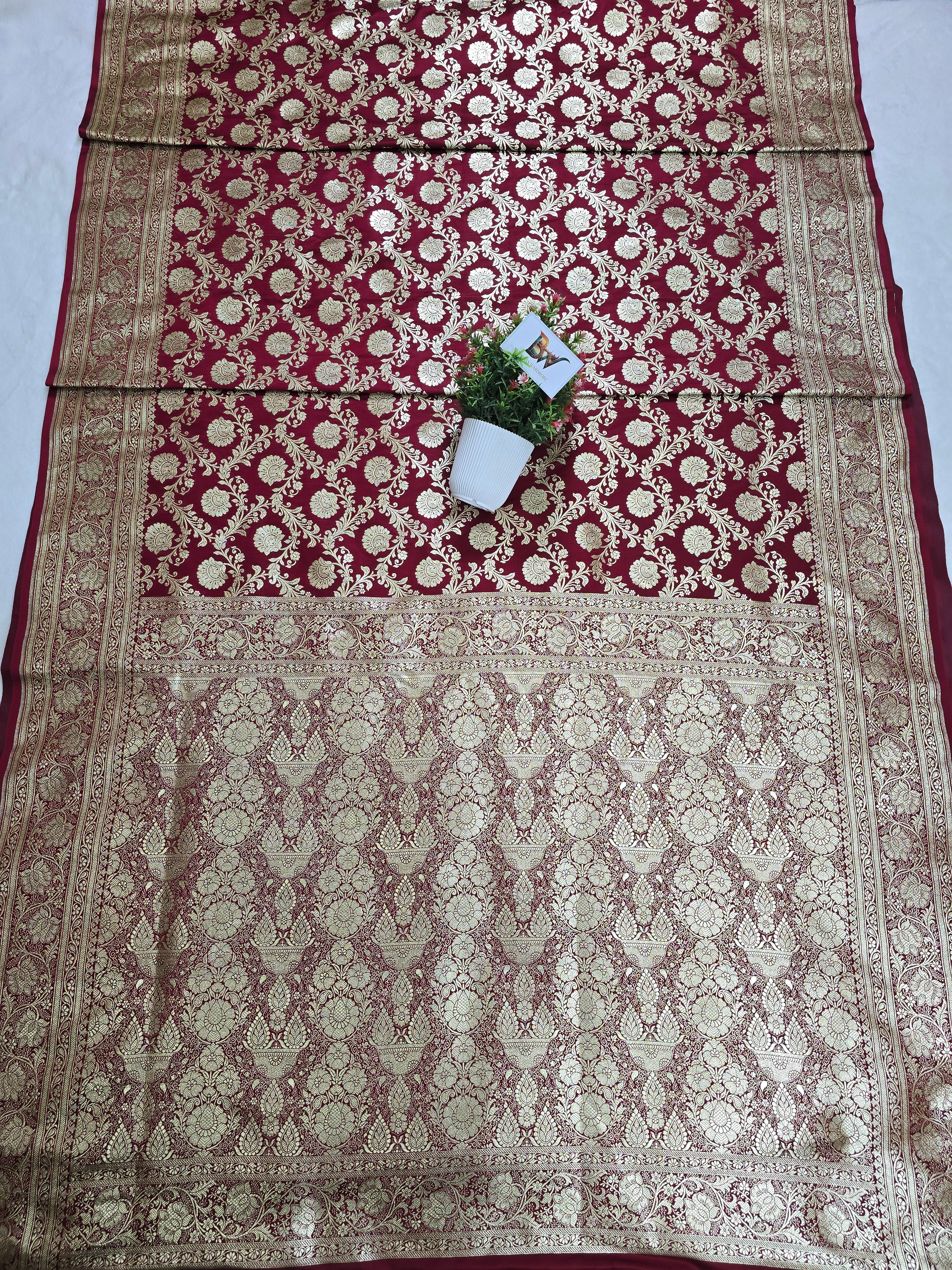 Satin Katan Silk Jaal Banarasi Saree – Maroon with Gold Zari Jaal