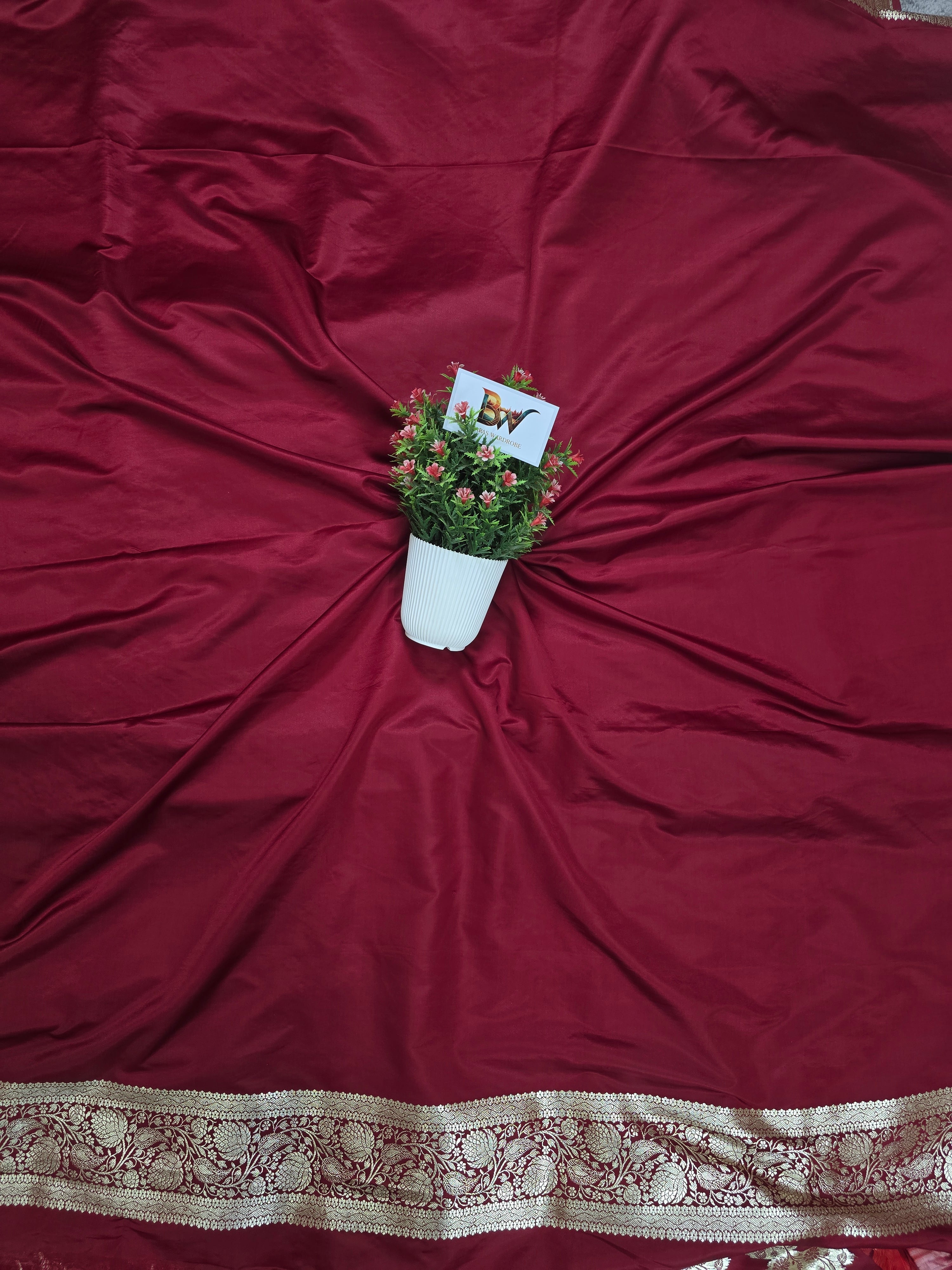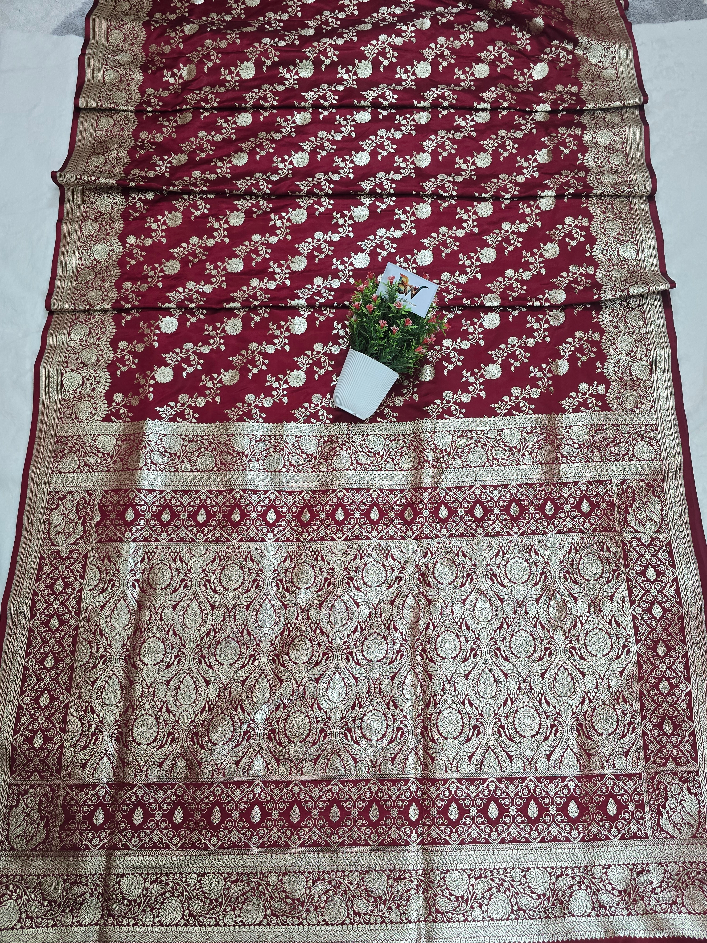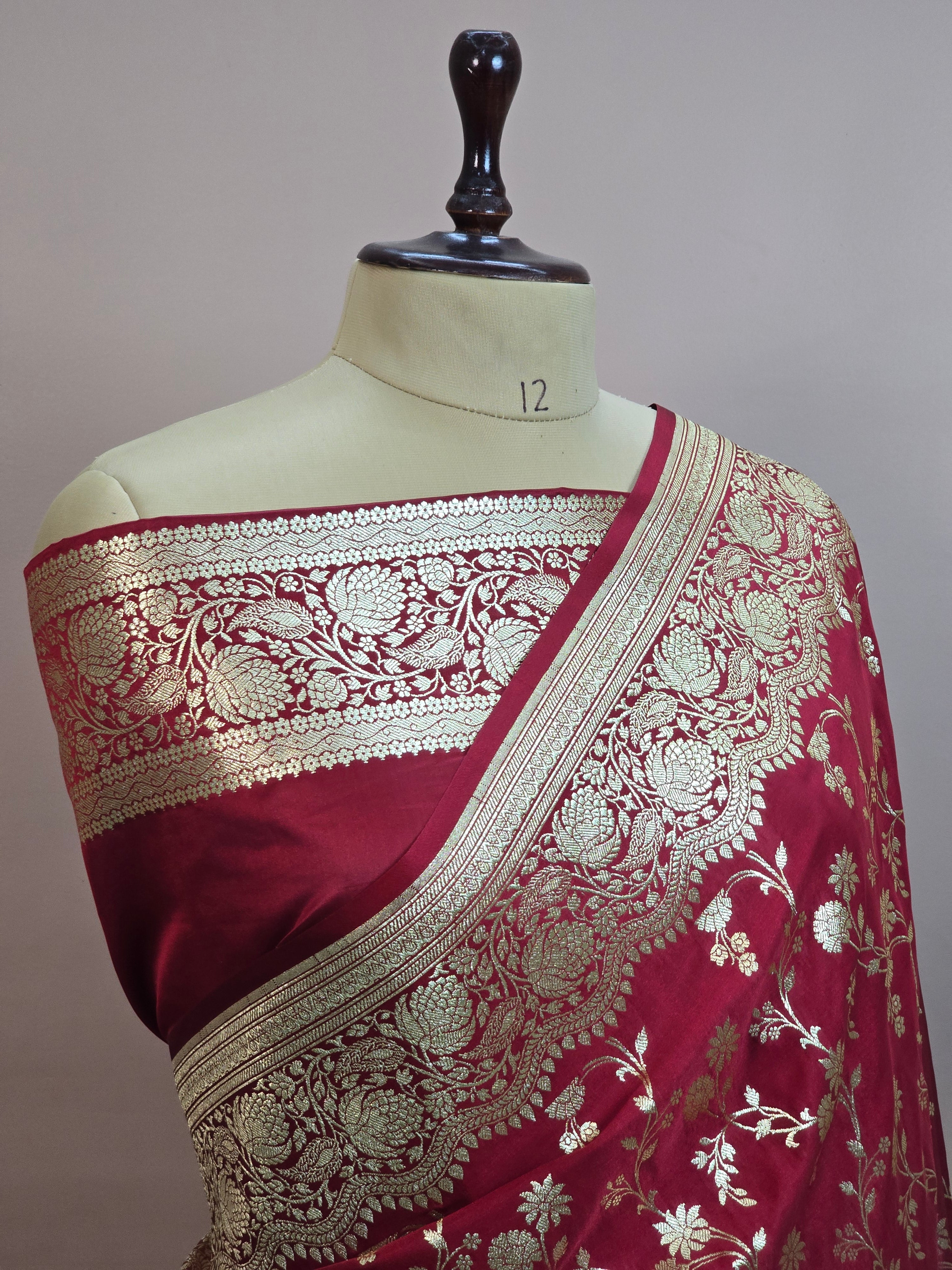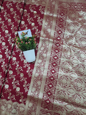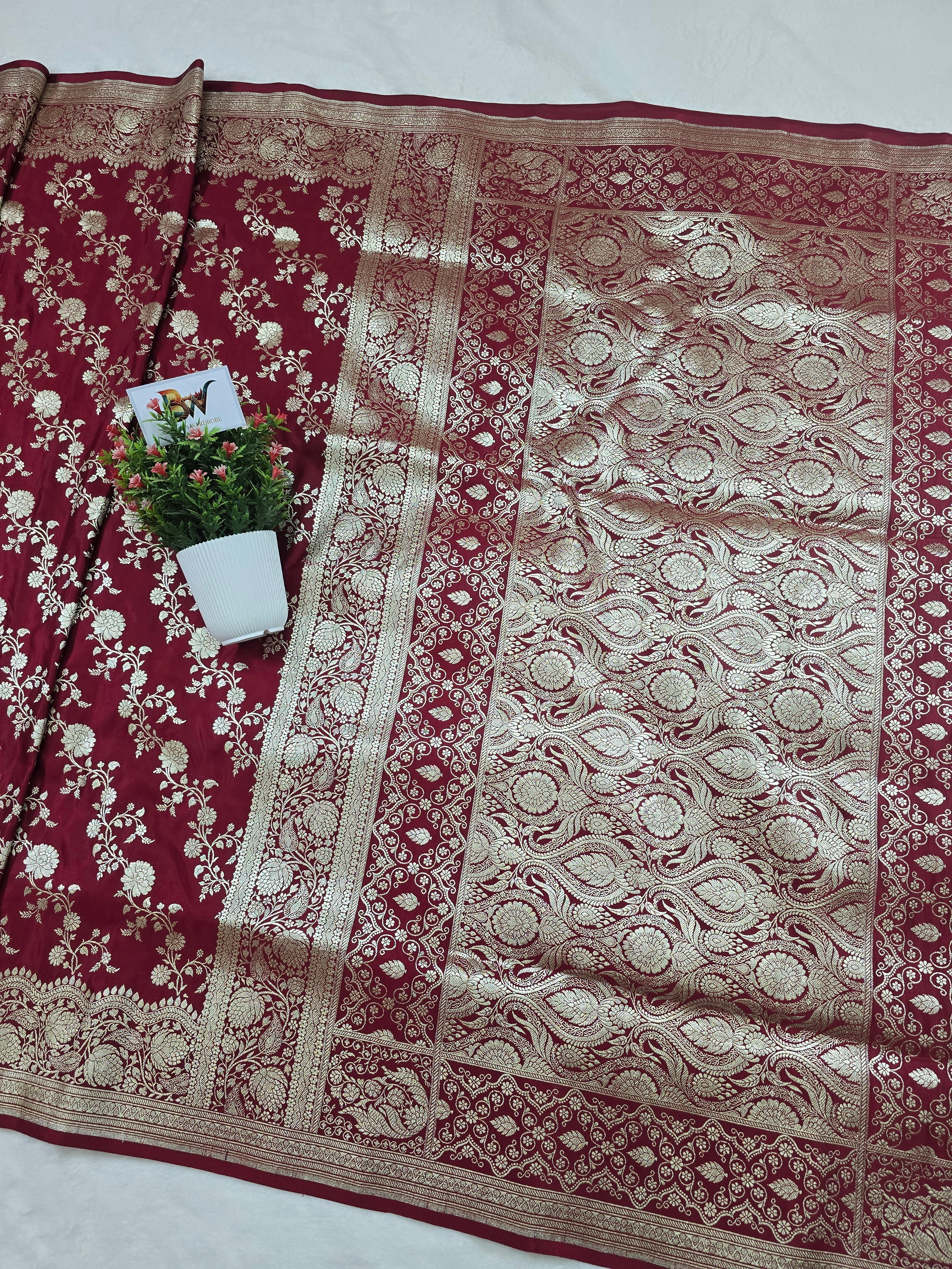 Malai Katan Satin Silk Banarasi Saree - Maroon Body with All Over Jaal