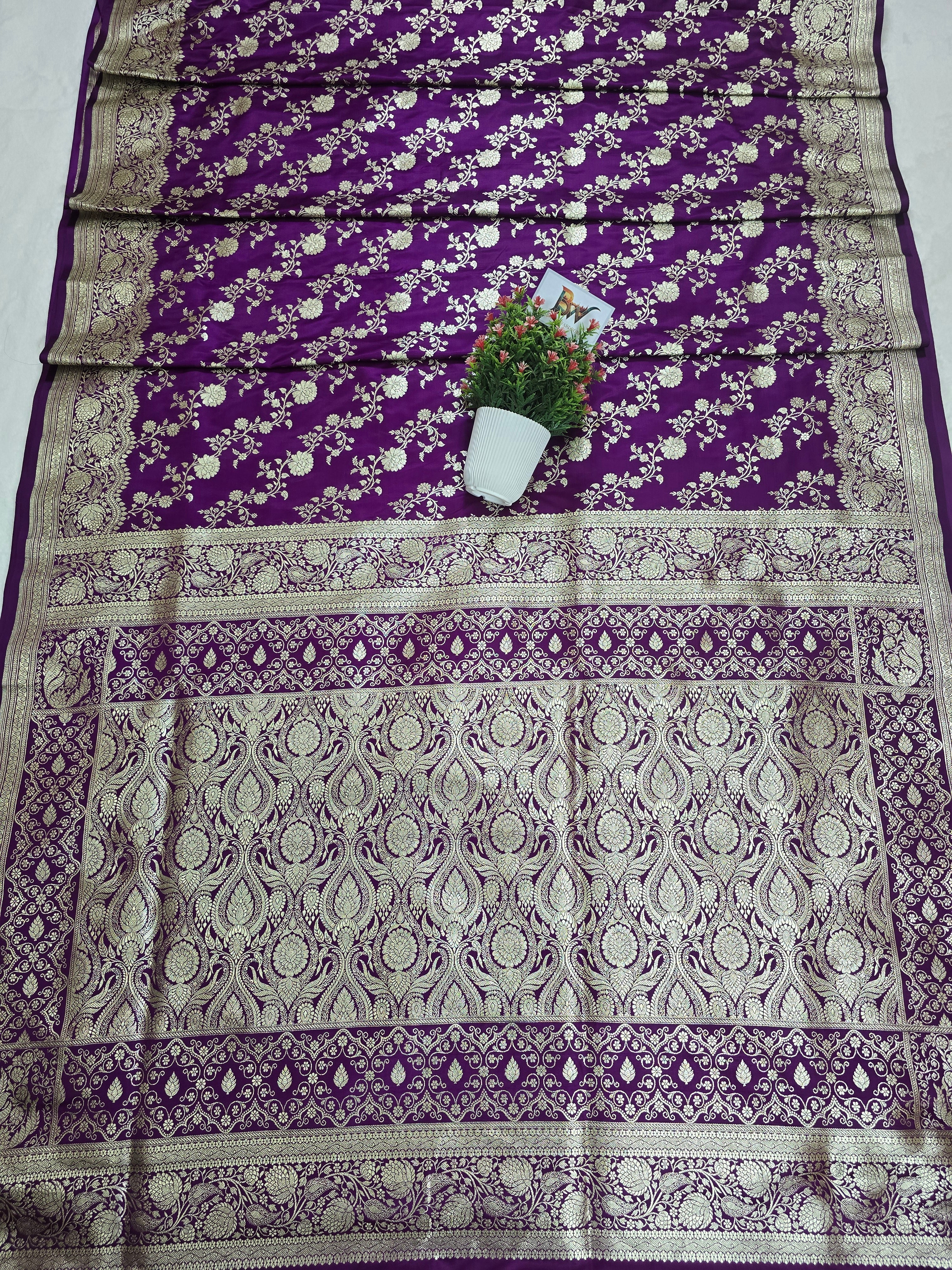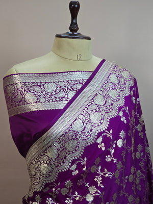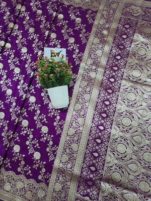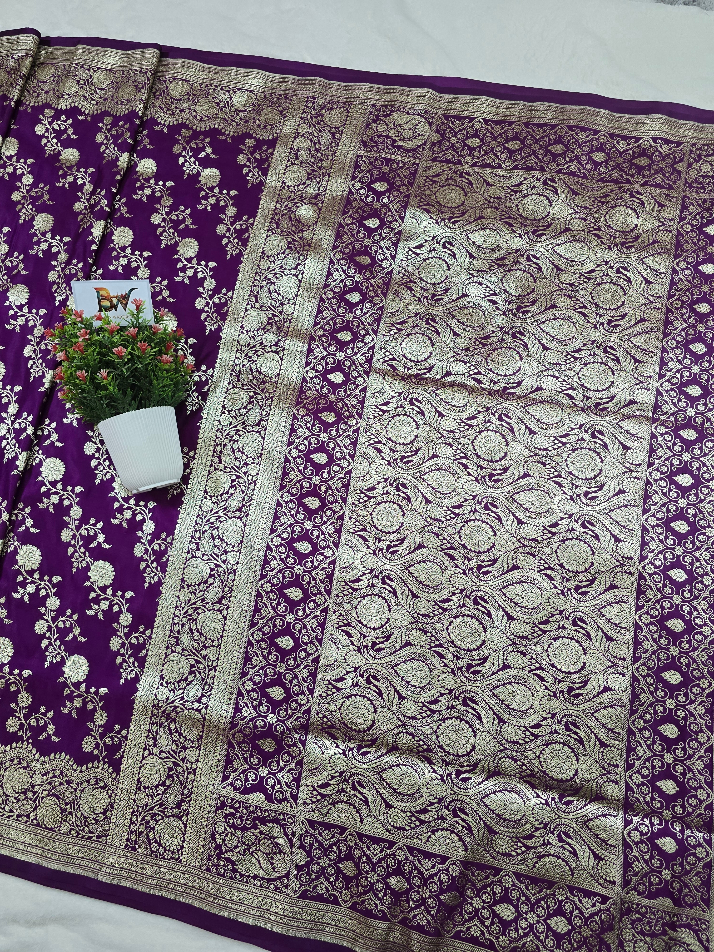 Malai Katan Satin Silk Banarasi Saree - Purple Body with All Over Jaal