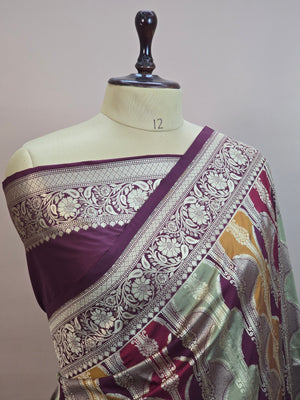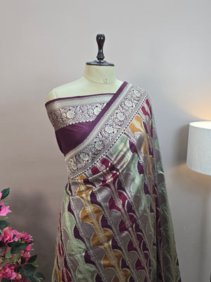 • Work: Floral Zari Jaal Border & Traditional Banarasi Detailing