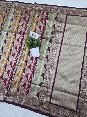 Home Pauri Katan Silk Rangkaat Banarasi Saree – Multicolor Weave with Floral Jaal Border
