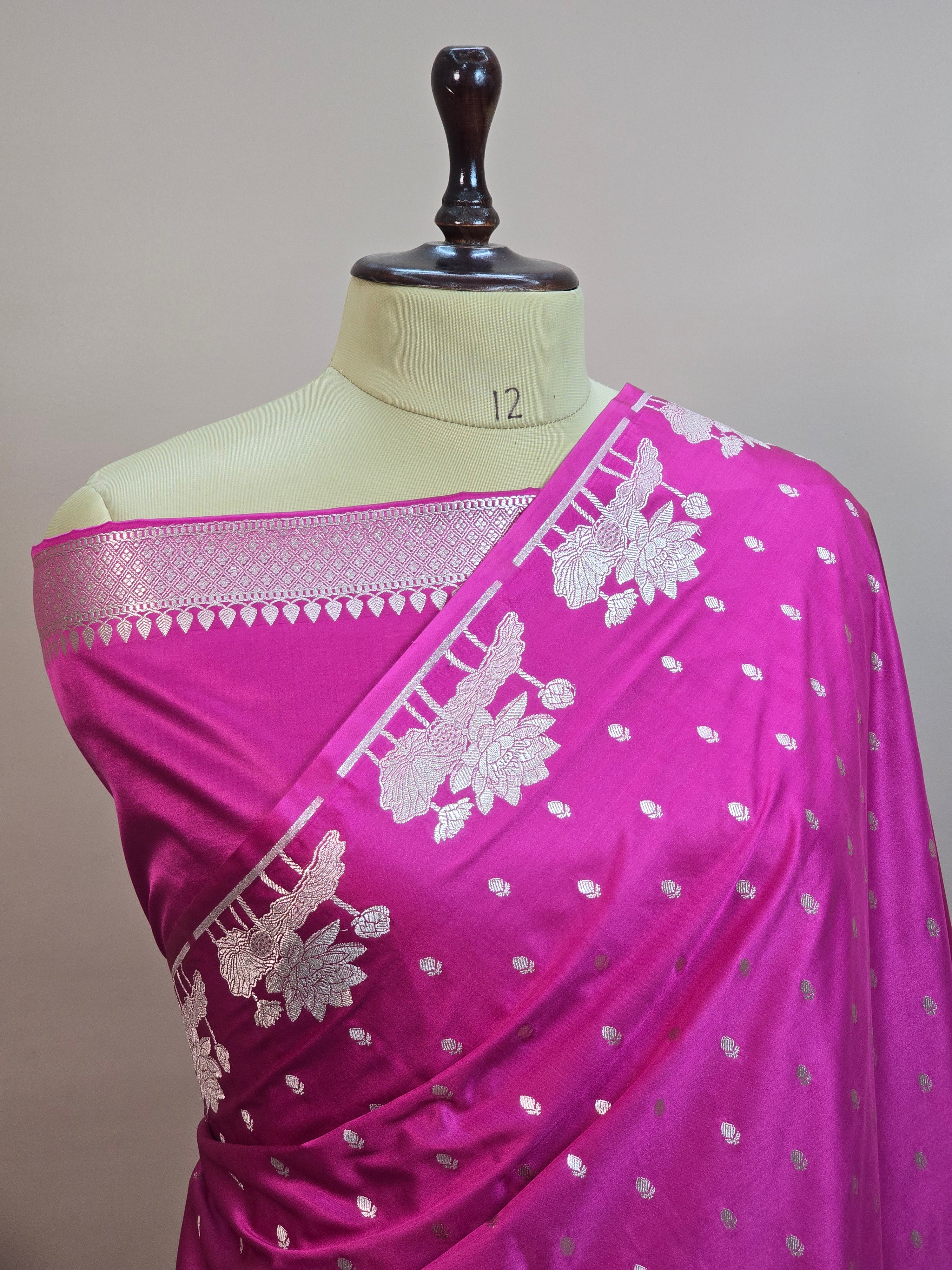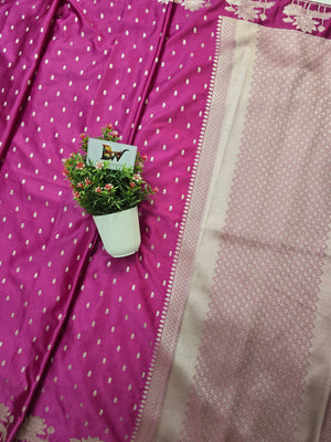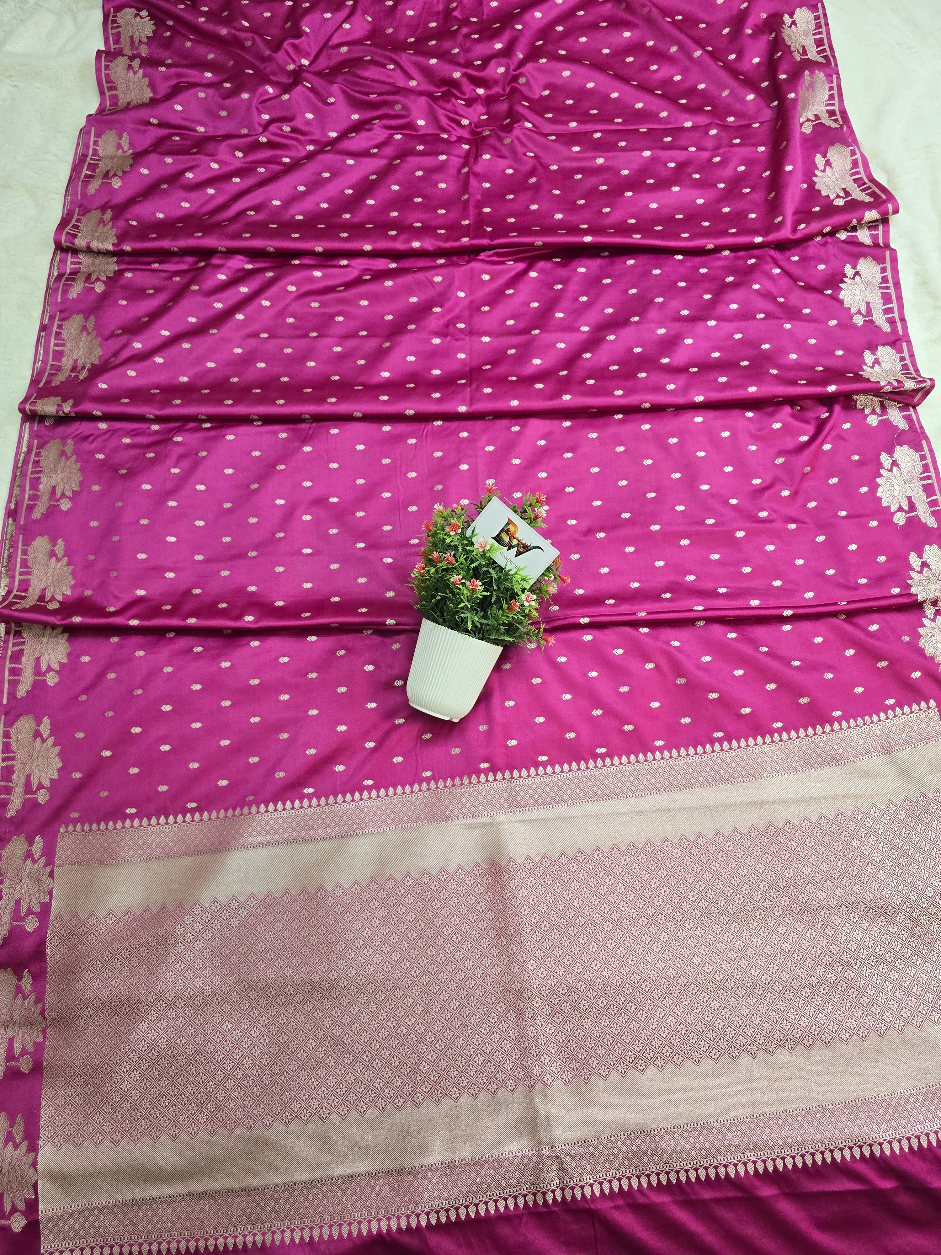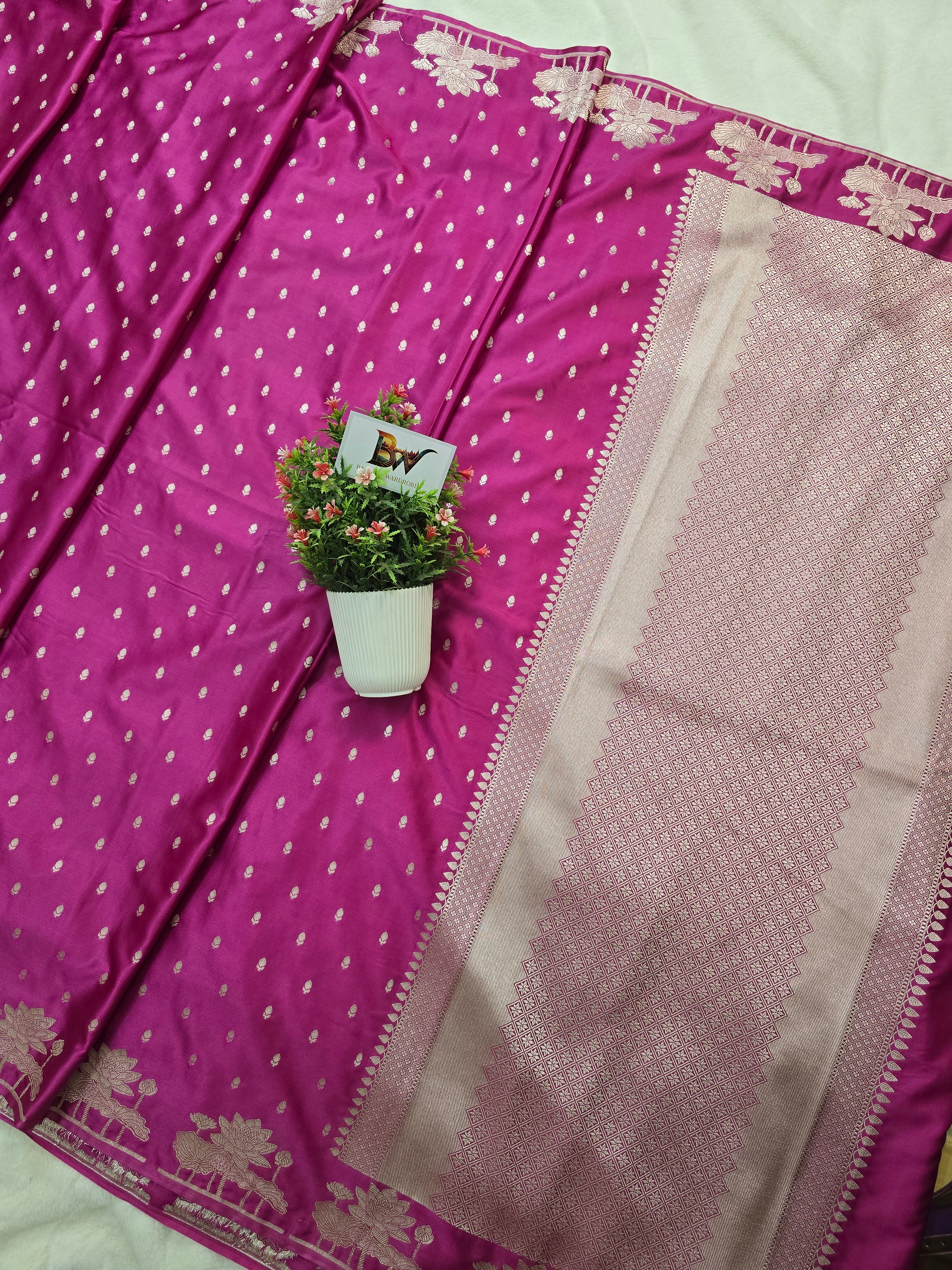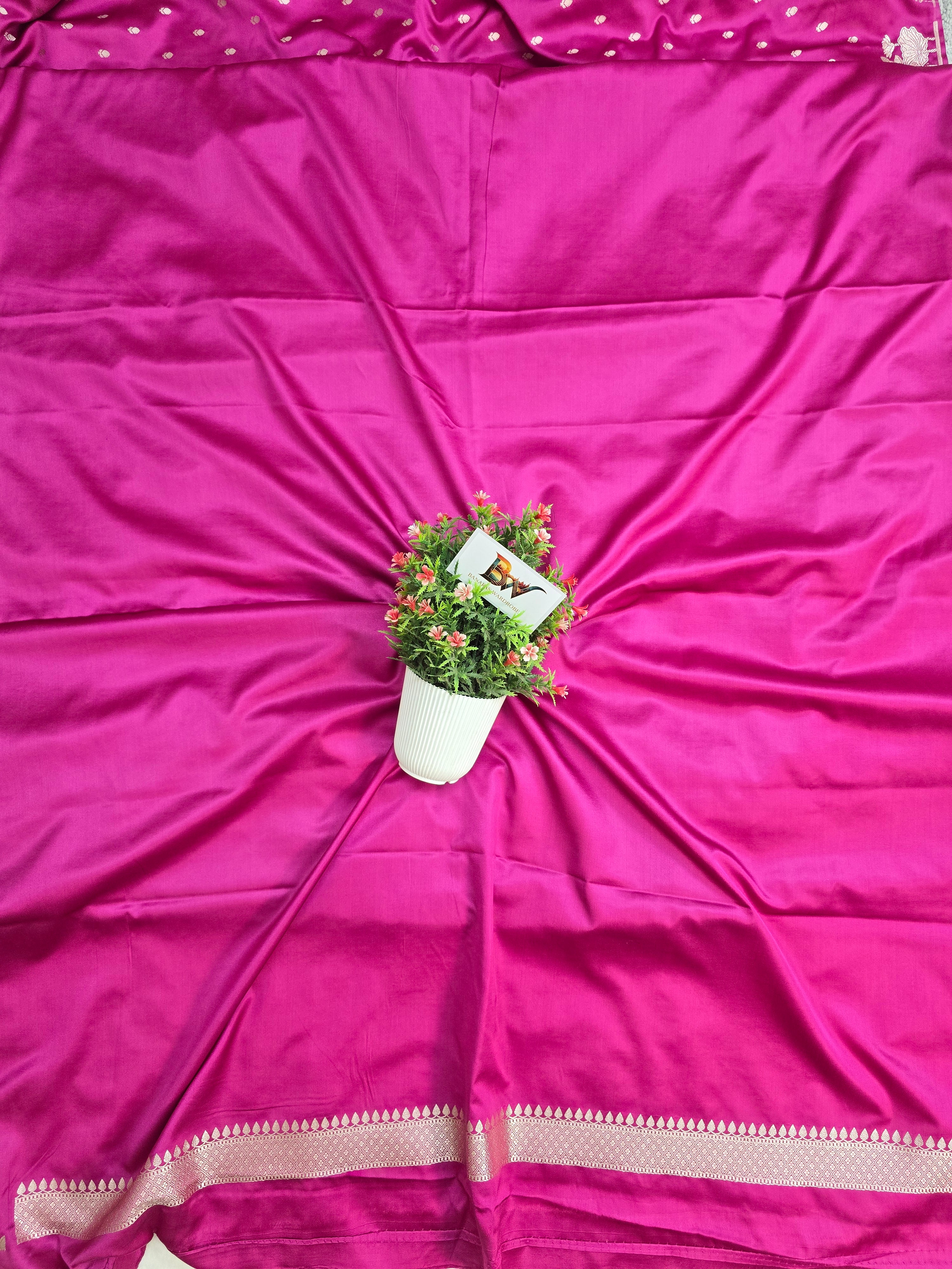 Mashru Katan Silk Banarasi Saree Open Border - Rani Pink Body with All Over Booti