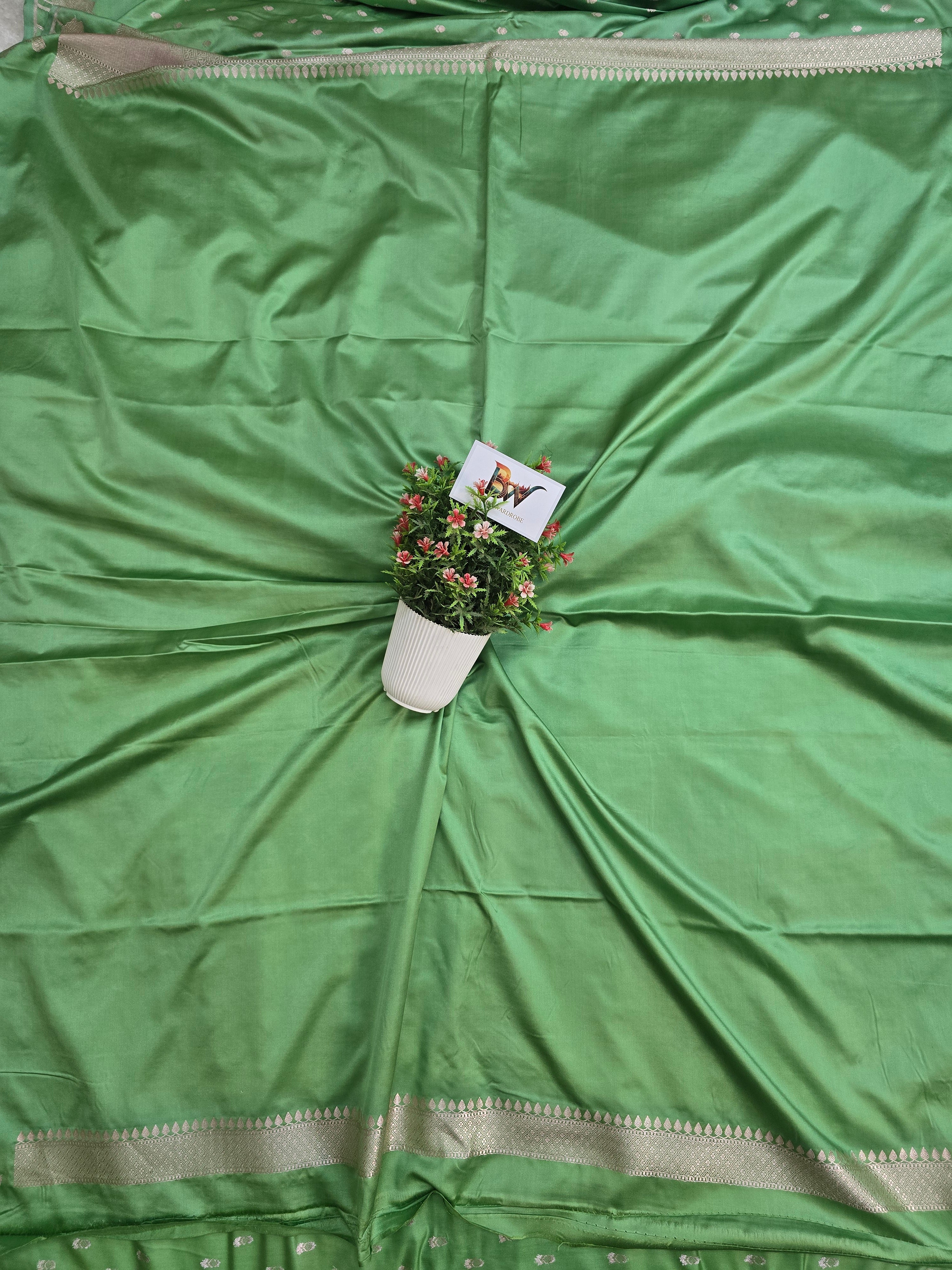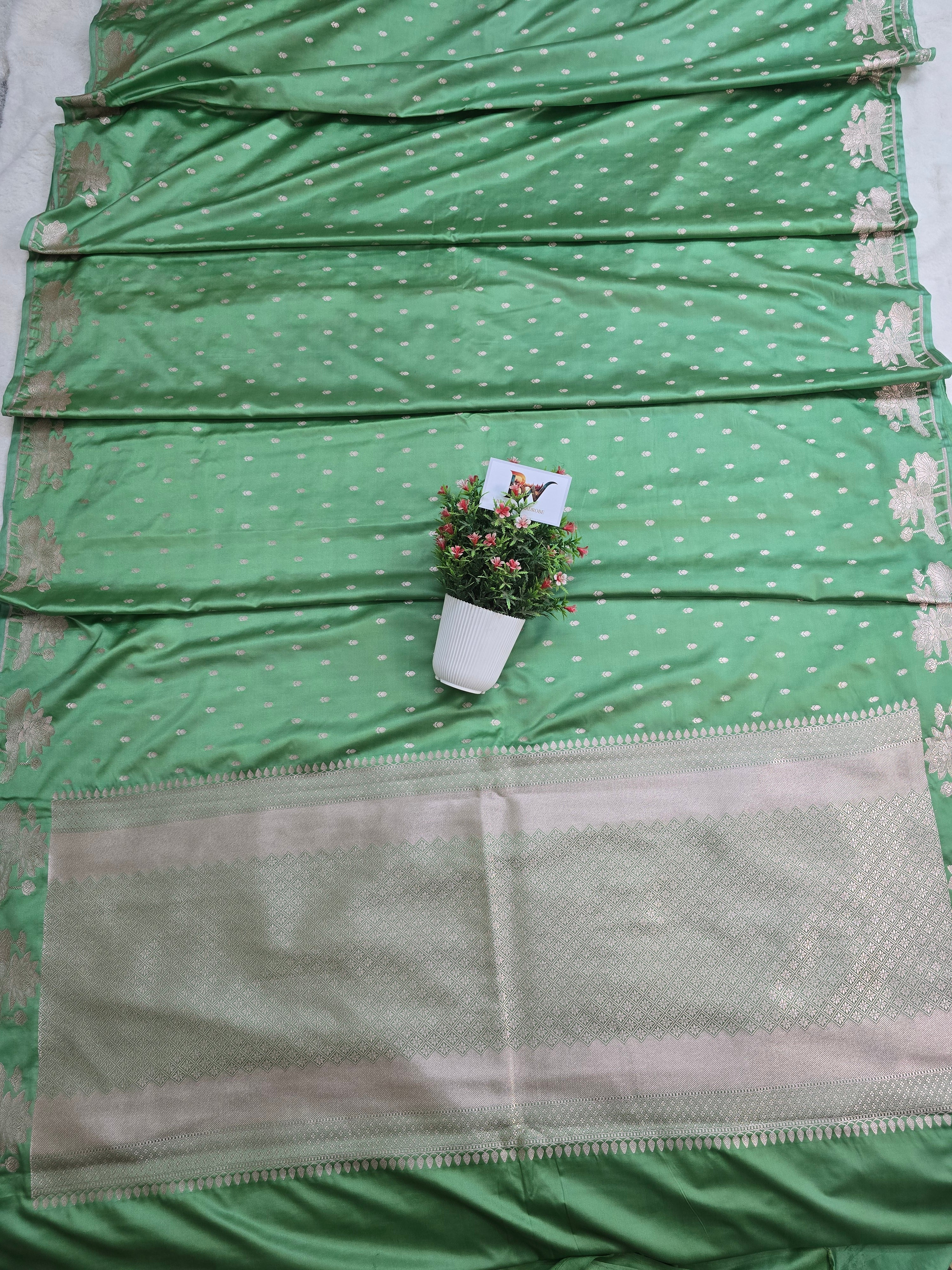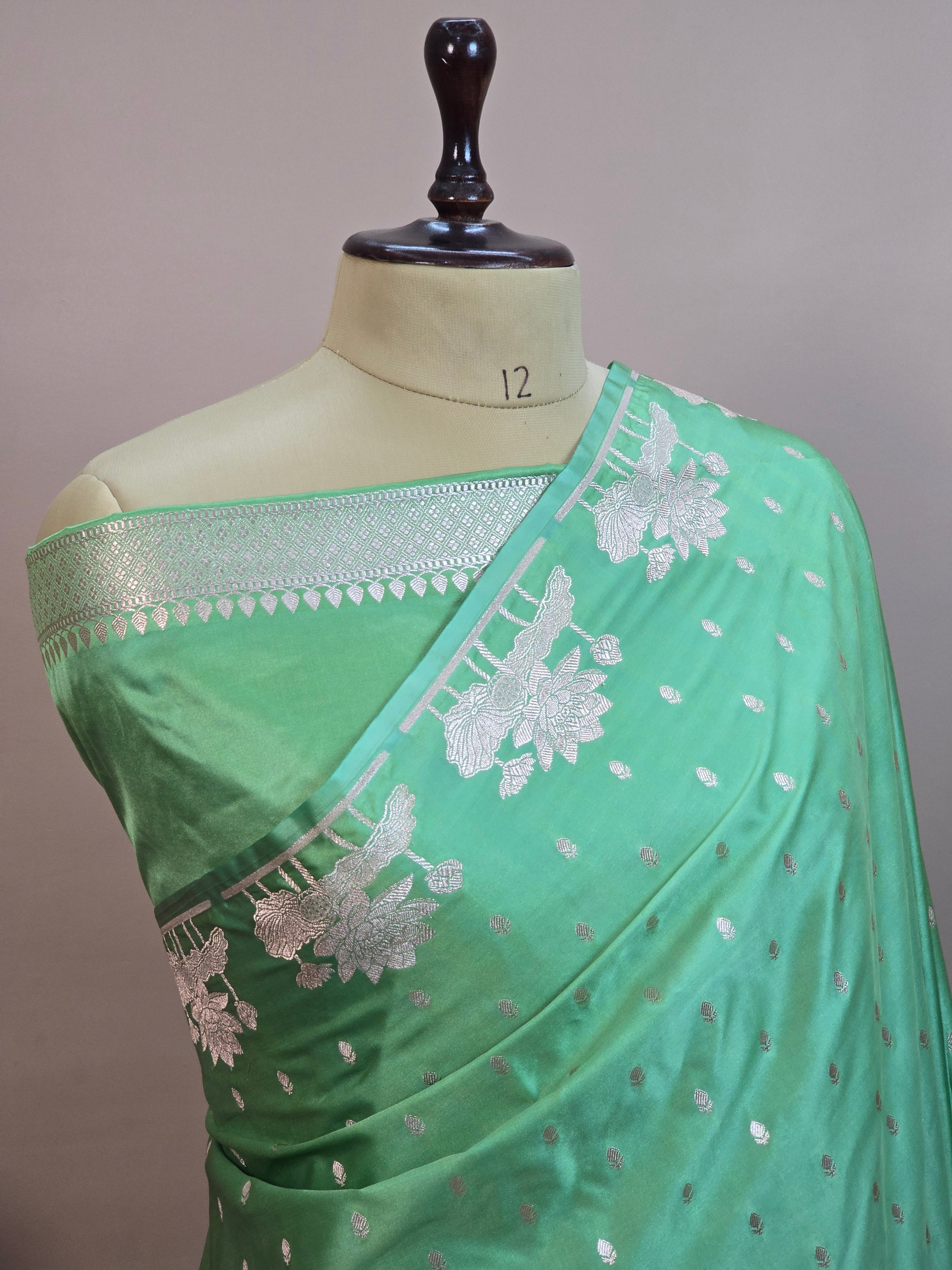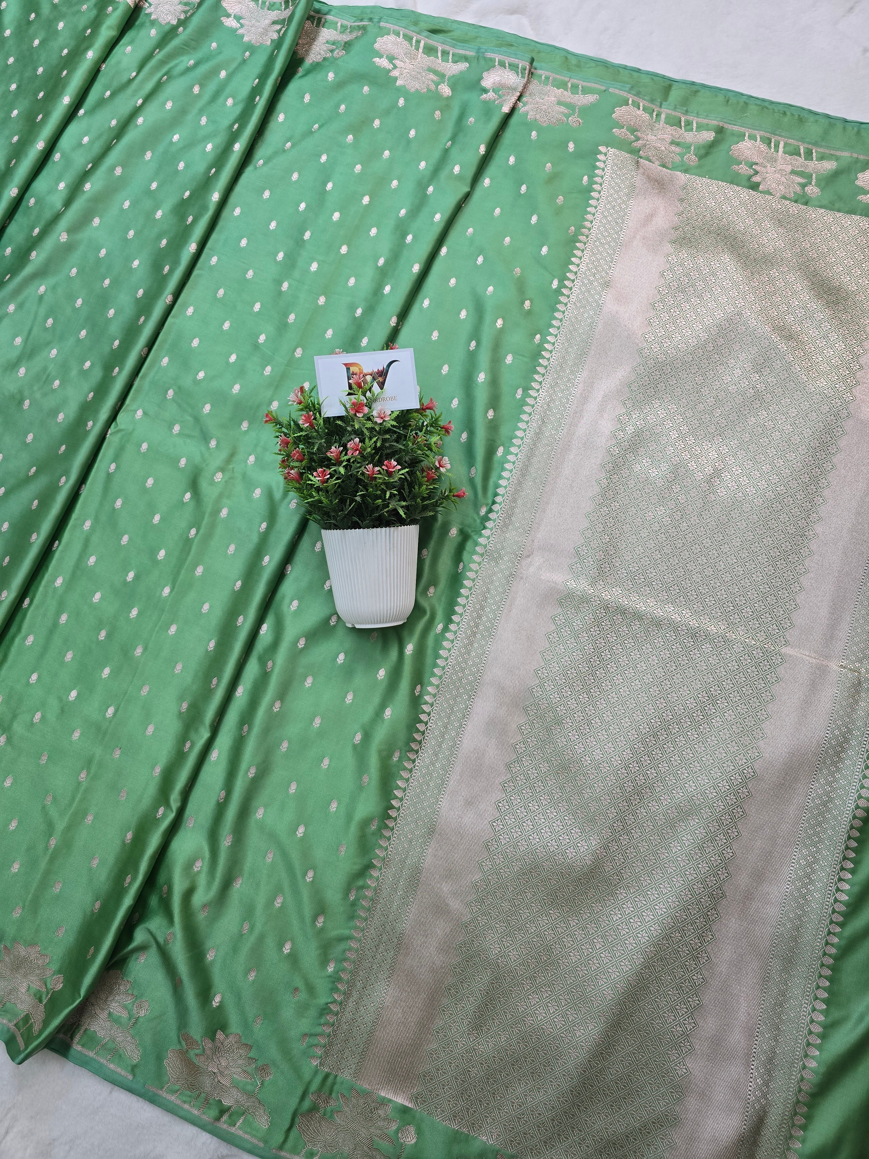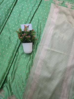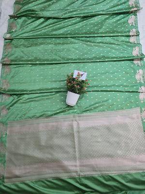 Mashru Katan Silk Banarasi Saree Open Border - Sea GreenBody with All Over Booti