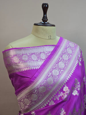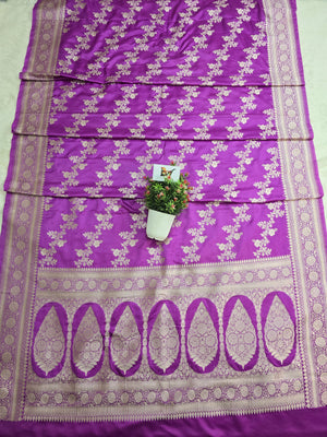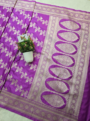 Mashru Katan Silk Banarasi Saree – Purple Body with All Over Silver Zari Jaal