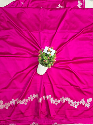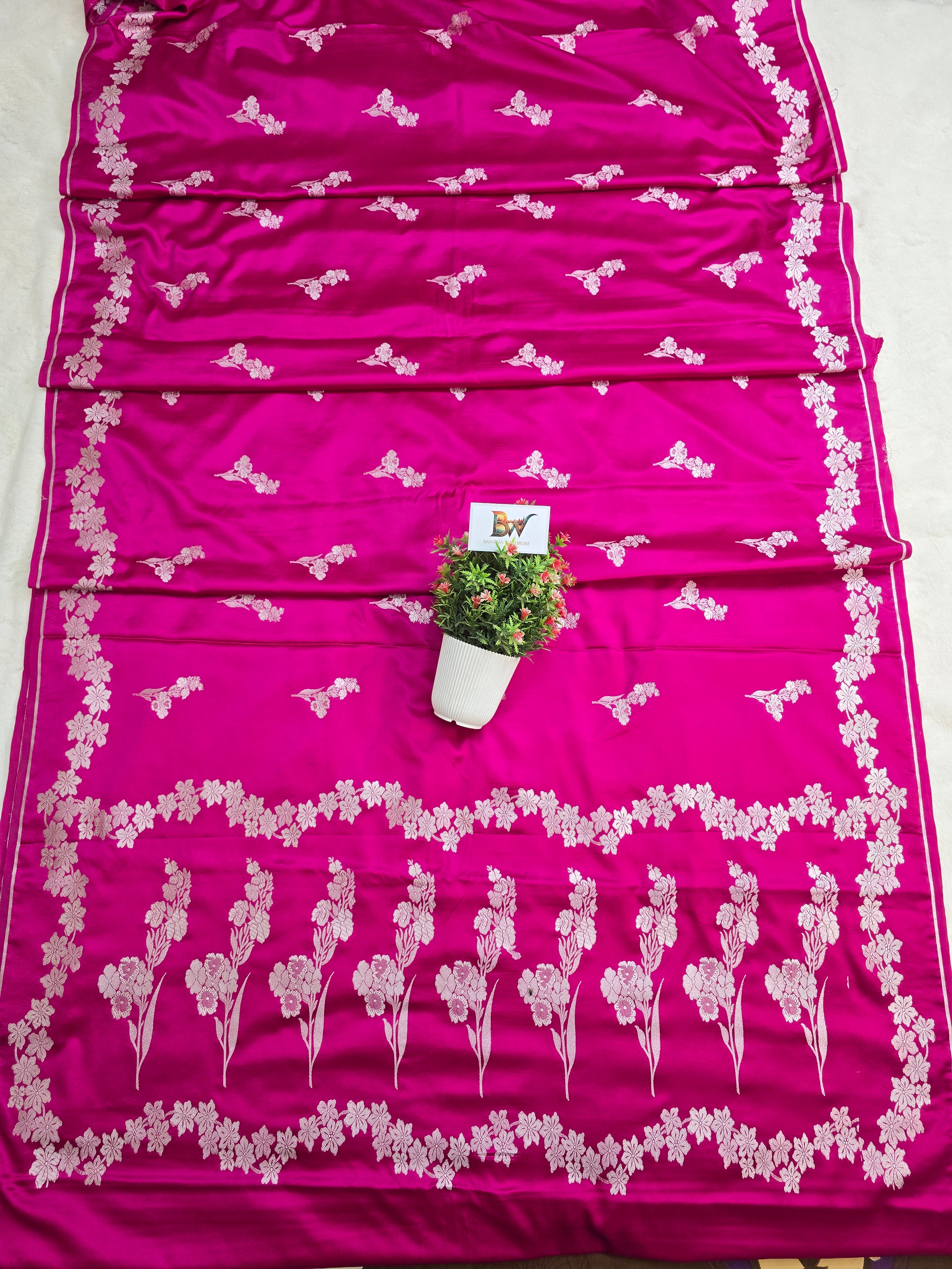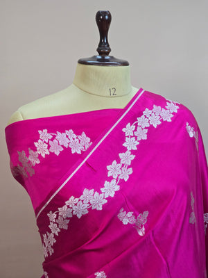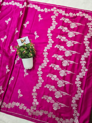 Mashru Katan Silk Banarasi Saree Open Border - Rani Pink Body with Flower Bootas