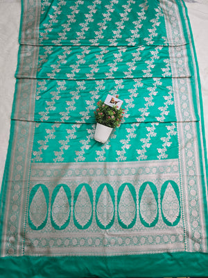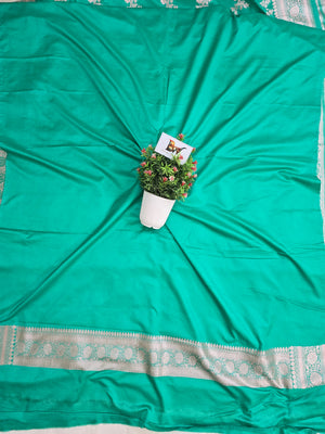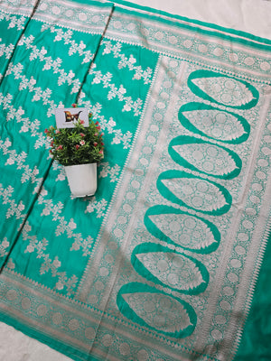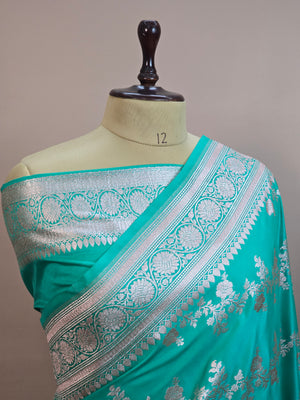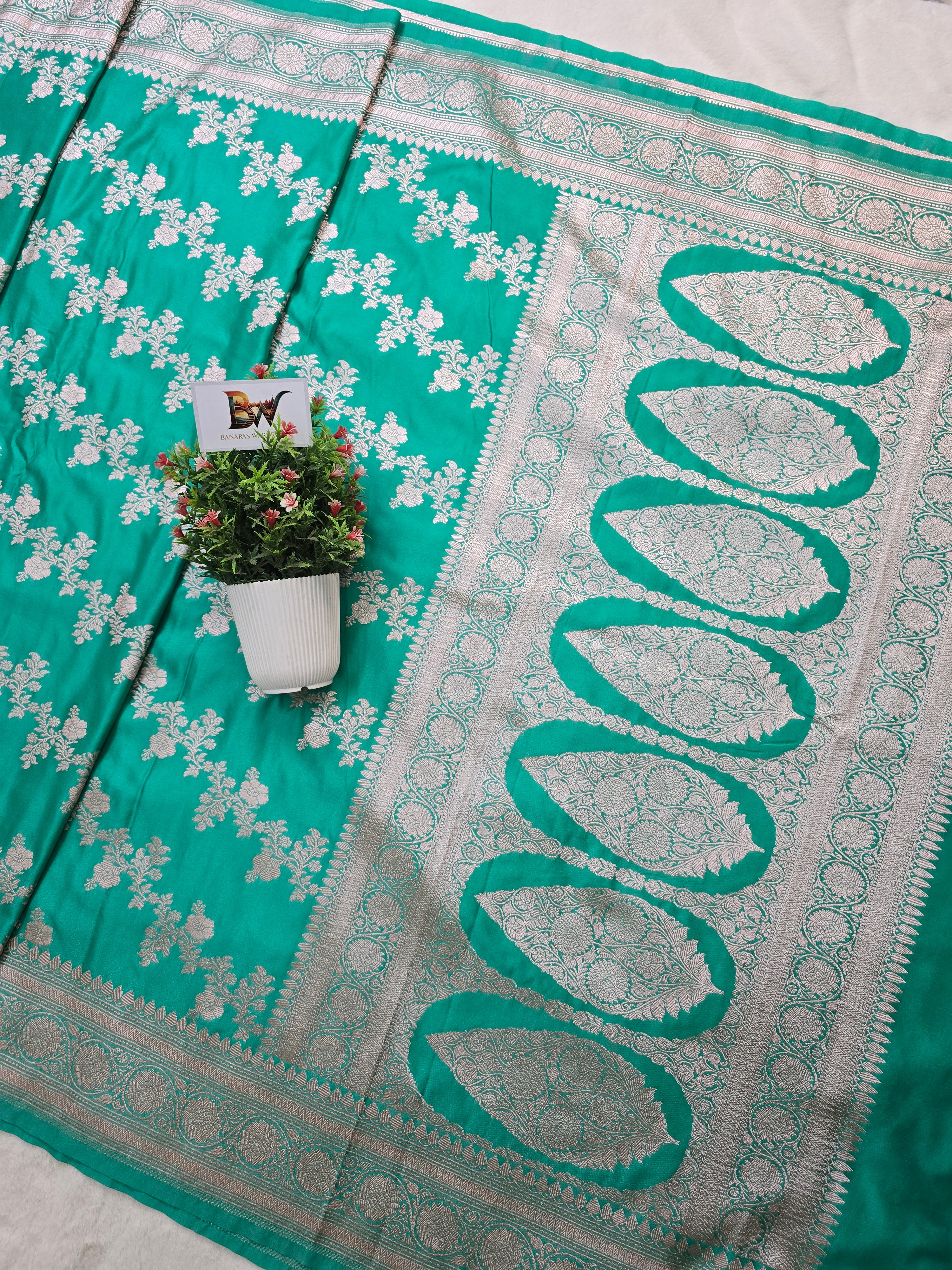 Mashru Katan Silk Banarasi Saree – Sea Green Body with All Over Silver Zari Jaal