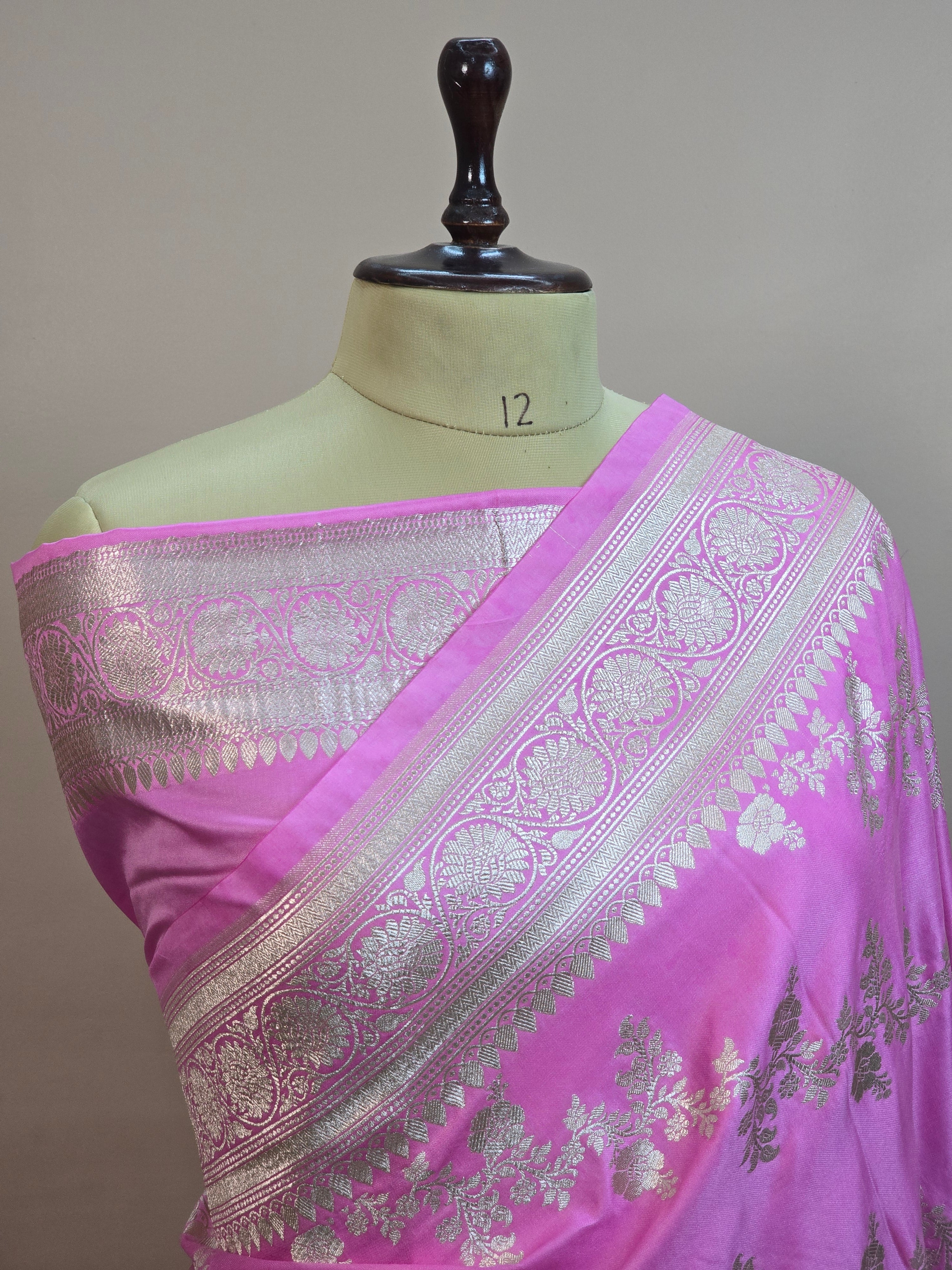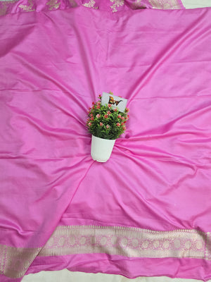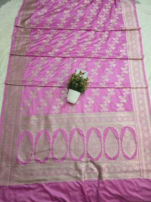 Mashru Katan Silk Banarasi Saree – Baby Pink Body with All Over Silver Zari Jaal