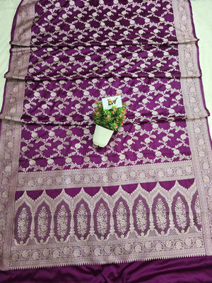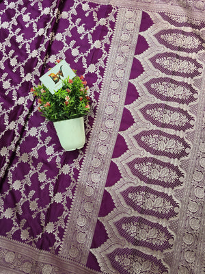 Mashru Katan Silk Banarasi Saree - Purple Body with Mashru Katan Silk Banarasi Saree - Gold Body with Silver Zari All Over Jaal