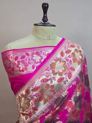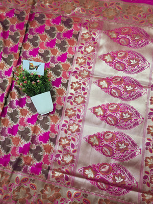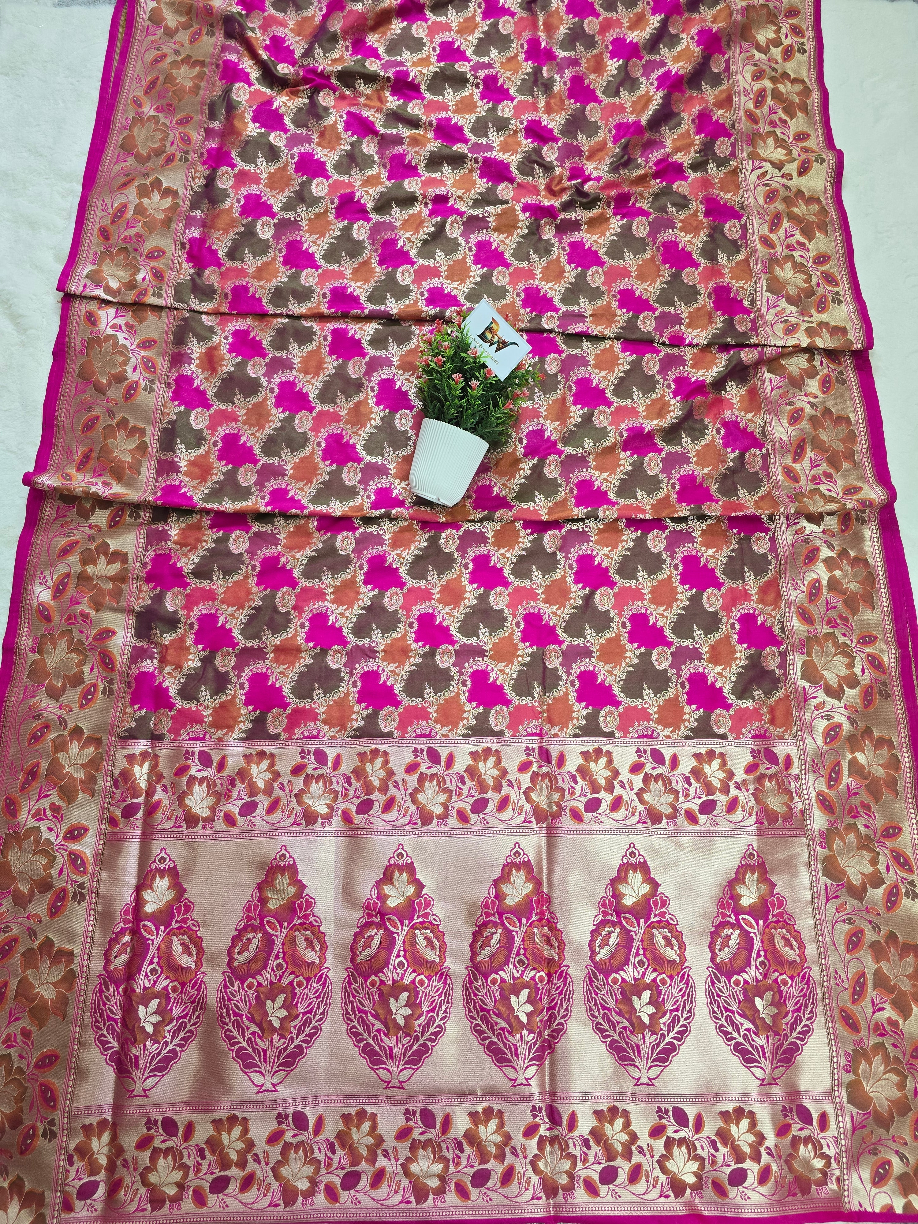 Pauri Katan Silk Rangkaat Banarasi Saree – Multicolor Jaal Weave with Floral Meenakari Border
