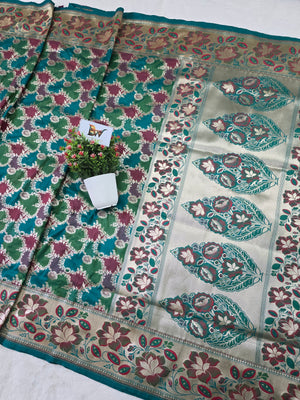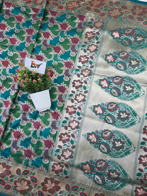 • Color: Teal base with multicolor rangkaat pattern