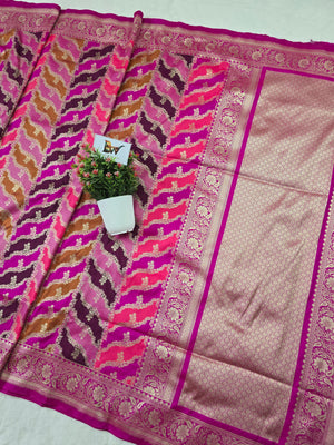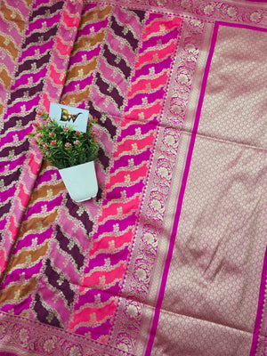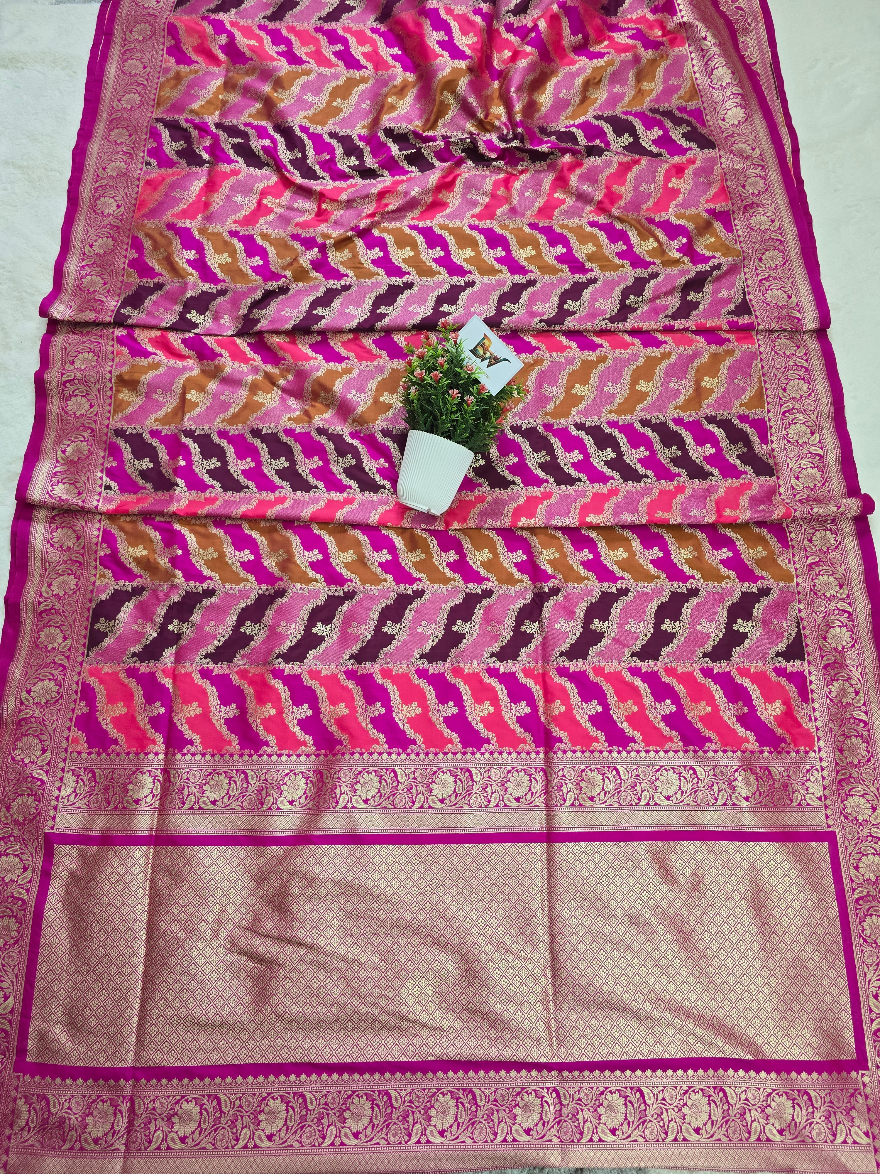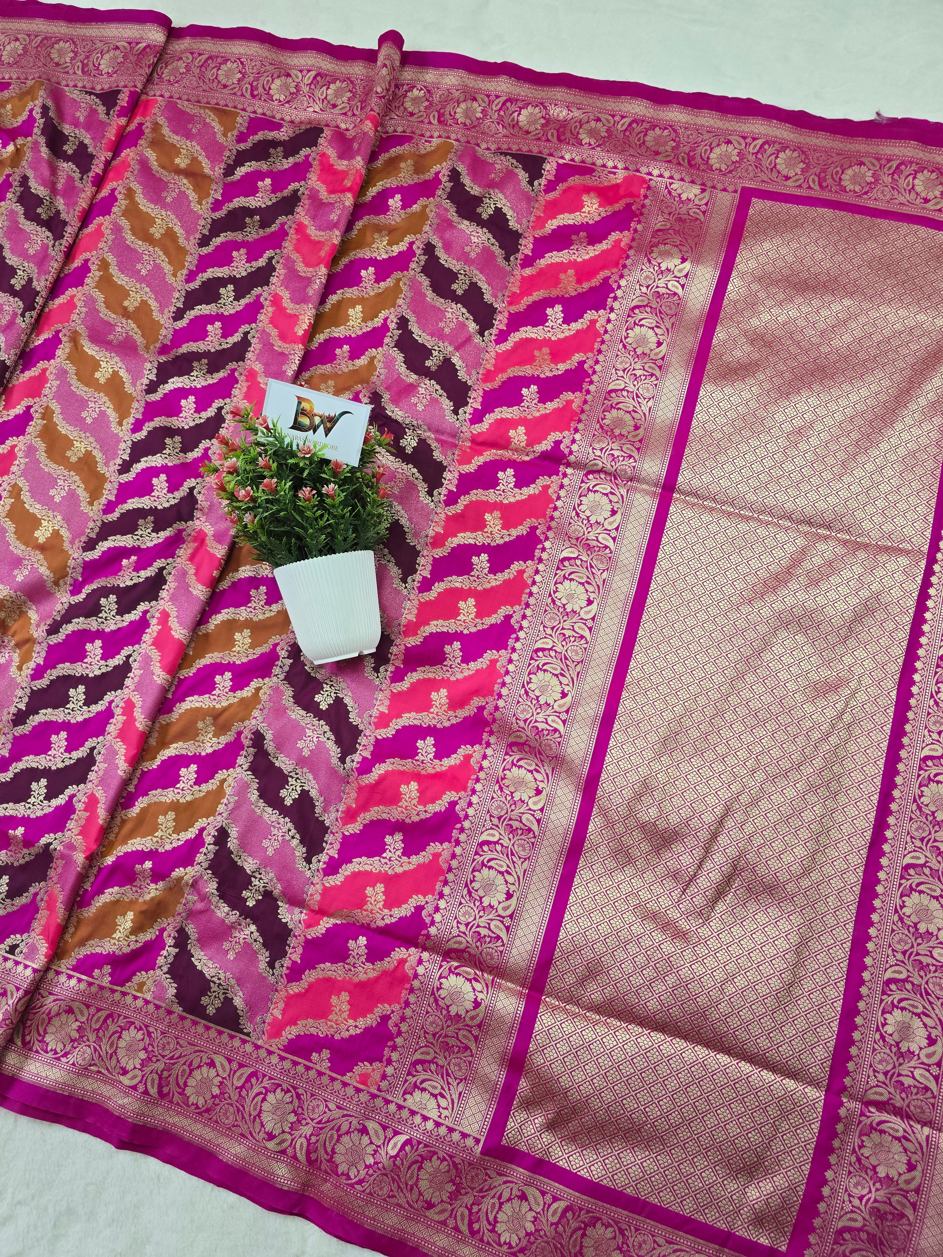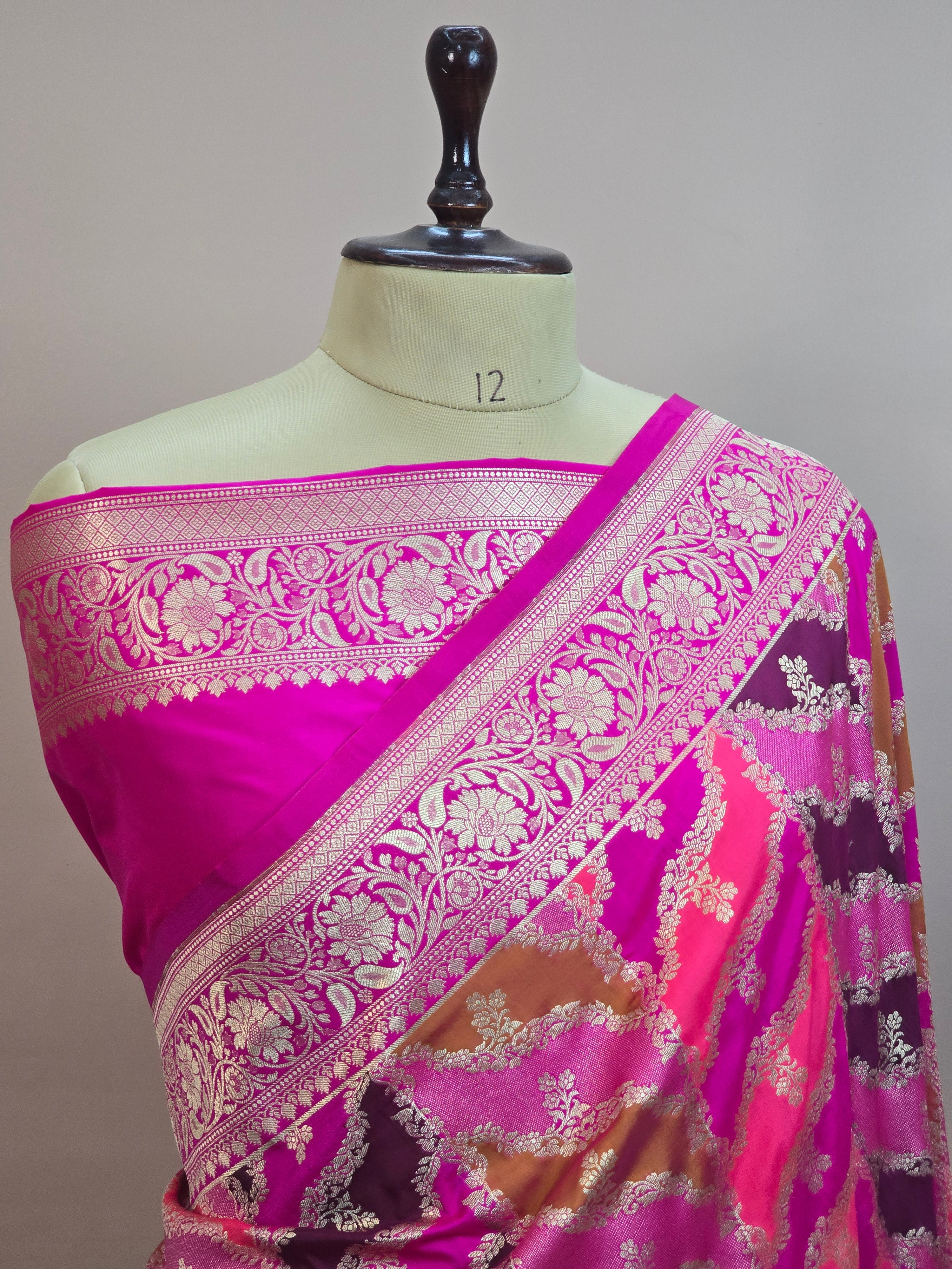 Pauri Katan Silk Rangkaat Jaal Banarasi Saree – Multicolor Weave with Zari Floral Border
