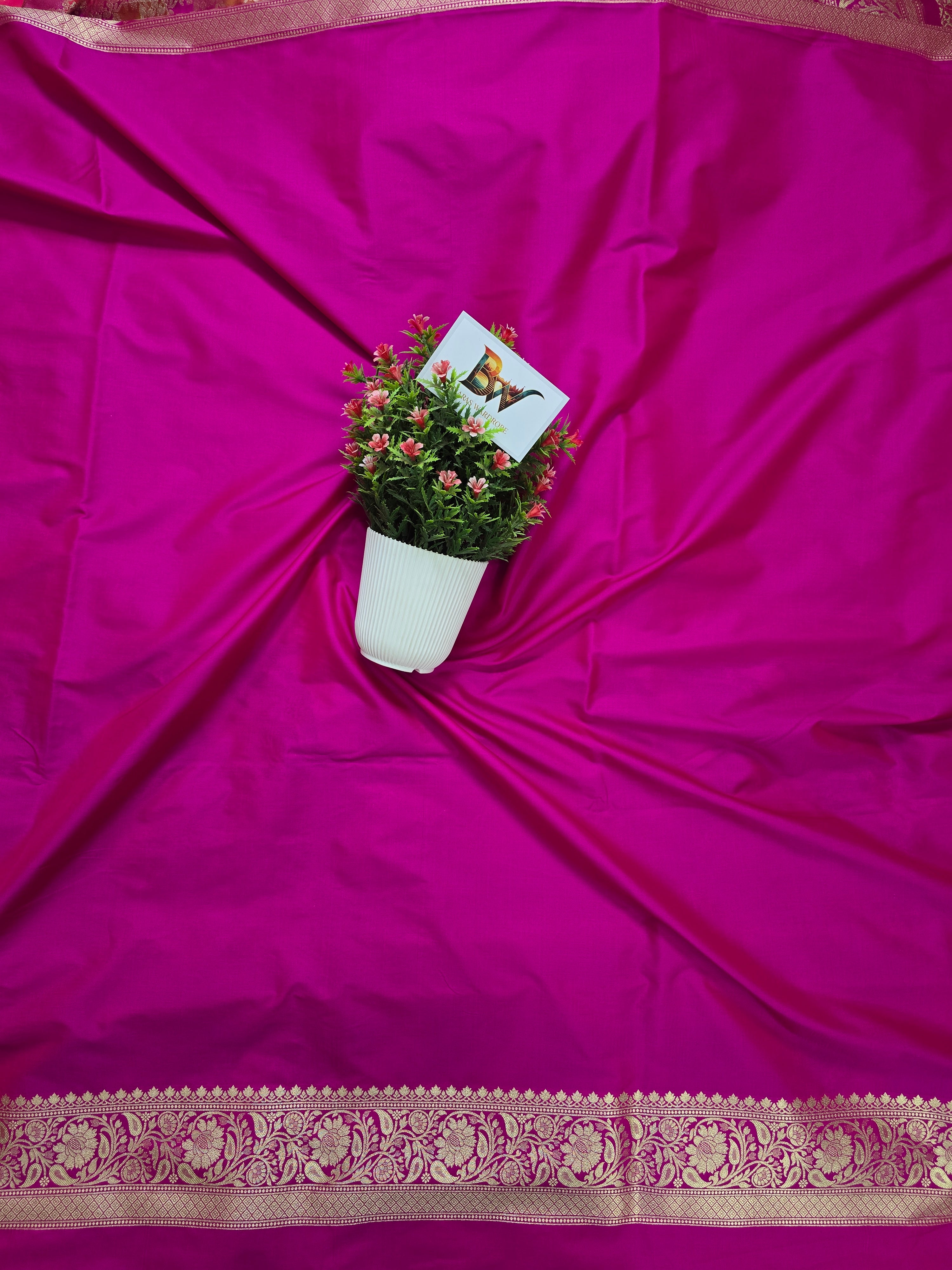 The highlight of the saree is its intricately woven zari floral border, adding a timeless Banarasi charm. Made from premium katan silk, it drapes gracefully with a soft, smooth, and lustrous finish—perfect for weddings, parties, festive occasions, and grand celebrations.
