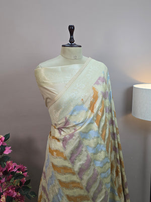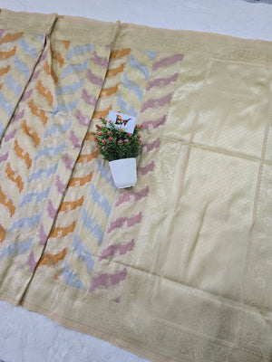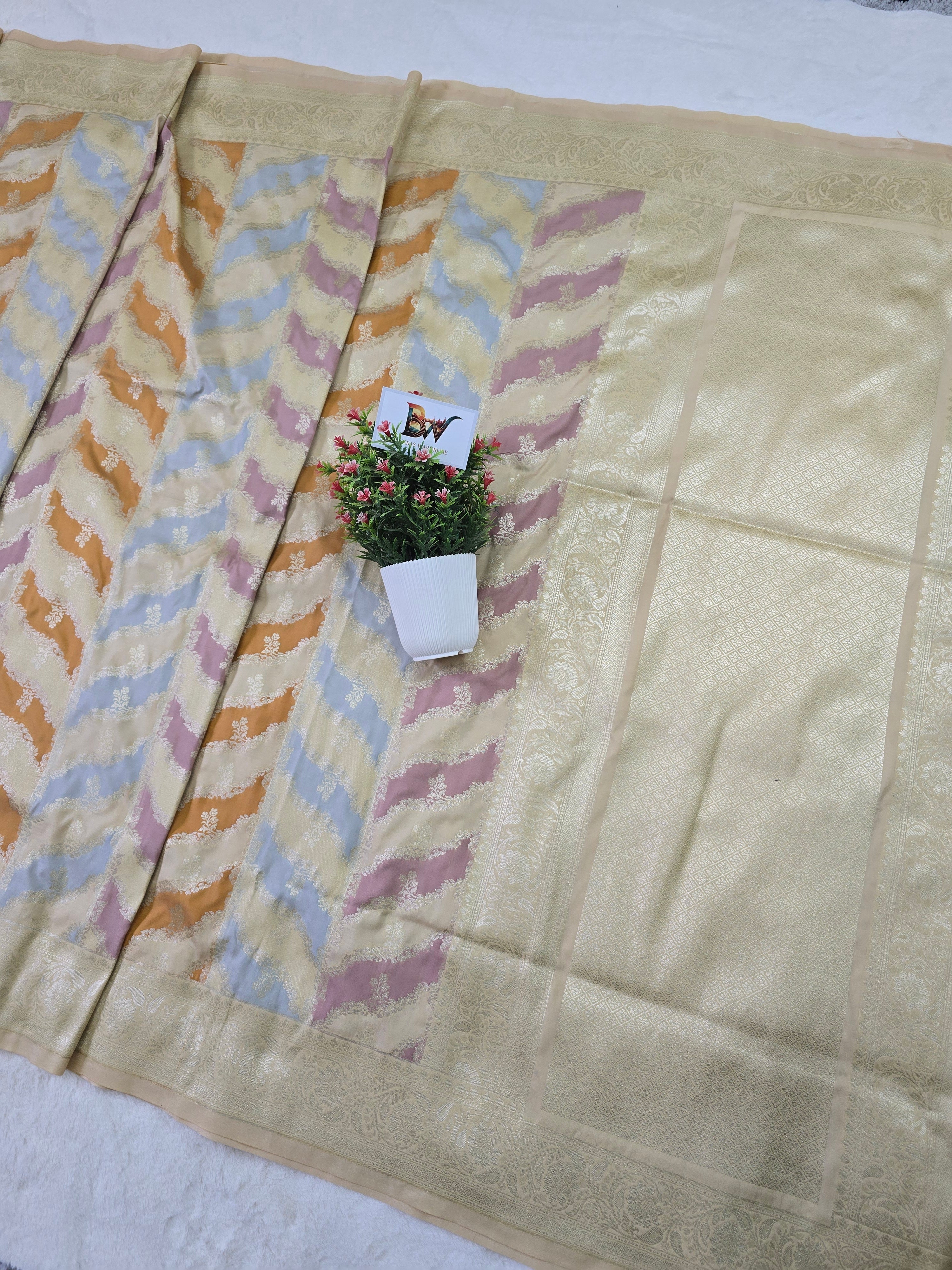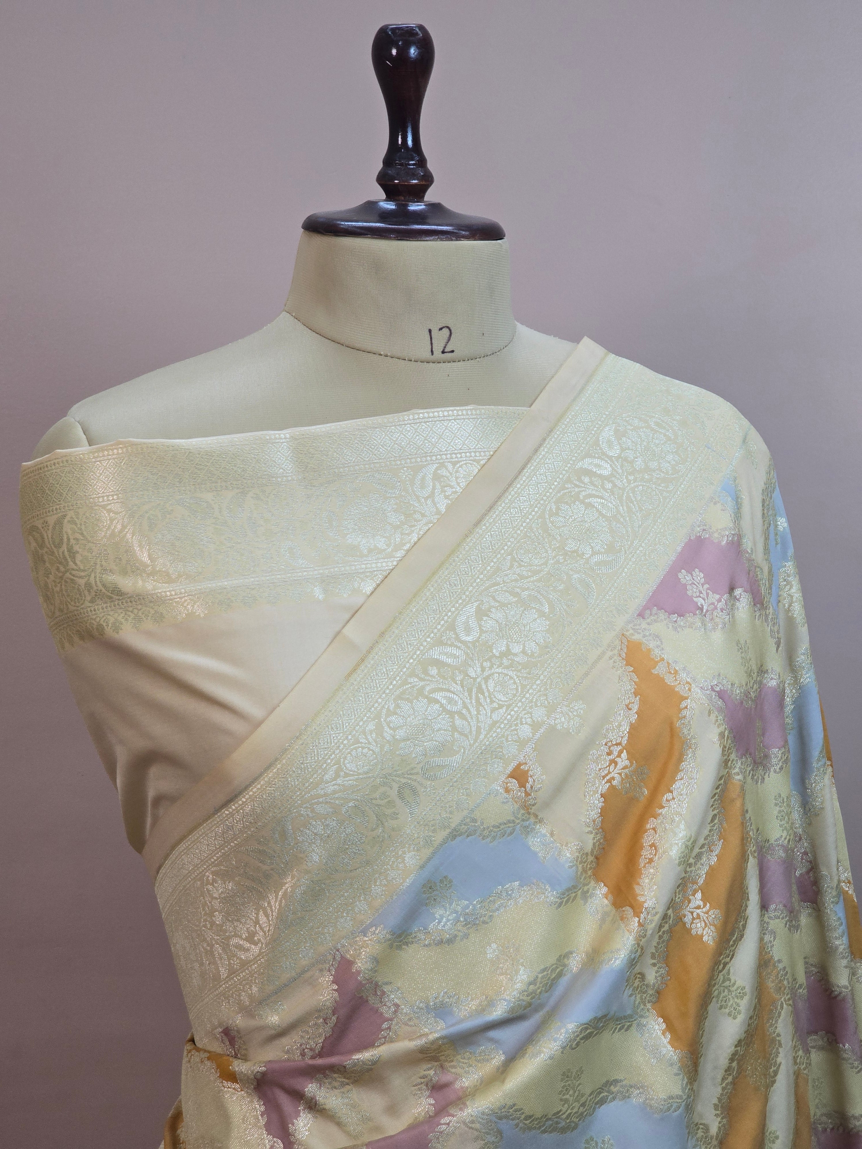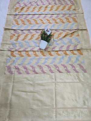 Pauri Katan Silk Rangkaat Jaal Banarasi Saree – Multicolor Weave with Zari Floral Border