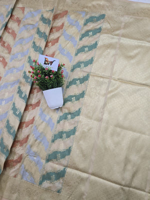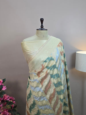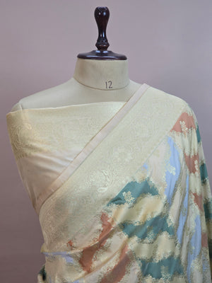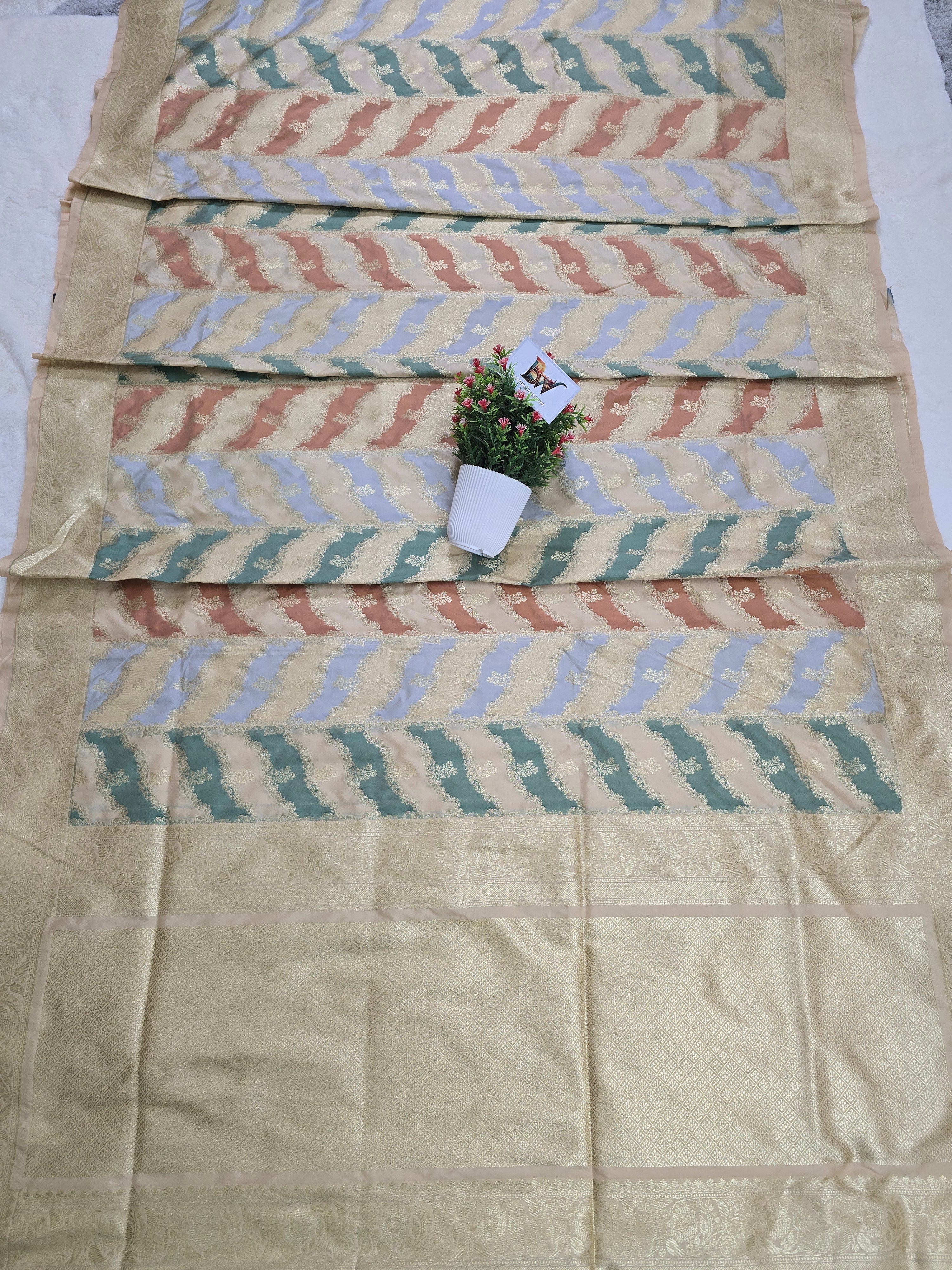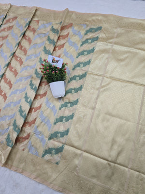 Pauri Katan Silk Rangkaat Jaal Banarasi Saree – Multicolor Weave with Zari Floral Border
