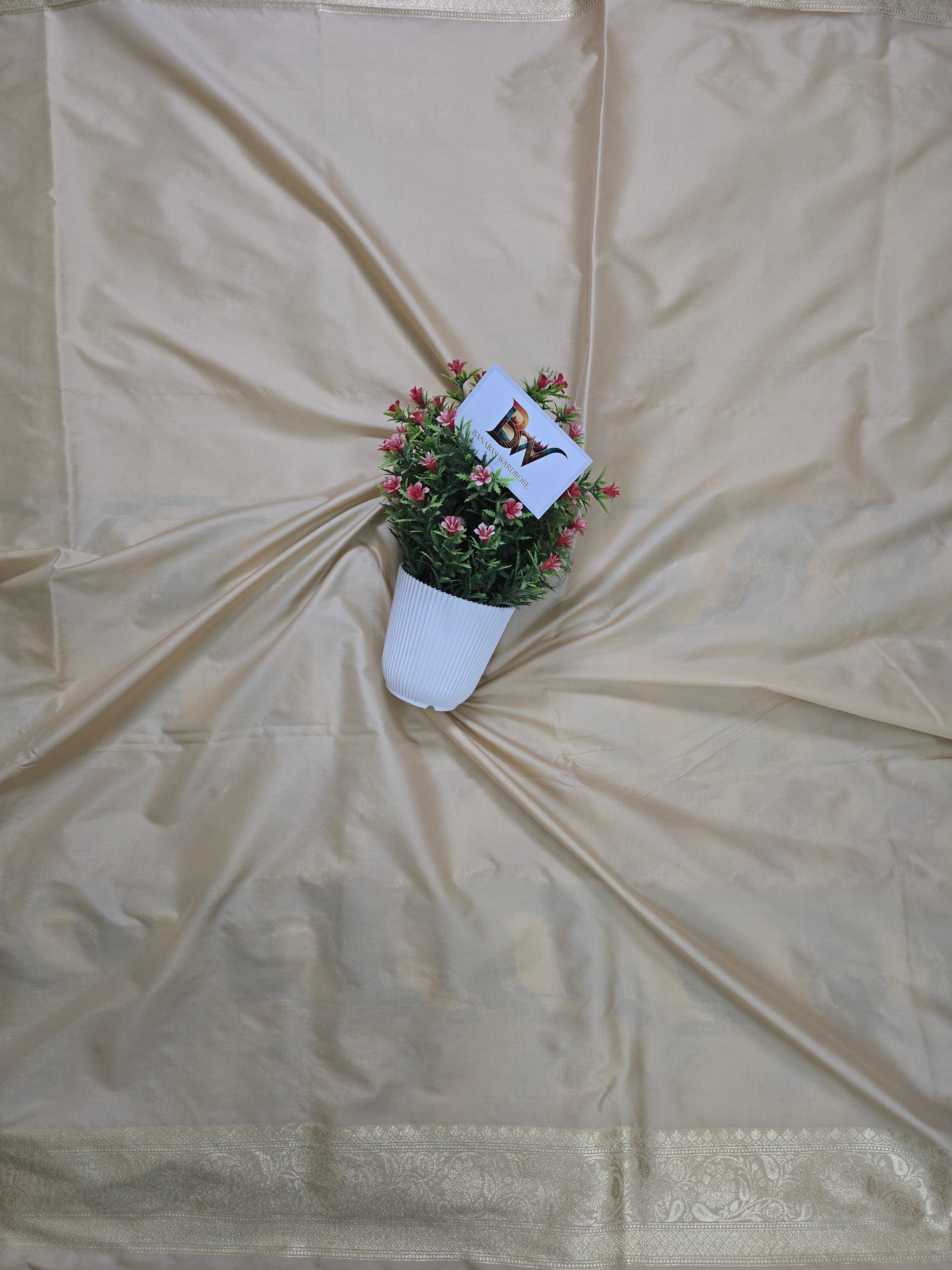 The highlight of the saree is its intricately woven zari floral border, adding a timeless Banarasi charm. Made from premium katan silk, it drapes gracefully with a soft, smooth, and lustrous finish—perfect for weddings, parties, festive occasions, and grand celebrations.