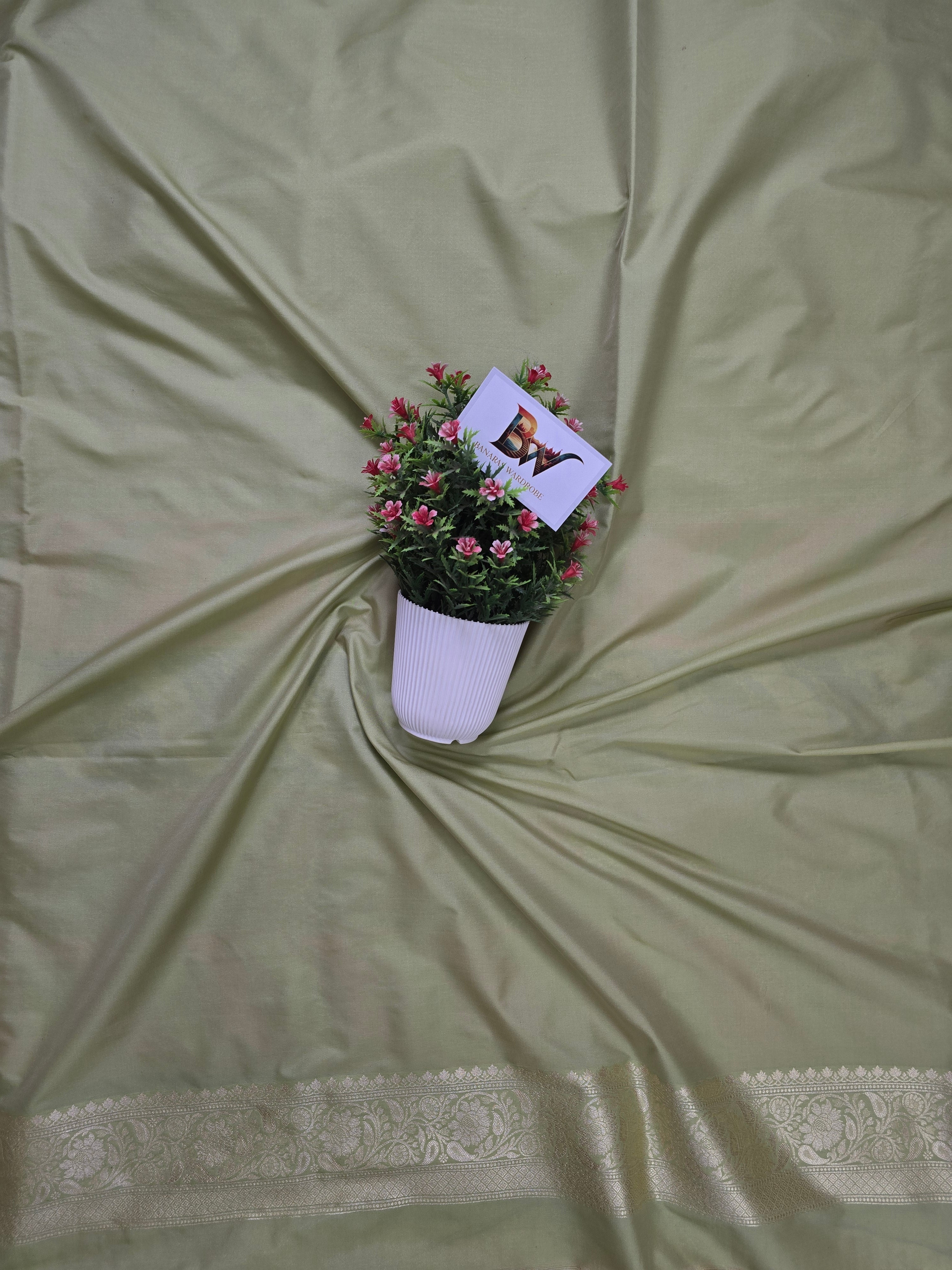 The highlight of the saree is its intricately woven zari floral border, adding a timeless Banarasi charm. Made from premium katan silk, it drapes gracefully with a soft, smooth, and lustrous finish—perfect for weddings, parties, festive occasions, and grand celebrations.