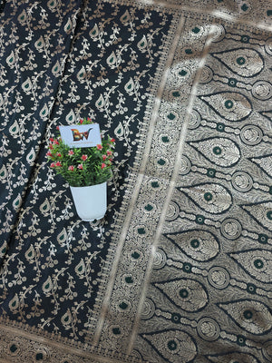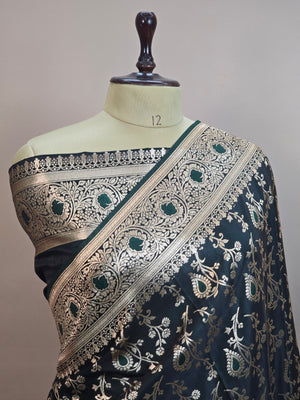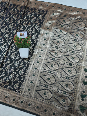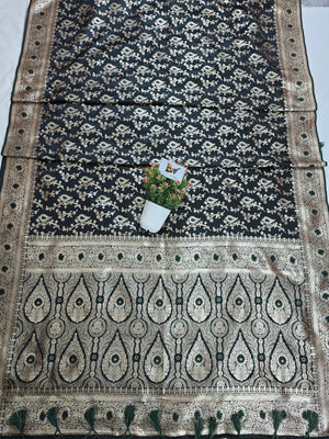 The saree is beautifully framed with a stunning meenakari floral jaal border, adding heritage charm and intricate artistry to the overall design. Soft, smooth, and designed for a graceful drape, this piece is ideal for weddings, festive celebrations, and traditional functions where you want to look regal yet refined.