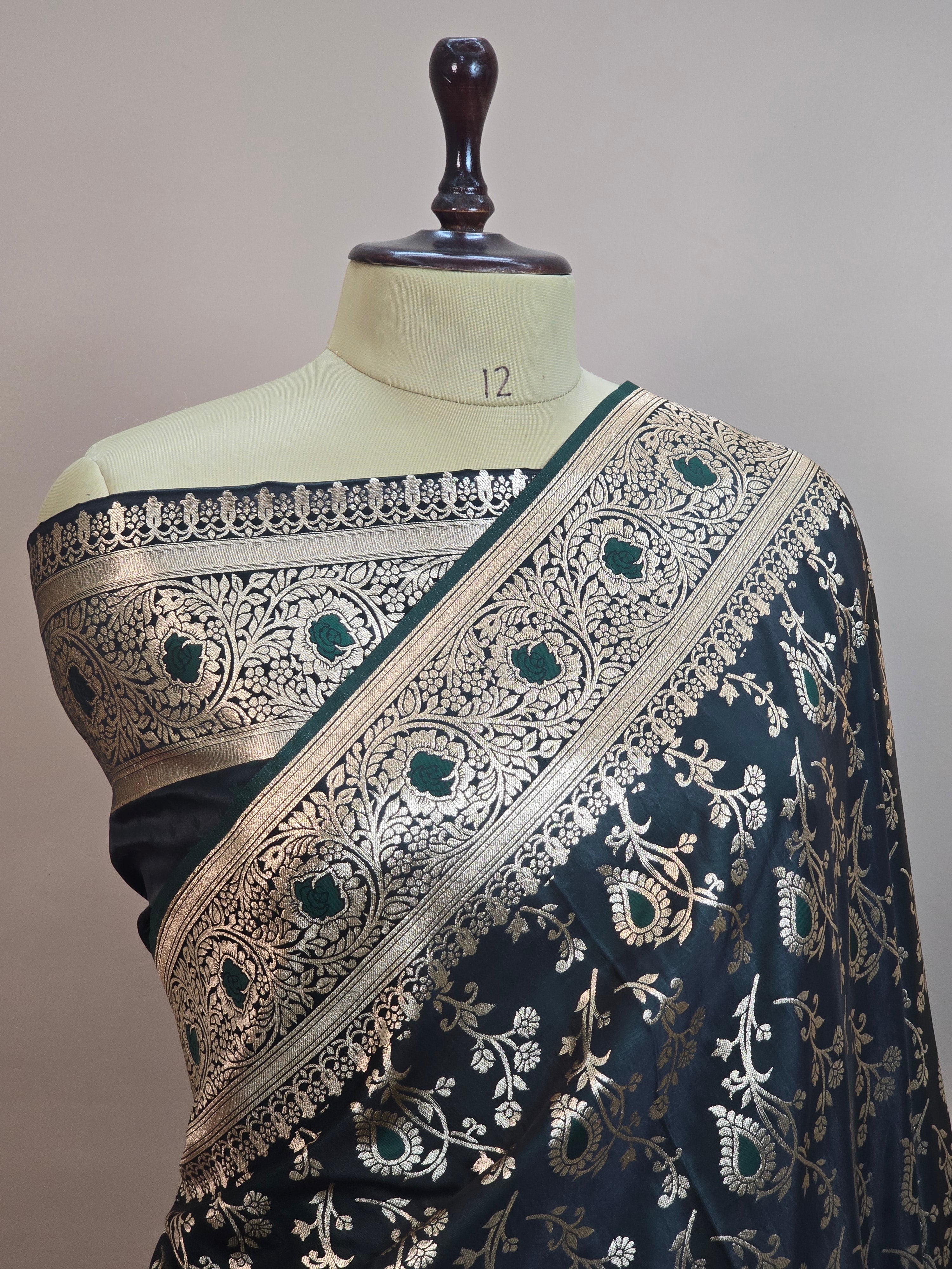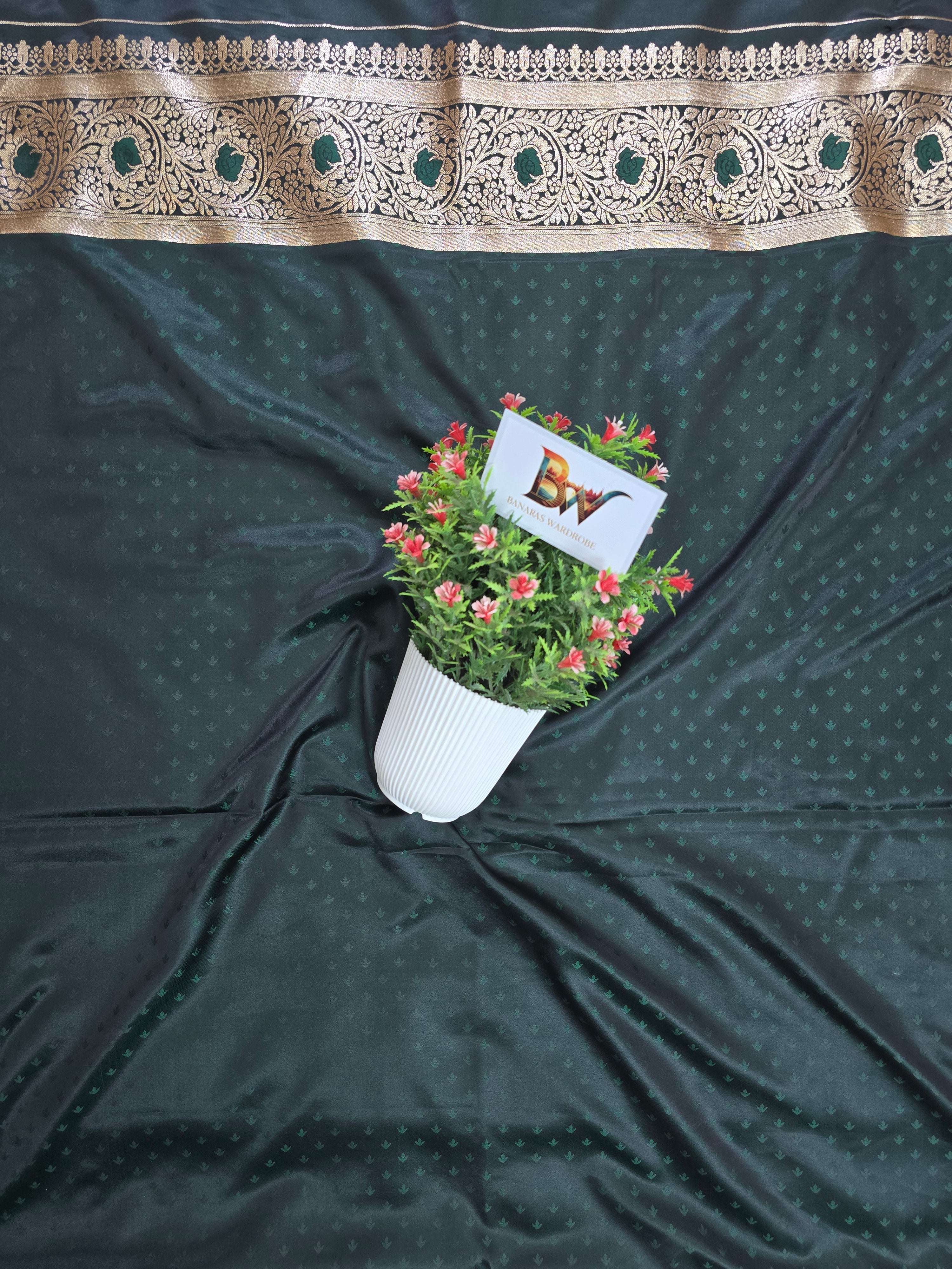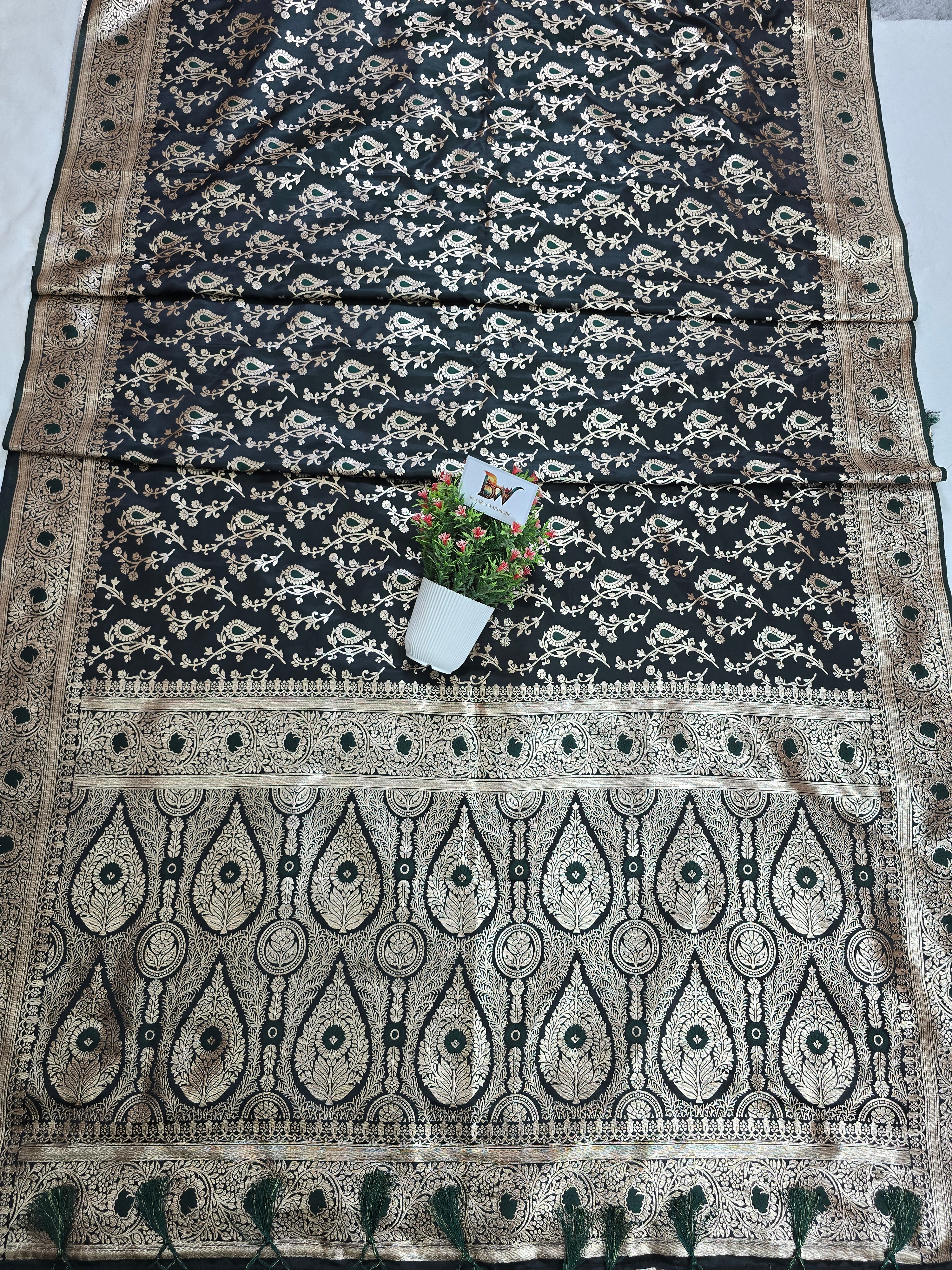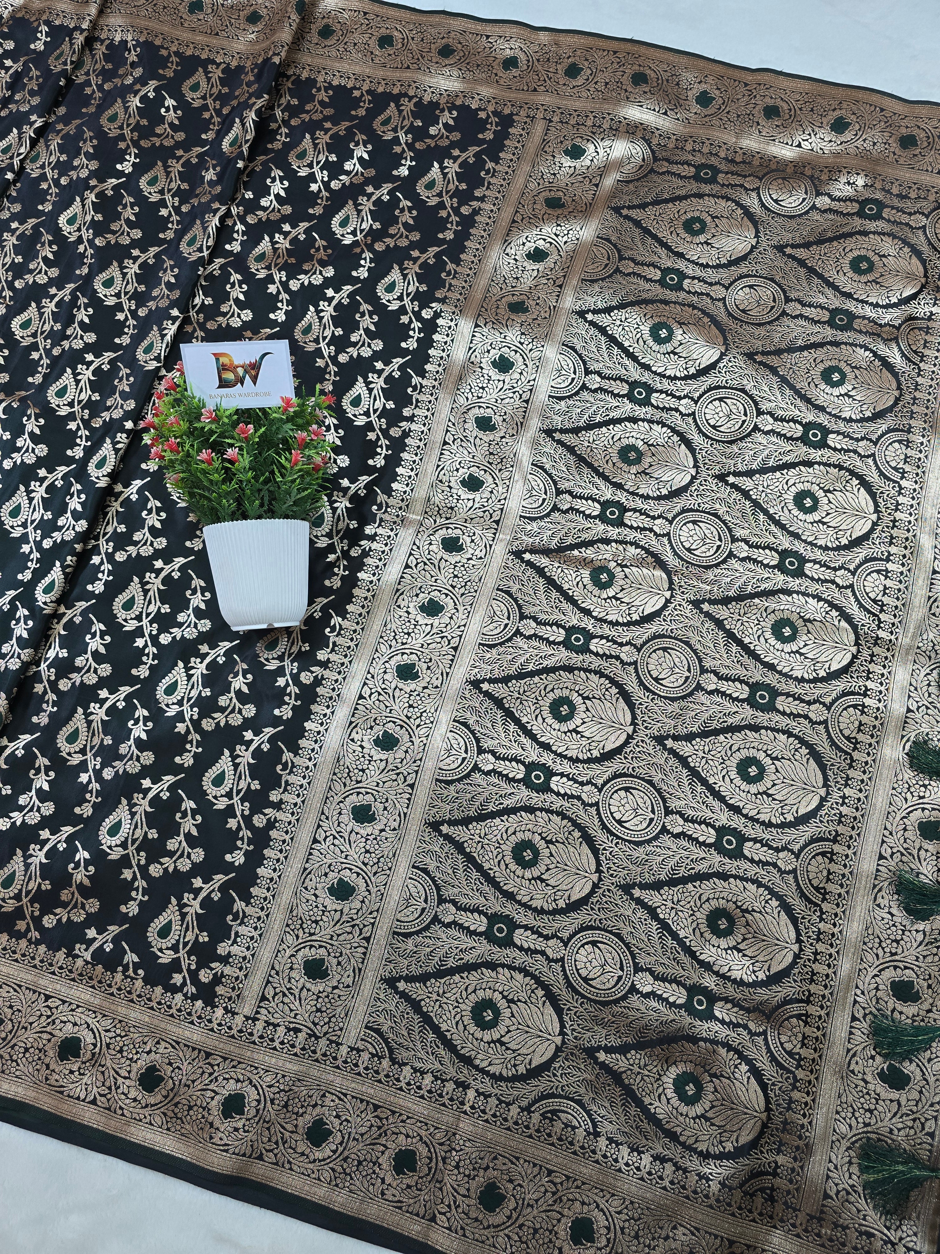 Satin Malai Katan Banarasi Saree – Meenakari Booti Jaal with Rose Gold Zari