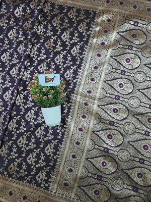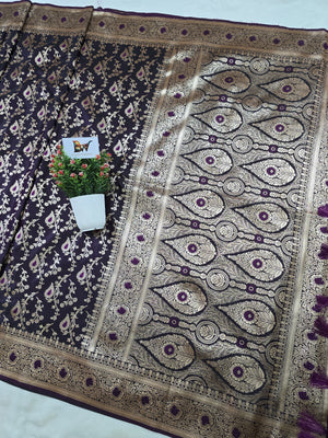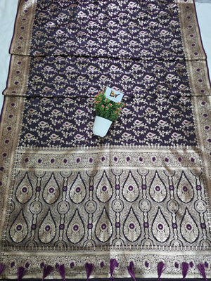 The saree is beautifully framed with a stunning meenakari floral jaal border, adding heritage charm and intricate artistry to the overall design. Soft, smooth, and designed for a graceful drape, this piece is ideal for weddings, festive celebrations, and traditional functions where you want to look regal yet refined.