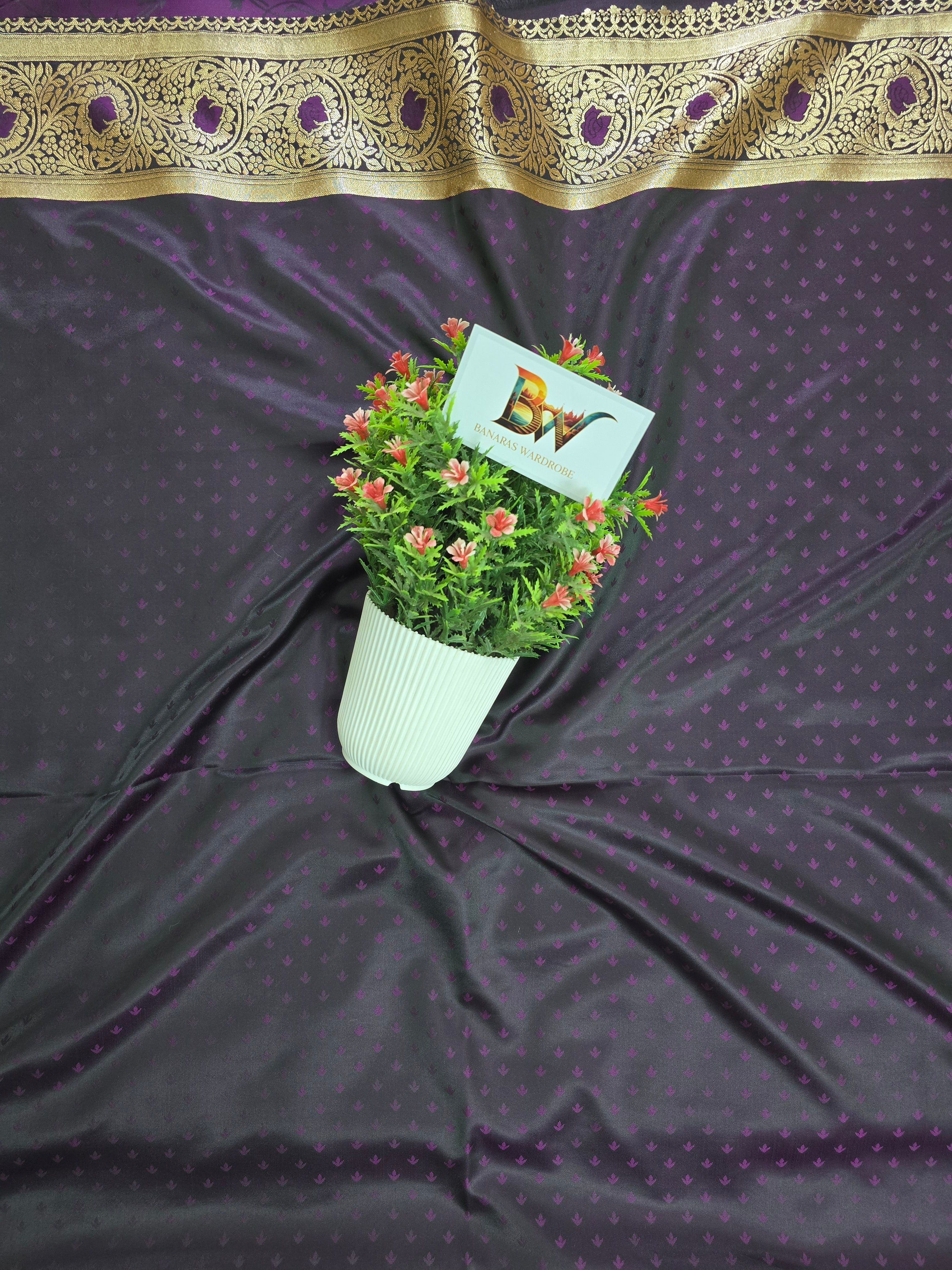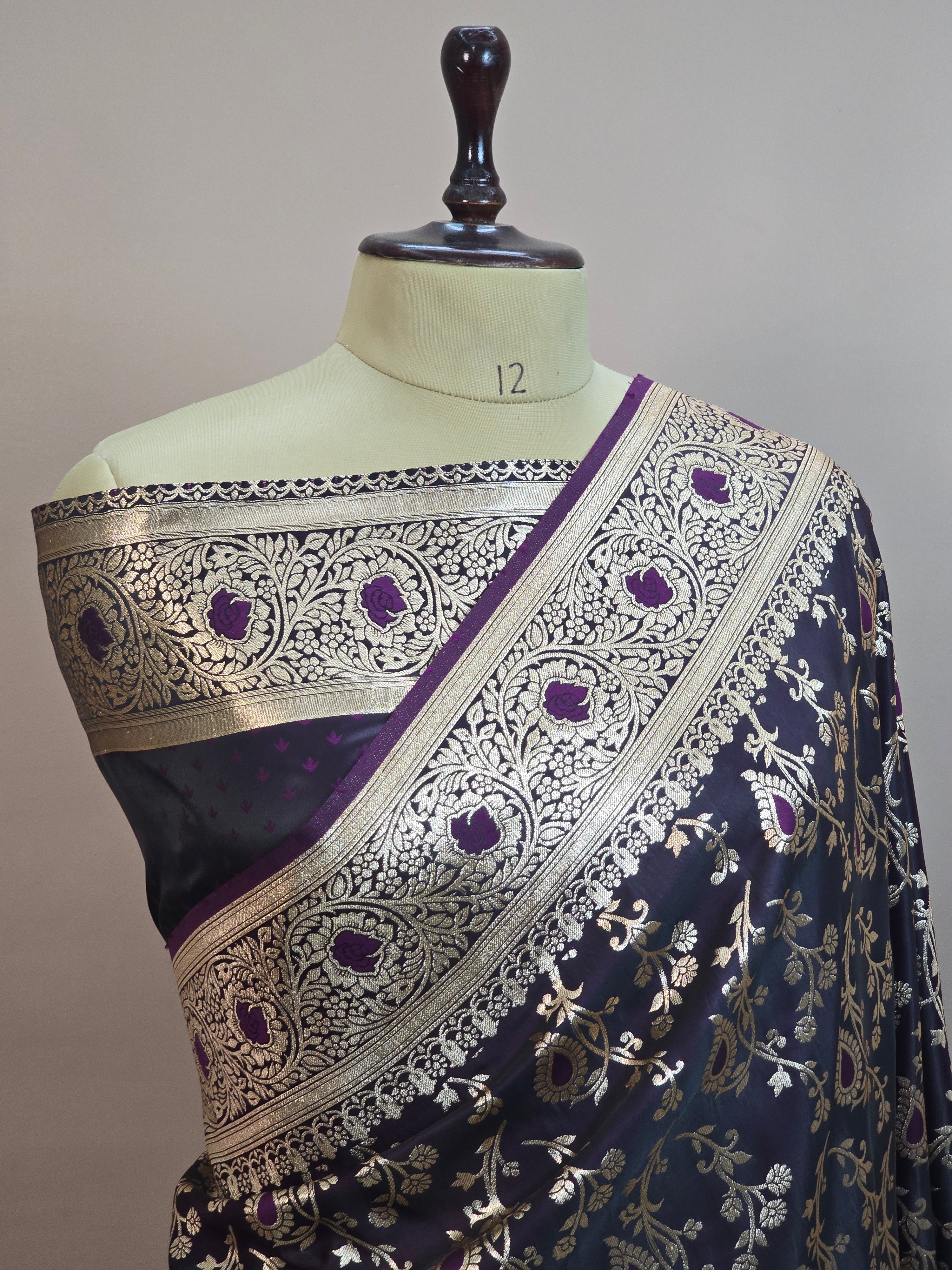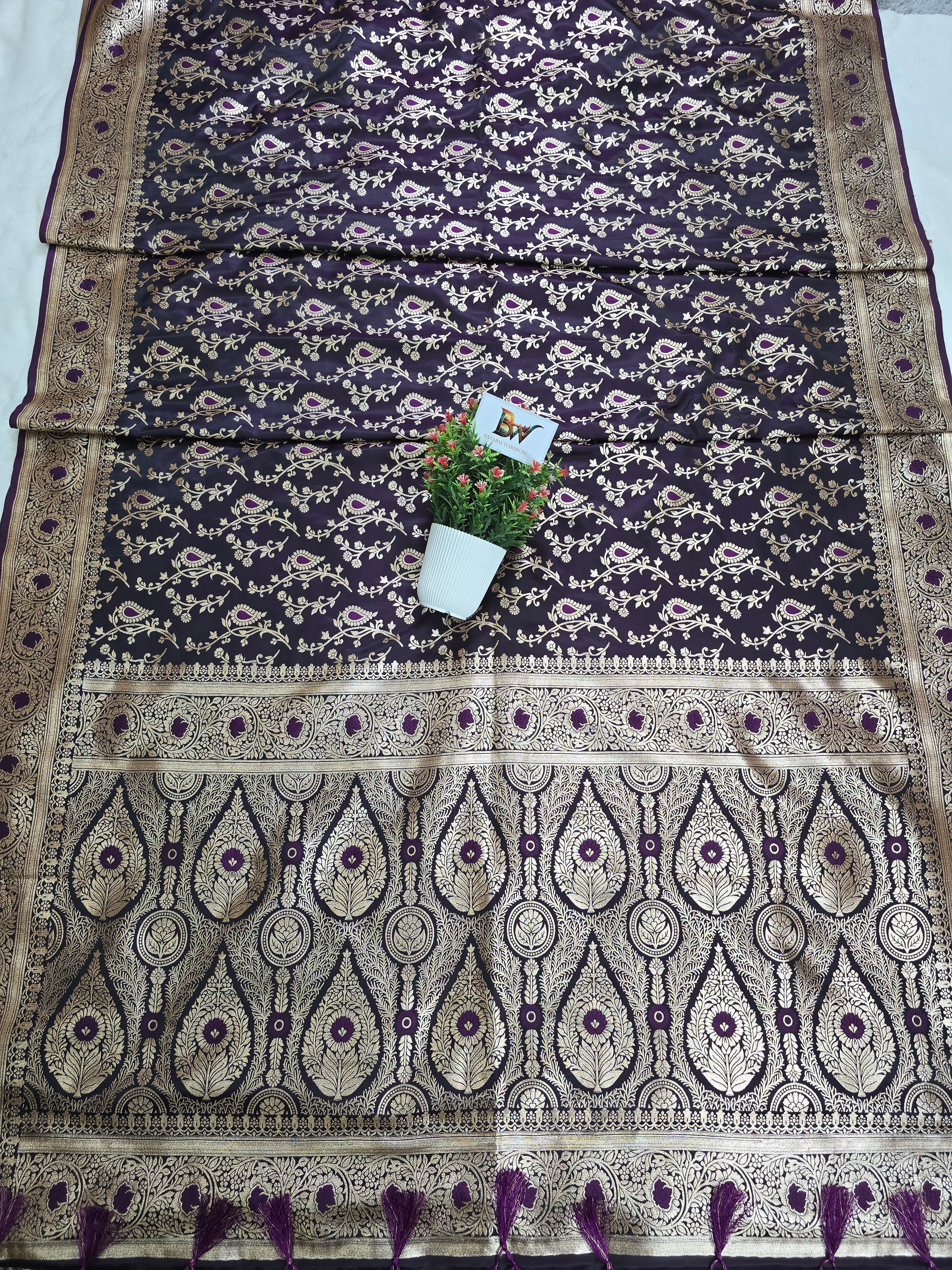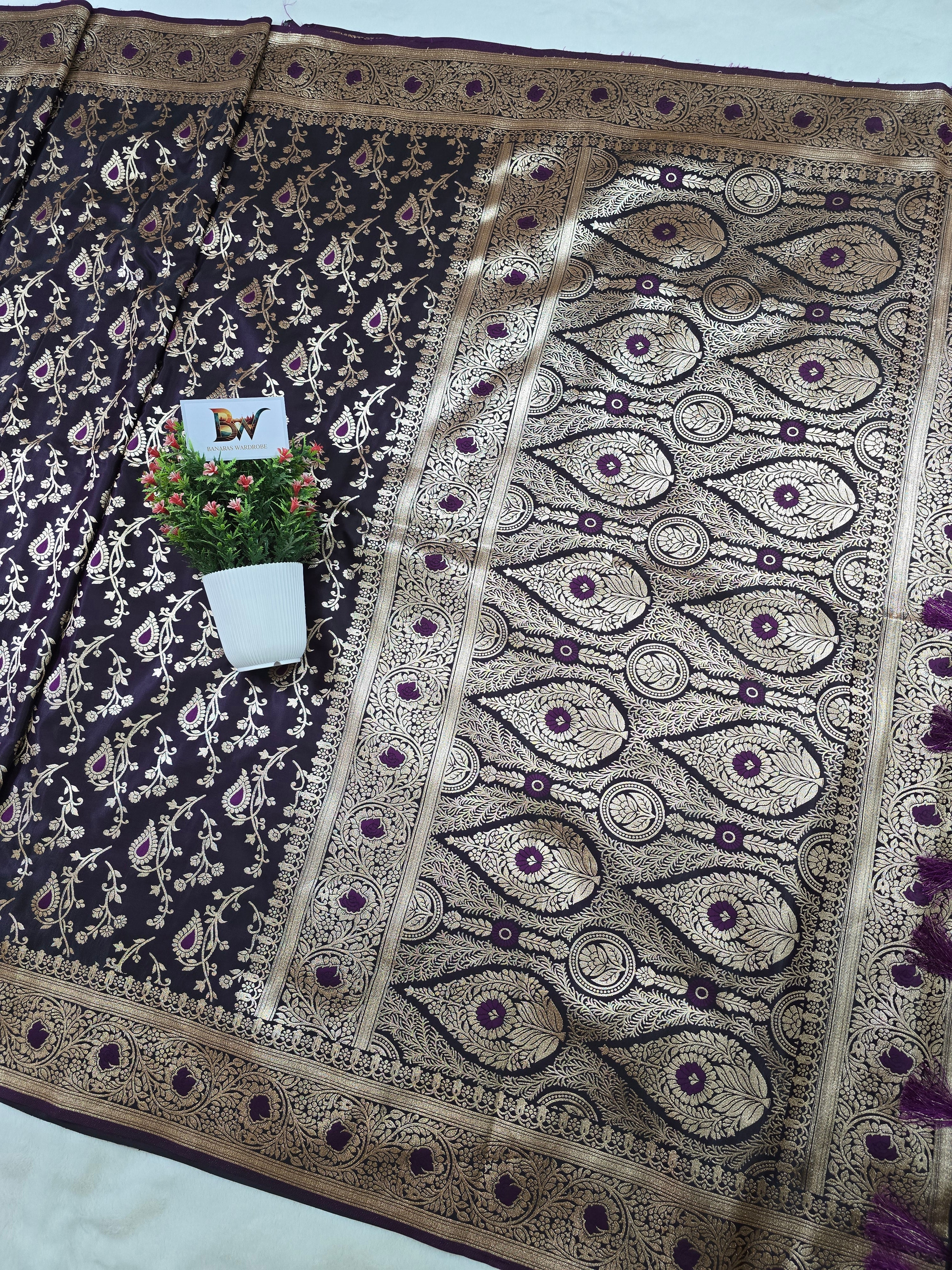 Satin Malai Katan Banarasi Saree – Meenakari Booti Jaal with Rose Gold Zari