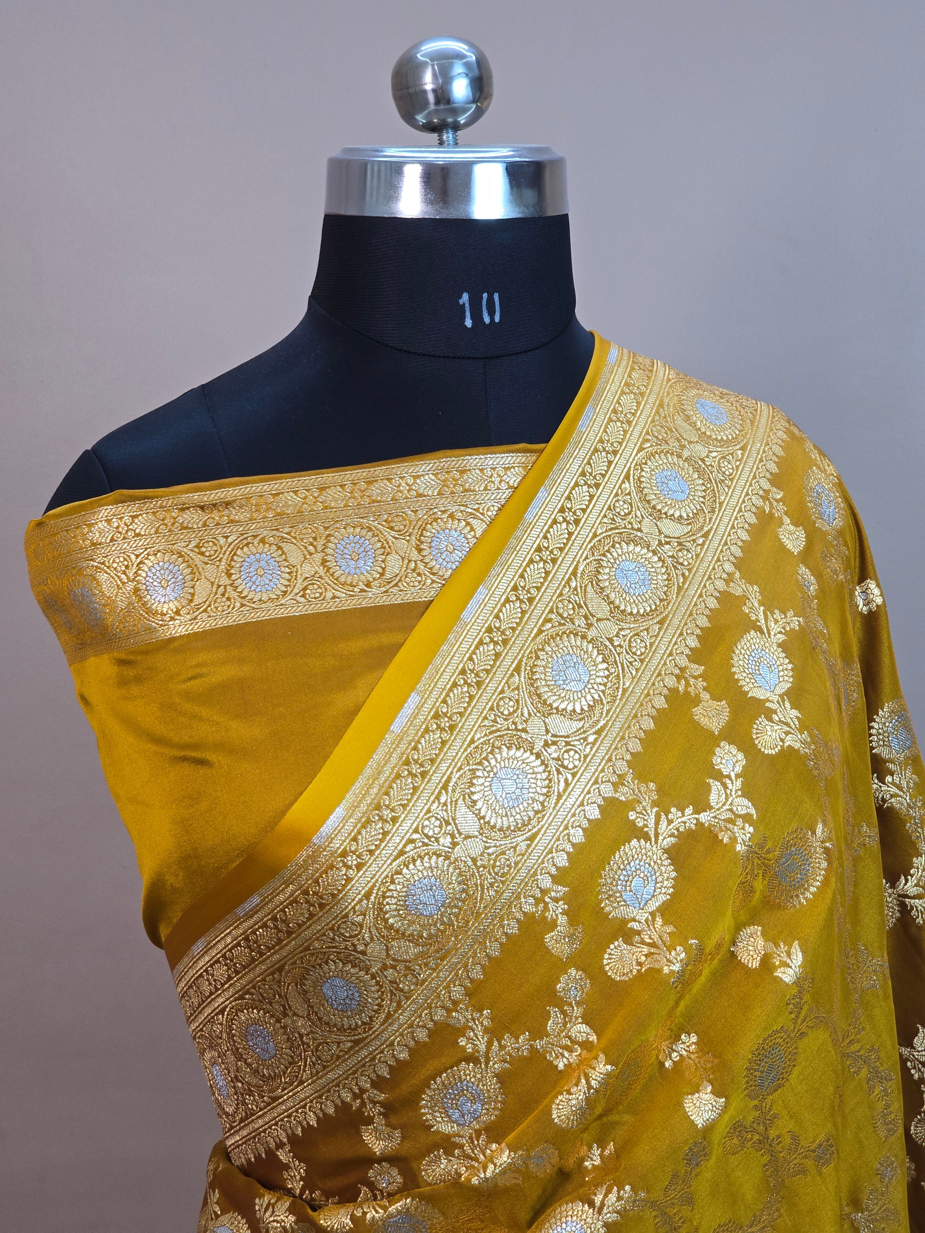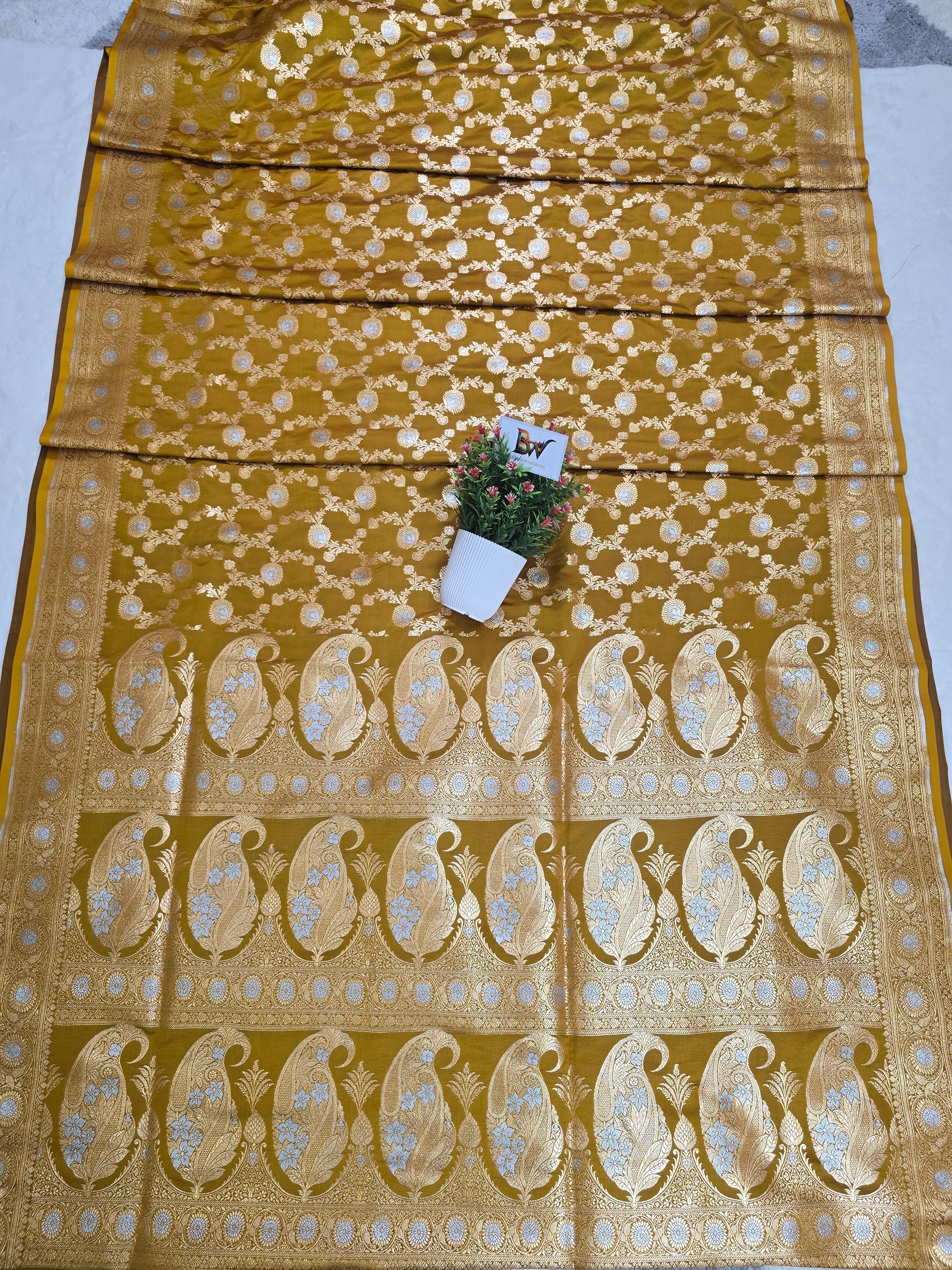 Satin Malai Katan Silk Banarasi Saree – Sona Roopa Zari Meenakari Jaal