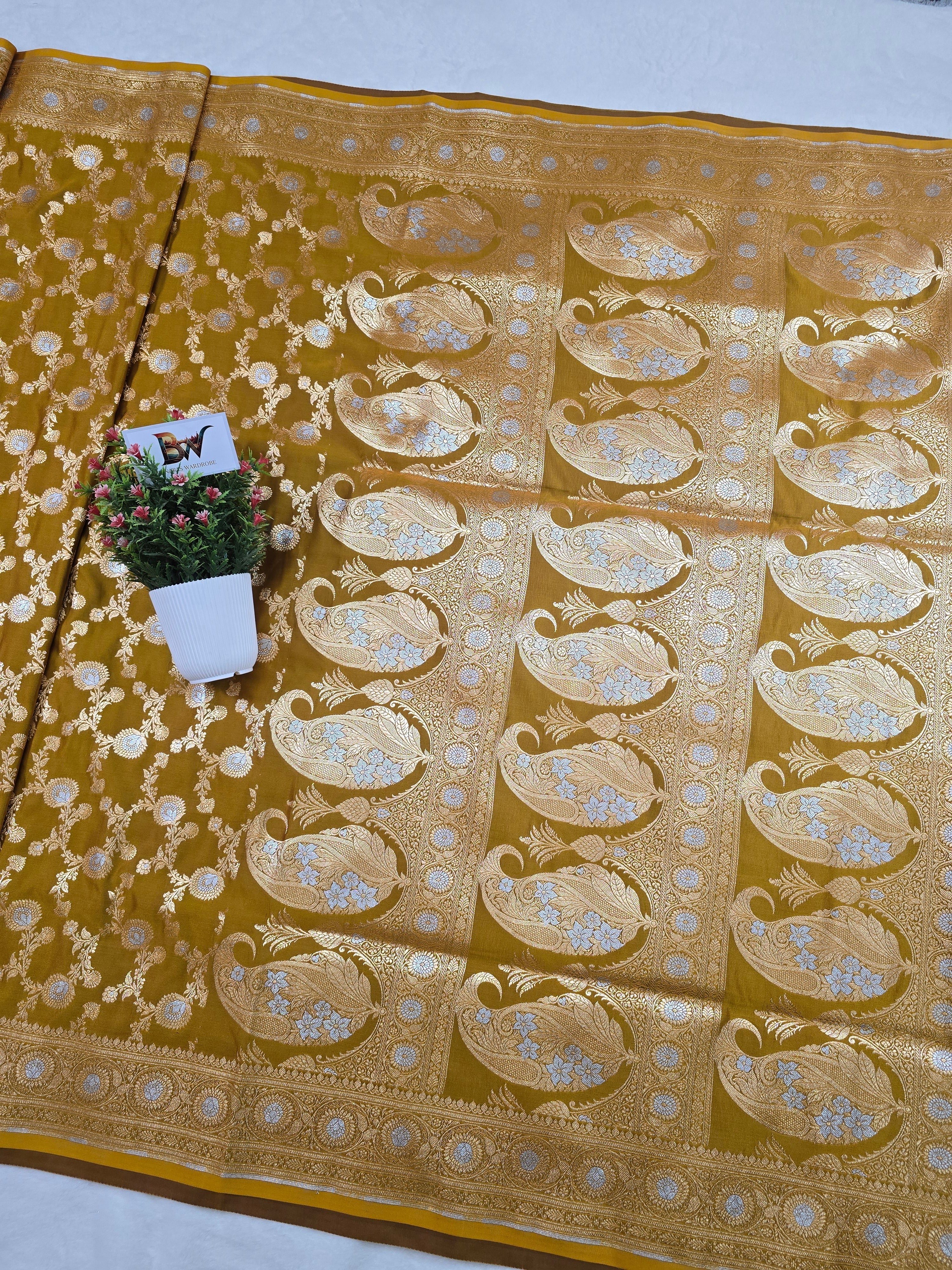 Work: Sona Roopa Zari Meenakari Jaal with Sona Roopa Floral Jaal Border